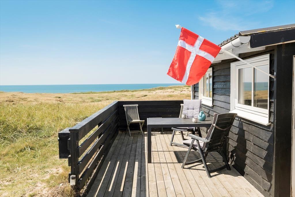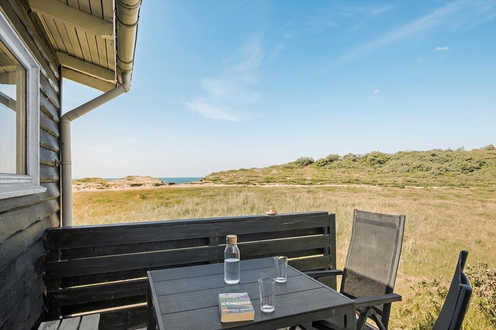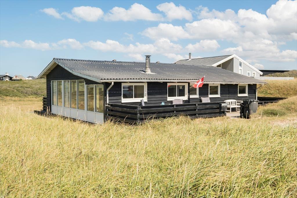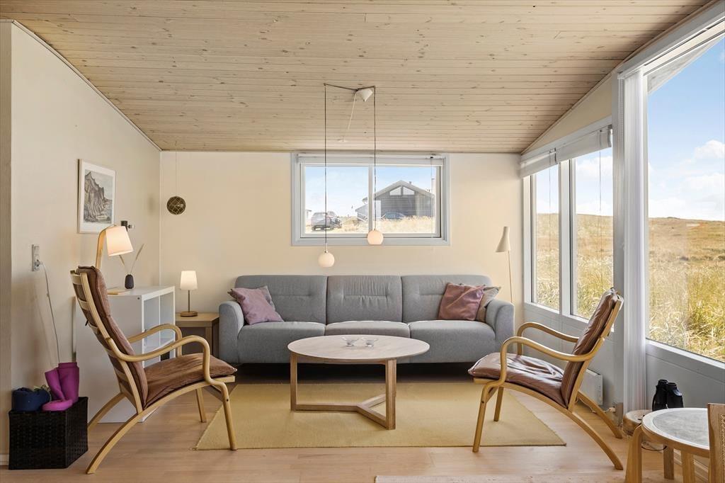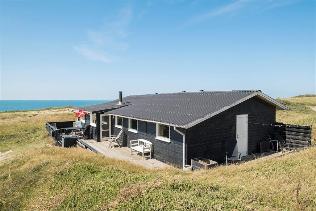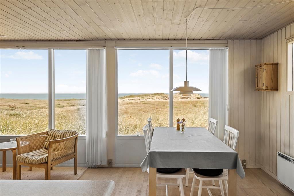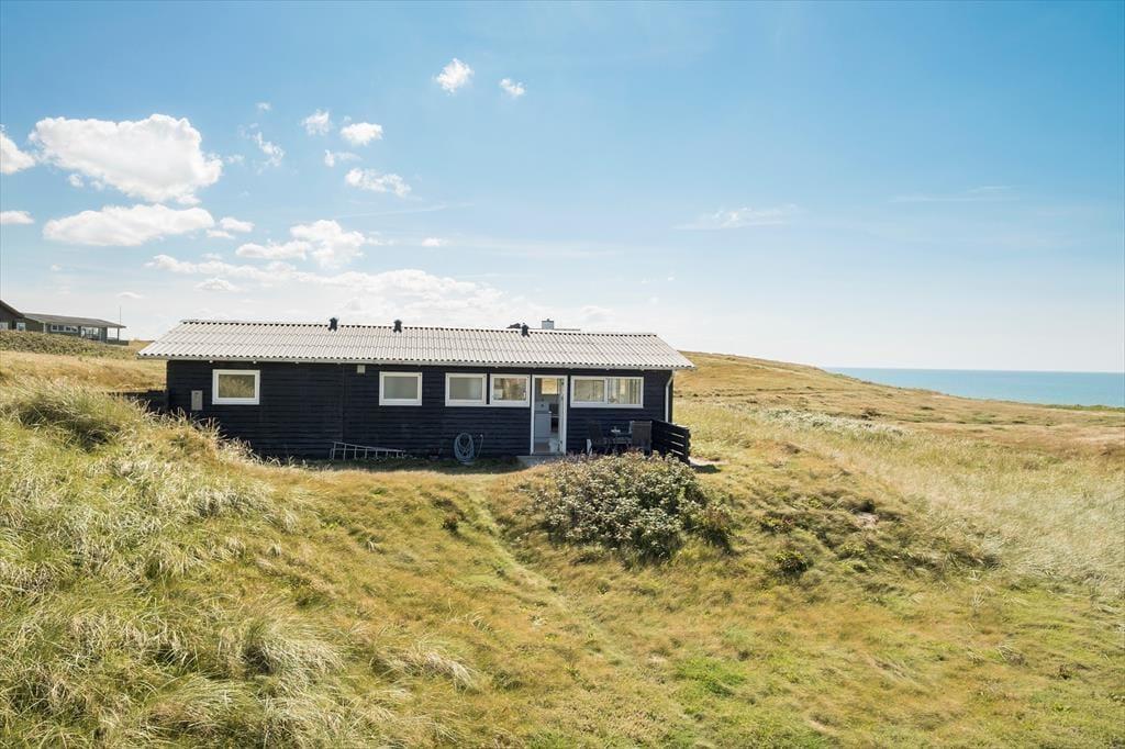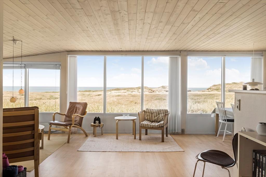 Lyst og rummeligt træhus med flot panoramaudsigt over Vesterhavet. Huset ligger på en stor naturgrund på toppen af klitten og tæt på centrum af Lønstrup.