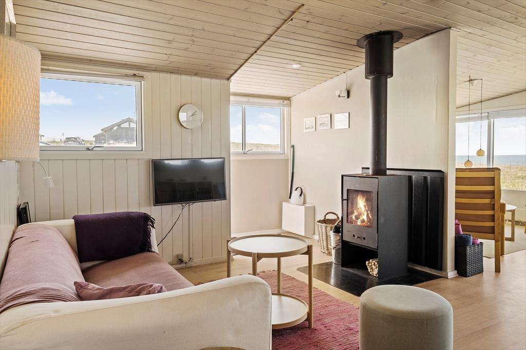 Der er åbent køkken til spisestue og opholdsstue, så man hele tiden har mulighed for at være sammen med dem, som man holder ferie med. Stuen er indrettet med en god blanding af nyere og gamle møbler, som giver en hyggelig og afslappet stemning til stuen. Her kan man sidde med en god bog, eller man kan vælge bare at nyde den fantastiske udsigt til havet. Der er tre gode værelser med ¾ senge. Rummeligt badeværelset med god bruseniche samt vaskemaskine og tørretumbler.