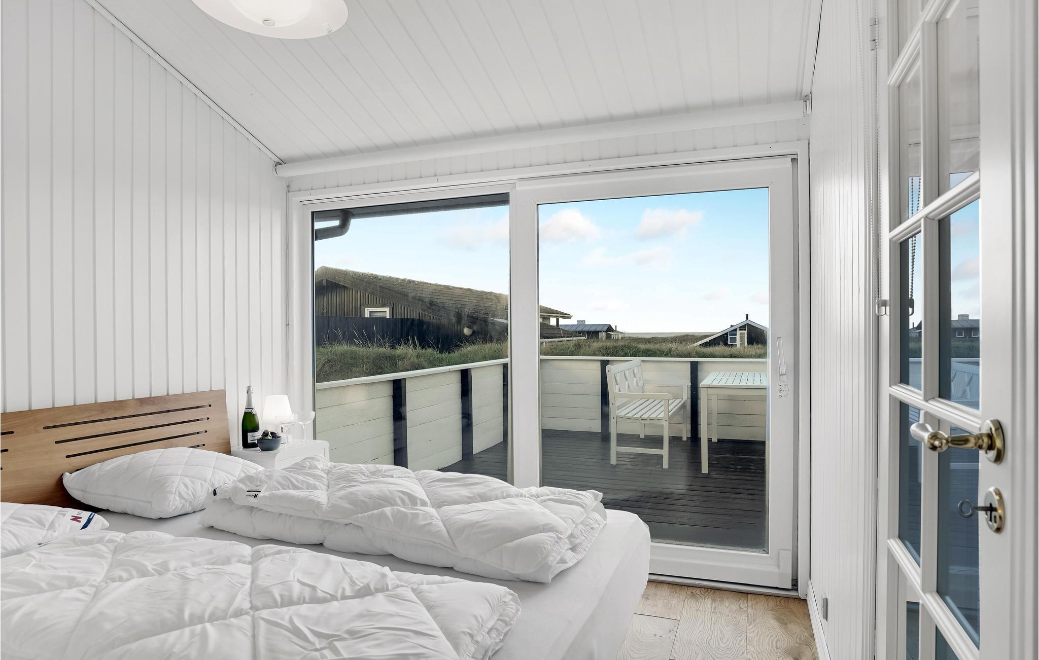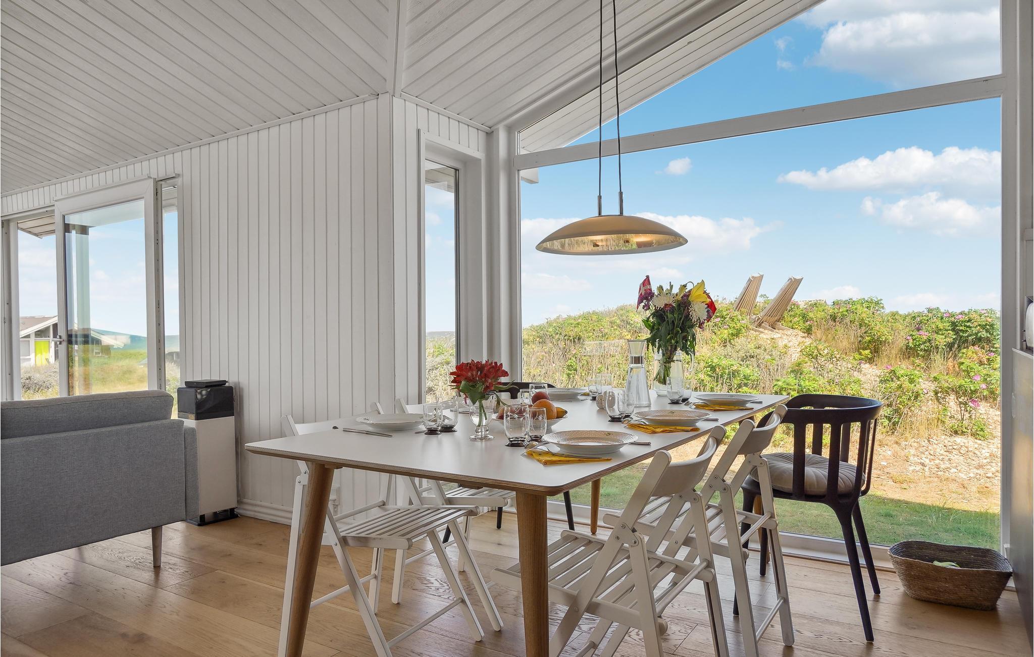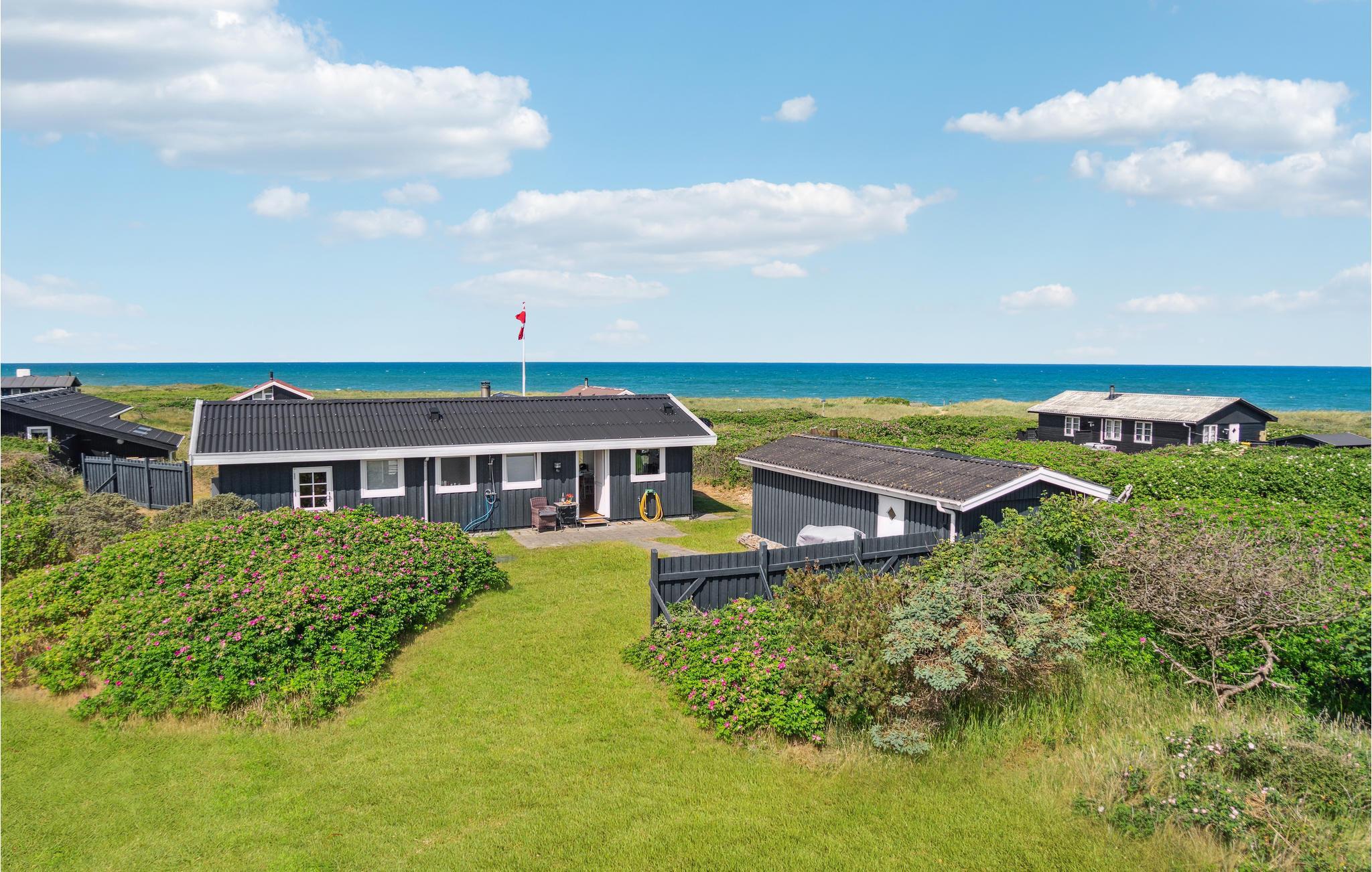 Blot 100 meter fra den nordjyske vestkyst ligger dette dejlige feriehus. Her kan I se frem til nogle skønne dage, hvor I omgiver med kvalitetsløsninger og smuk natur. Sænk skuldrene og mærk pulsen falde helt til ro i de vidunderlige rammer, som indbyder til at tage sig god tid og begynde dagene med en kop kaffe foran vinduerne mod vandet. Udenfor venter terrassen, hvor I kan sætte jer til rette og suge omgivelserne til jer. I sommersæsonen kan I fyre op i grillen og nyde dagene, helt til solen går ned.