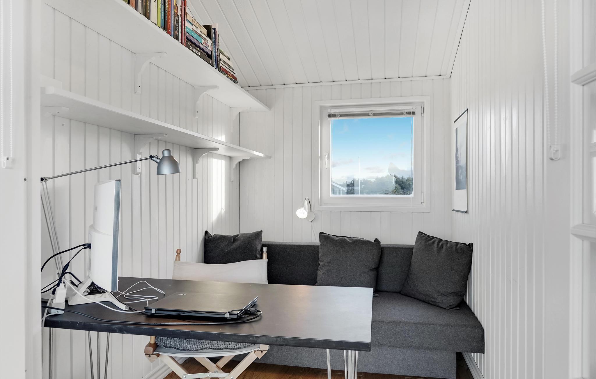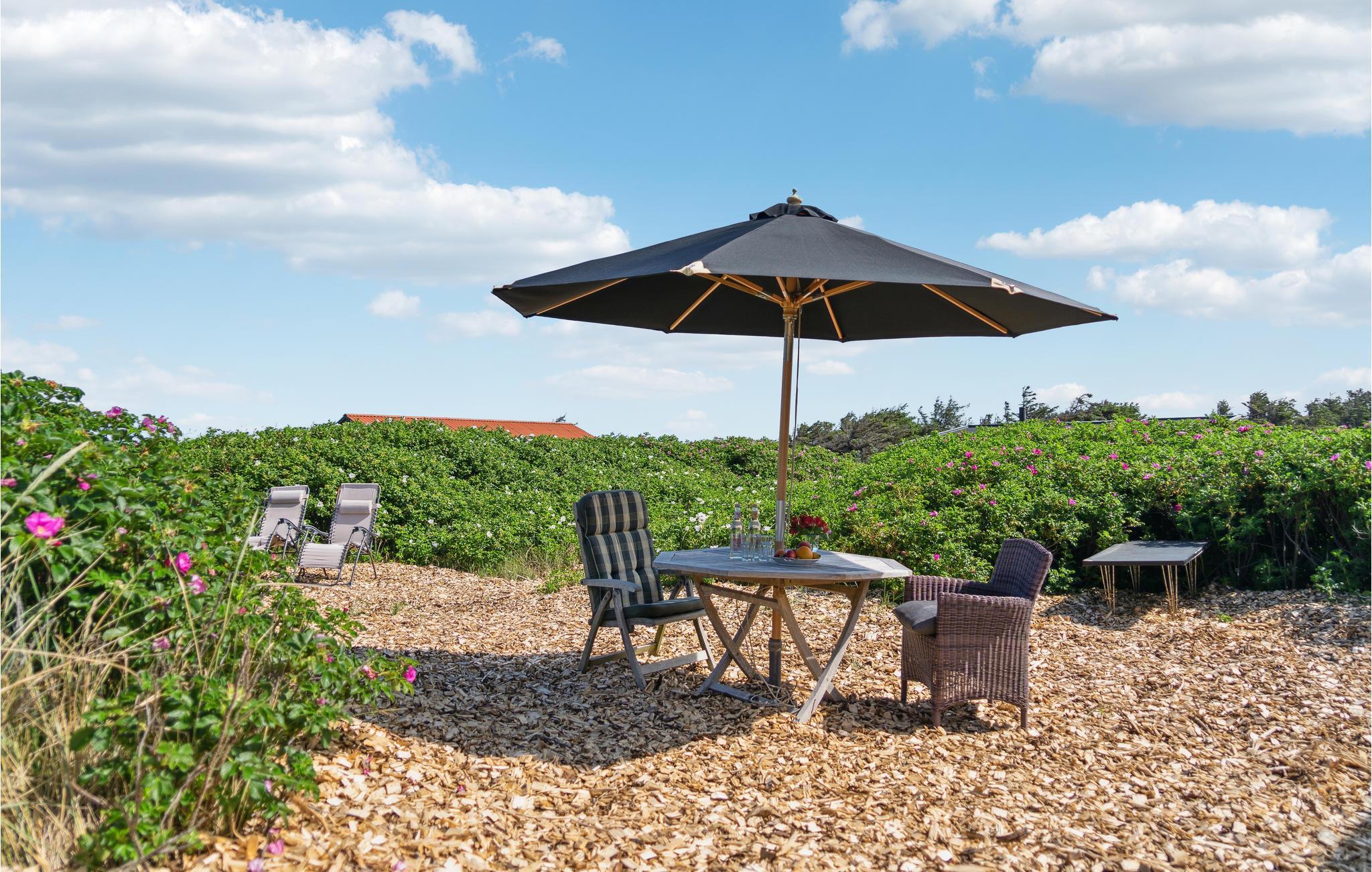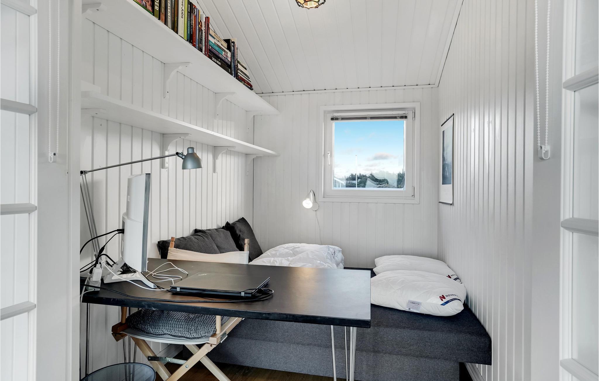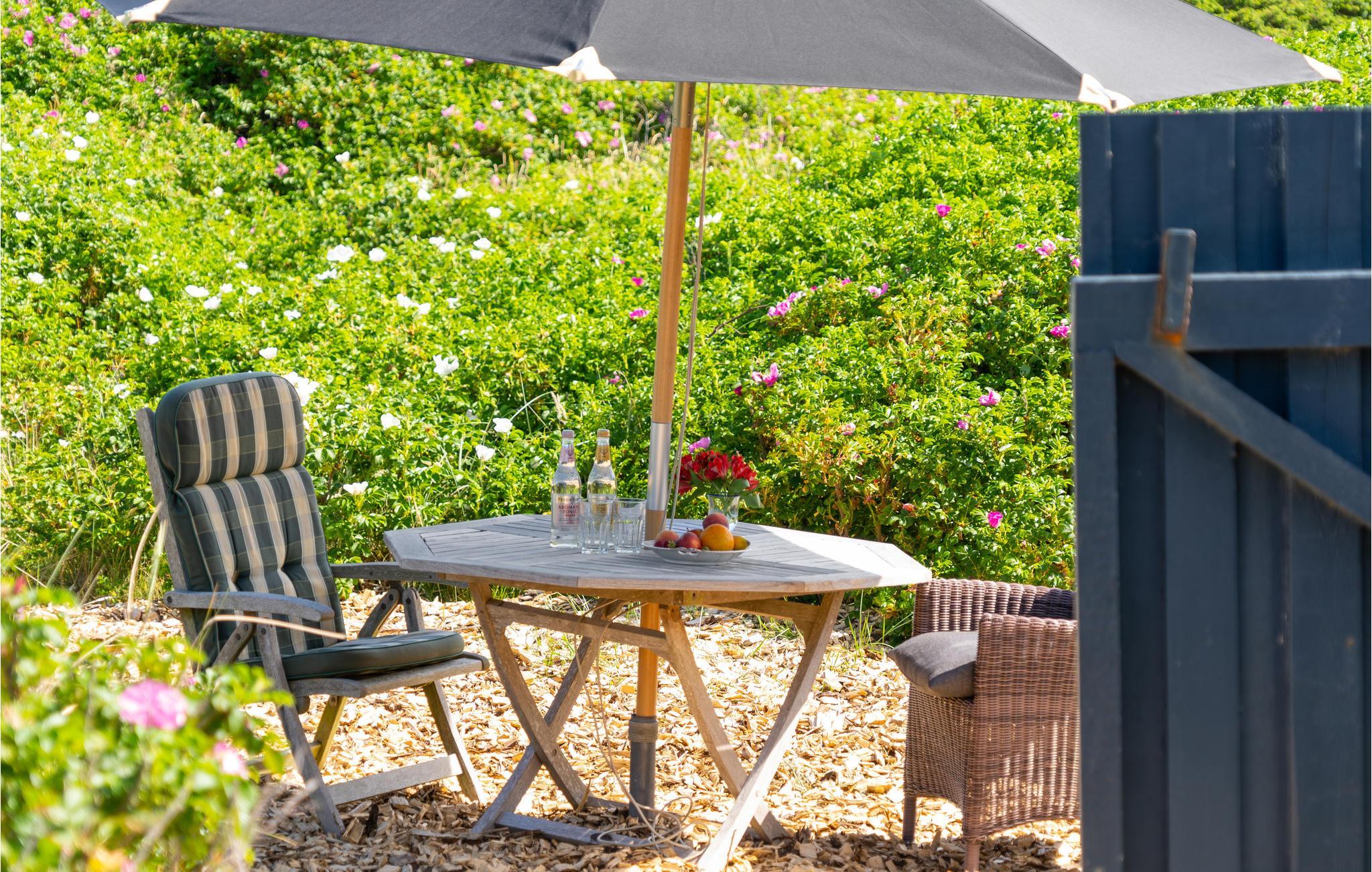 Blot 100 meter fra den nordjyske vestkyst ligger dette dejlige feriehus. Her kan I se frem til nogle skønne dage, hvor I omgiver med kvalitetsløsninger og smuk natur. Sænk skuldrene og mærk pulsen falde helt til ro i de vidunderlige rammer, som indbyder til at tage sig god tid og begynde dagene med en kop kaffe foran vinduerne mod vandet. Udenfor venter terrassen, hvor I kan sætte jer til rette og suge omgivelserne til jer. I sommersæsonen kan I fyre op i grillen og nyde dagene, helt til solen går ned.