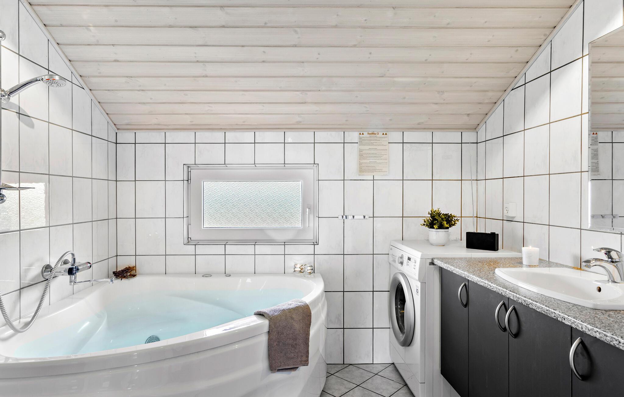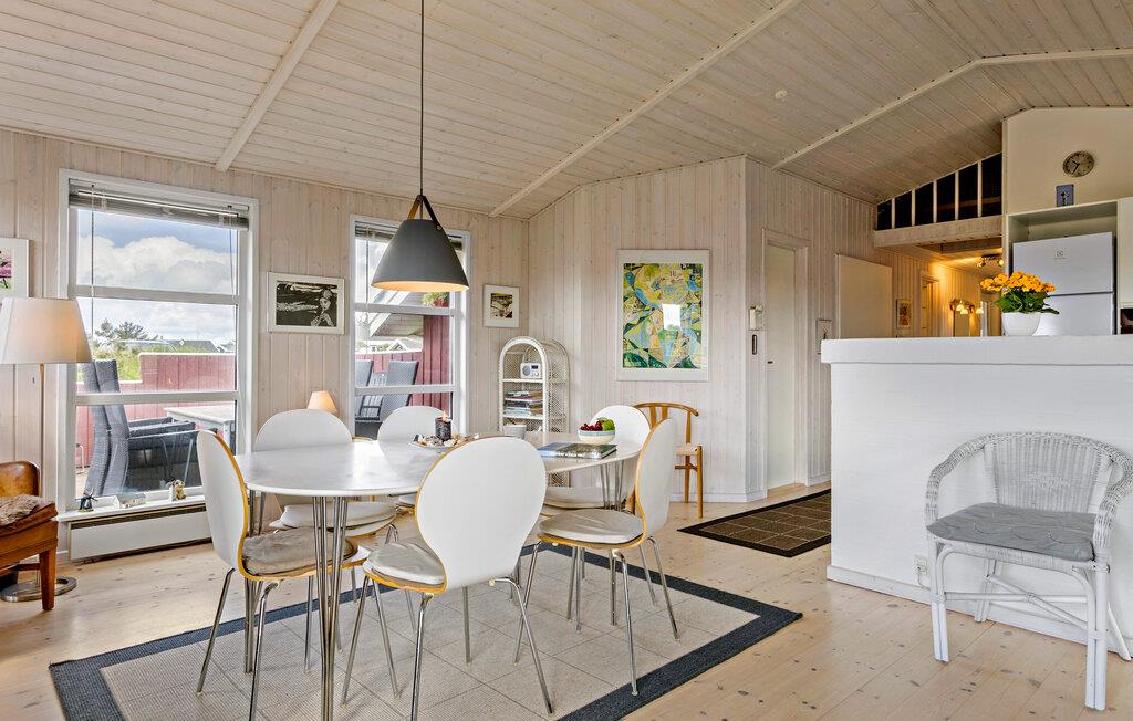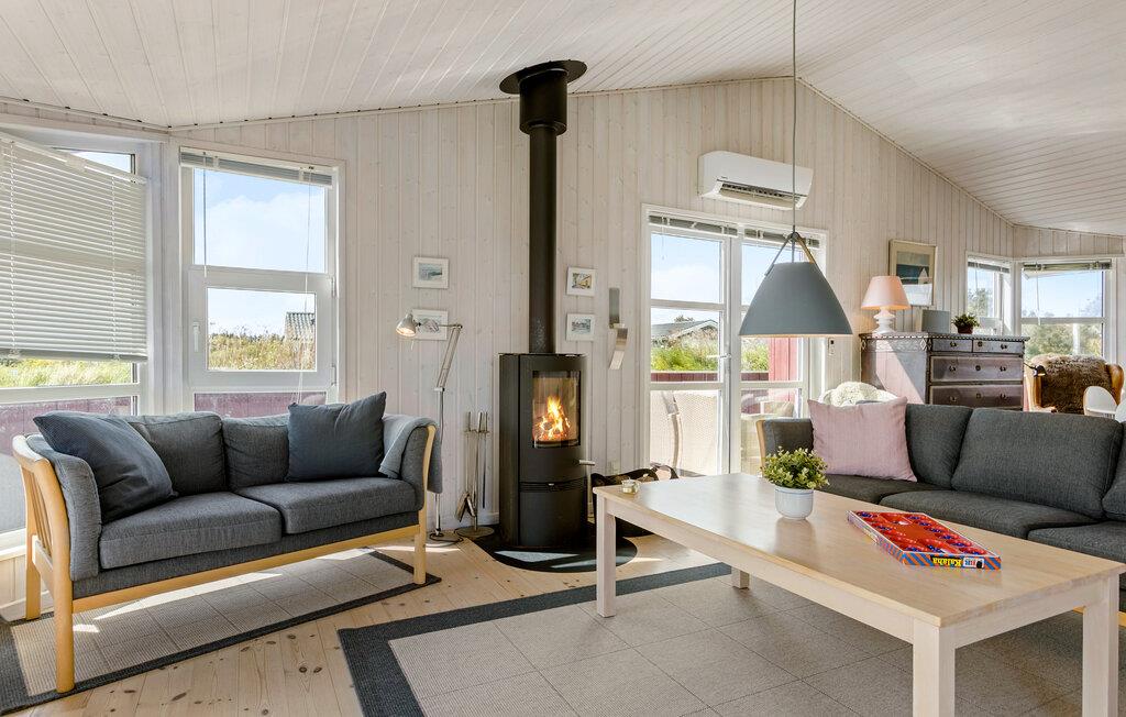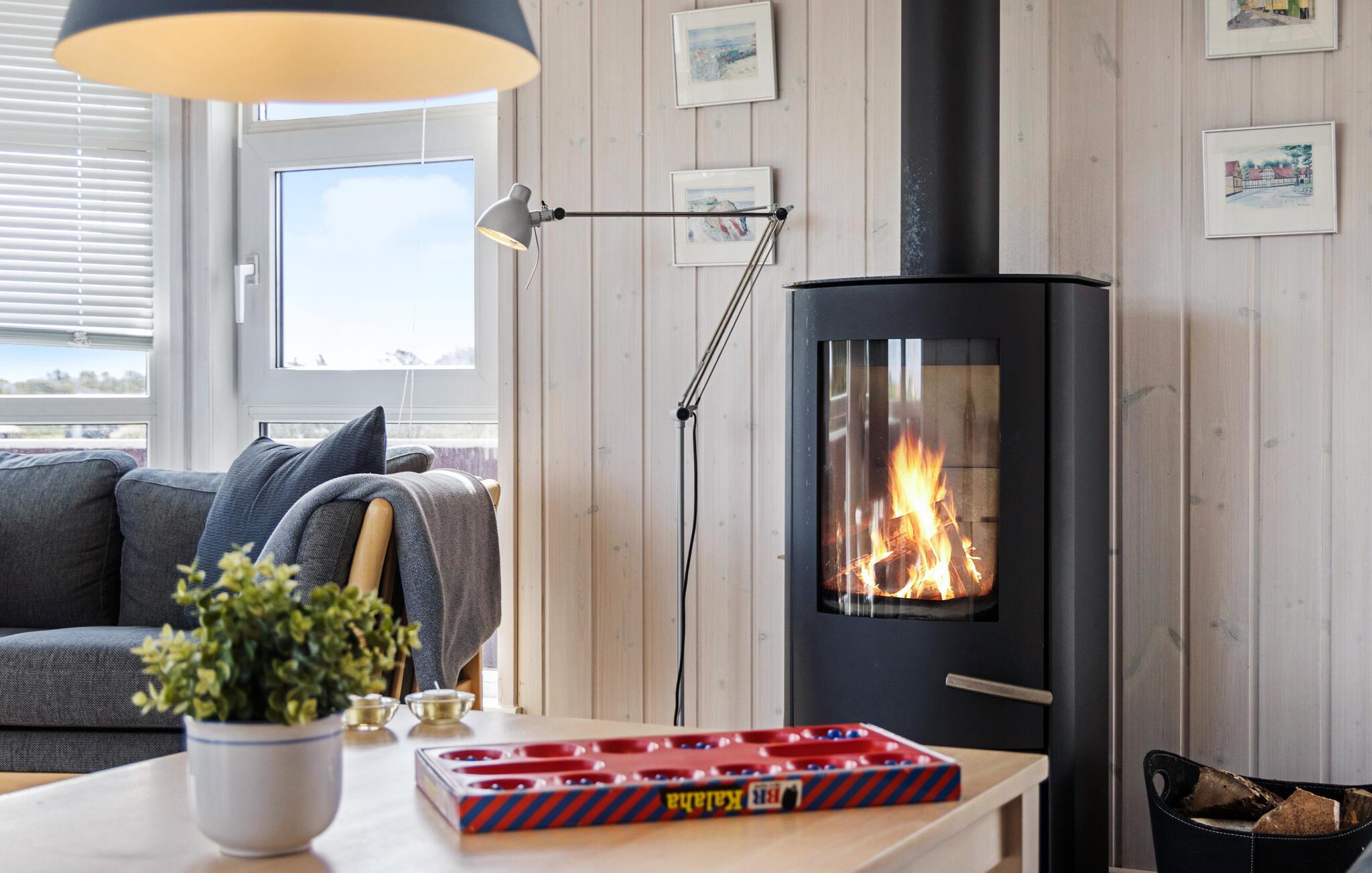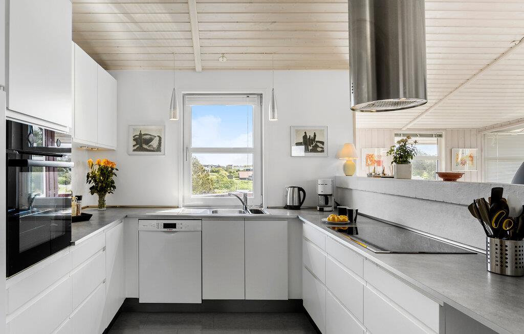 Nyd en pause i en af de skønneste byer på den jyske vestkyst. Dette indbydende feriehus i hjertet af Lønstrup giver jer den ideelle kombination af fred, ro, smuk udsigt og høj komfort. Lad jer fortrylle af charmen ved vestkysten og nyd nogle afslappende dage med en førsteklasses beliggenhed. Find jer godt til rette i den lyse opholdsstue med brændeovn og store vinduer. To sofaer lægger op til at slappe af, mens I nyder udsigten over de grønne omgivelser. Brug den åbne spiseplads til fælles måltider og samtaler. Det elegante køkken giver jer mulighed for at lave mad uden det store besvær. Glæd jer til en afslappende stund i spabadet - lyder det ikke skønt efter en lang gåtur på stranden?