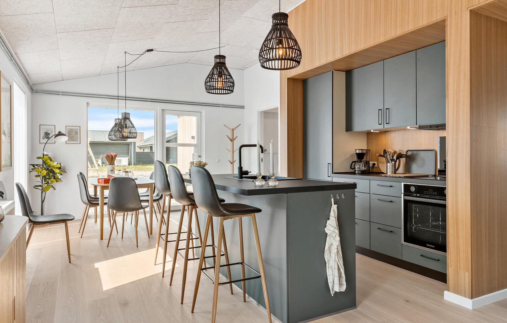 Hvis I er på udkig efter en flot og veludstyret bolig til årets familieferie, er dette lækre træhus ved Lønstrup det helt rette valg for jer. Indretningen fremtræder stilsikkert og elegant med fine udsmykningsdetaljer og store vinduespartier, der giver det indre et lyst og luftigt udtryk. Nyd godt af de gode møbler og faciliteter og tilbered familiens livretter det moderne køkken, inden I runder en hyggelig feriedag af med brætspil eller en god film i stuen.