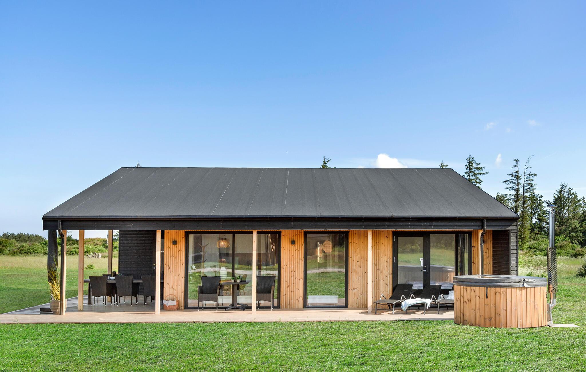 Moderne feriehus nær Lønstrup med sauna, vildmarksbad og stor have i naturskønne omgivelser.