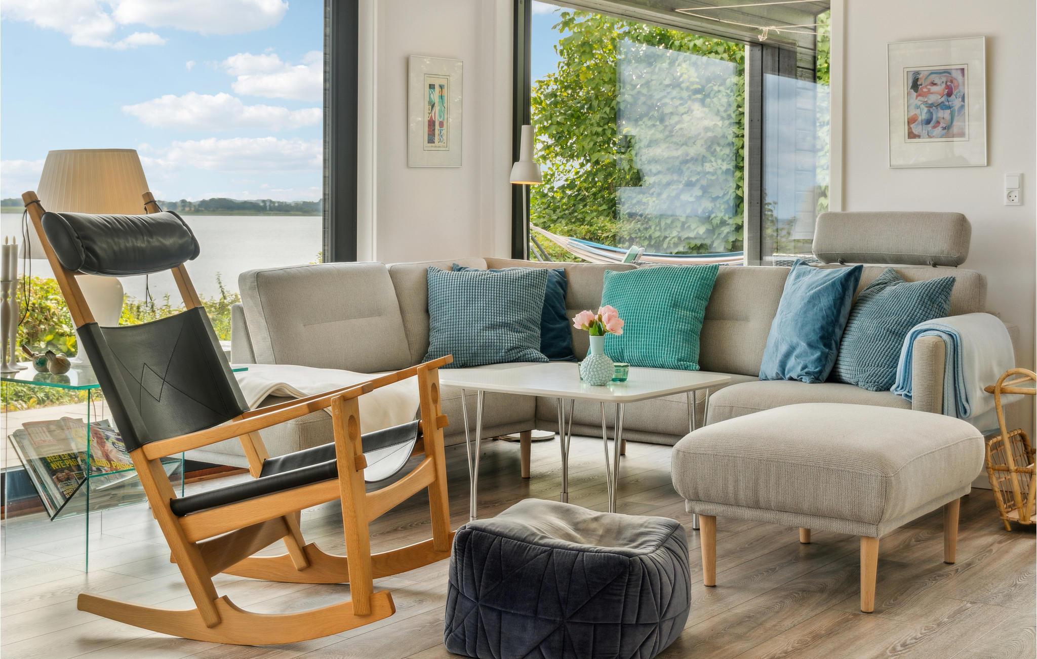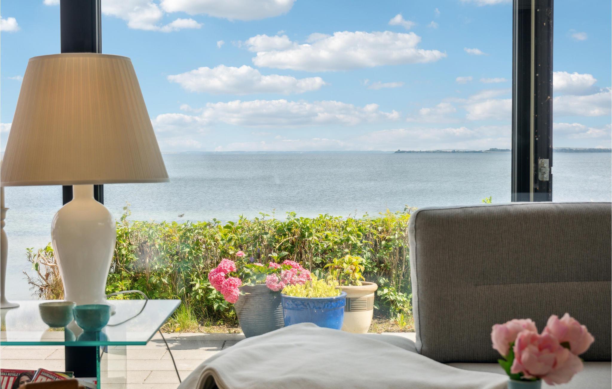 Luksuriøst feriehus med panoramaudsigt og egen trappe til sandstrand ved Løserup Strand.