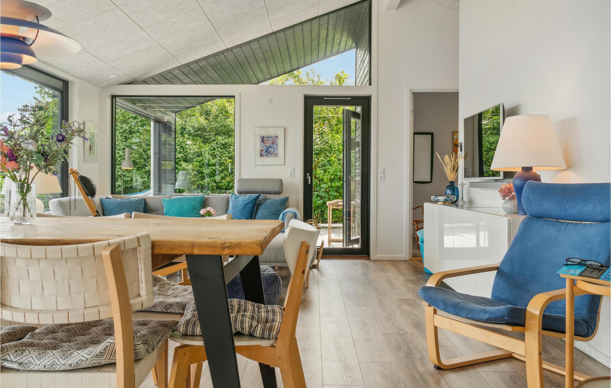Denne luksusoase, kun få skridt fra Løserup Strand på Tuse Næs, er en oplevelse i sig selv. Her får I en smagfuld, meget gennemtænkt indretning med høje lofter, mange flotte detaljer og panoramavinduer, der inviterer havet og solnedgangen ind på smuk vis. Uanset om I tilbereder jeres yndlingsretter i det moderne køkken, læser i den blå lænestol eller tilbringer hyggelige aftener omkring spisebordet, kan I nyde den unikke udsigt. Lad jer vugge i hængekøjen på panoramaterrassen eller læn jer tilbage i loungestolene med kølige drikke på baghavens terrasse, Duris’ plads. I den store have kan børnene boltre sig på trampolinen eller udkæmpe årets spændende fodboldkamp. En trappe fører ned til sandstranden, som indbyder til en hyggelig gåtur eller en forfriskende dukkert i vandet. Mon ikke jeres børn vil løbe i pendulfart mellem huset og stranden? I kan også prøve fiskelykken eller undersøge omgivelserne på to hjul.