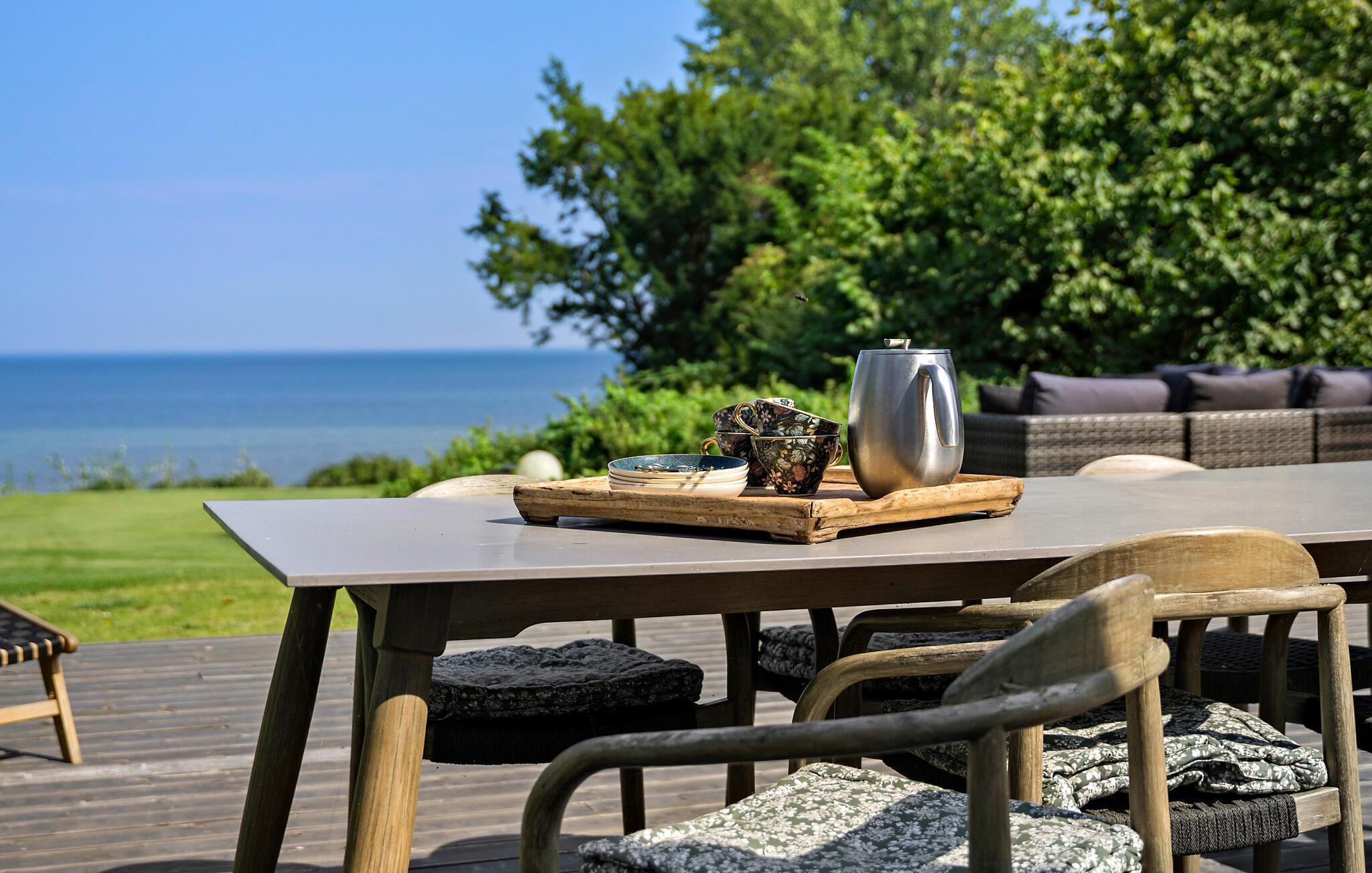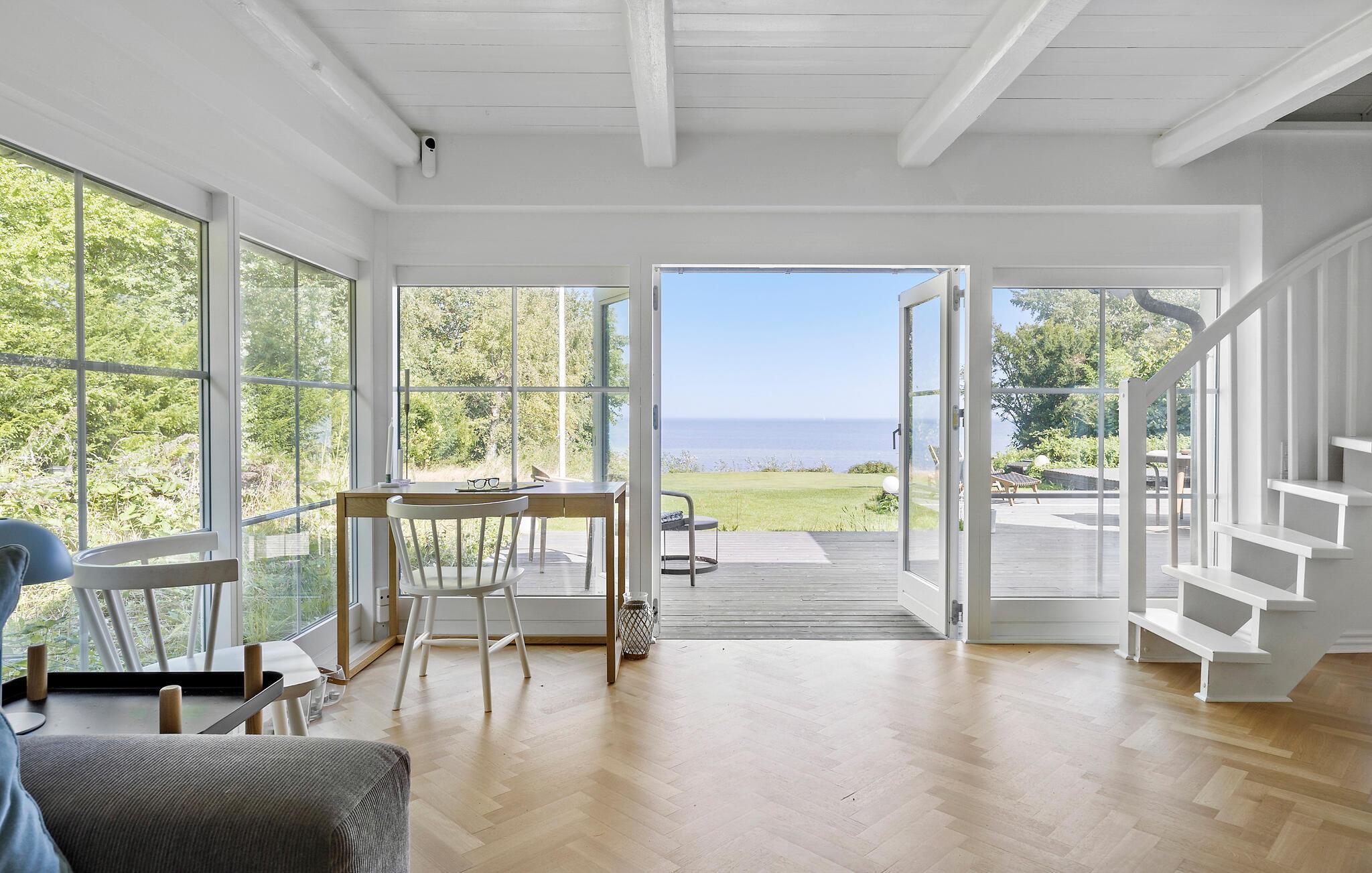 Feriehus ved Løserup Strand med panoramaudsigt over Isefjorden og stor terrasse.
