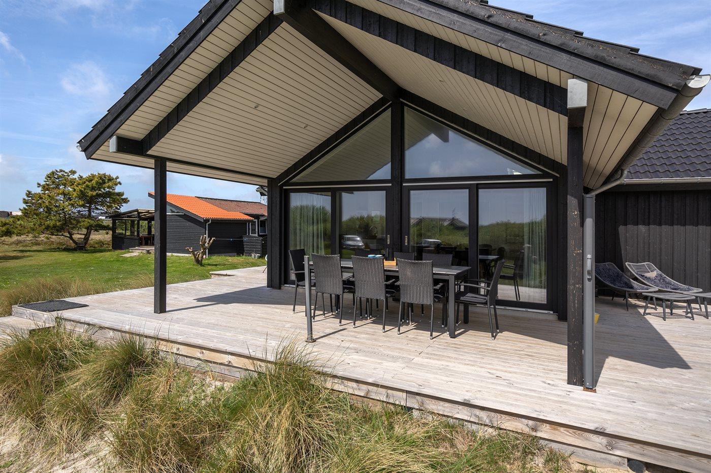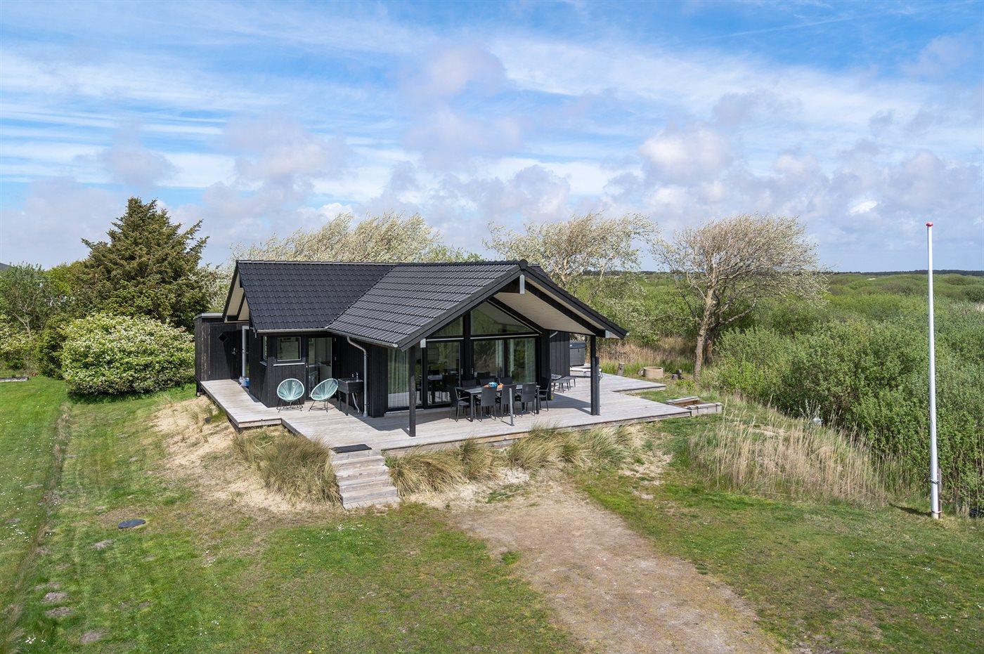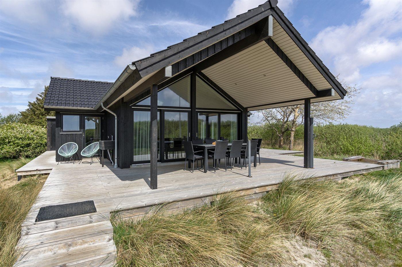 Flot sommerhus ved Lakolk strand med spa, sauna og stor terrasse på en rolig naturgrund.
