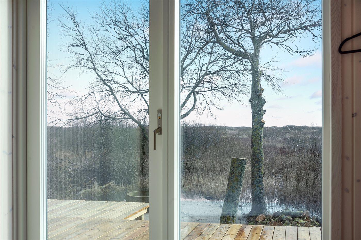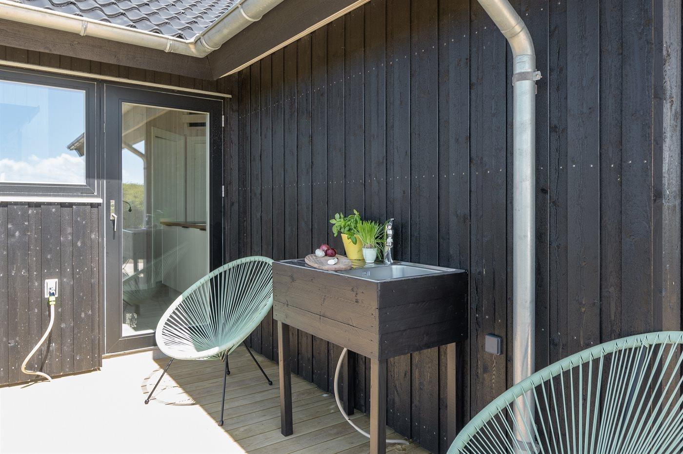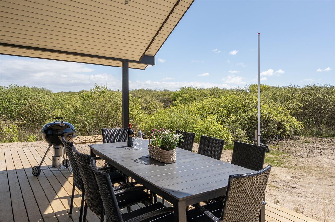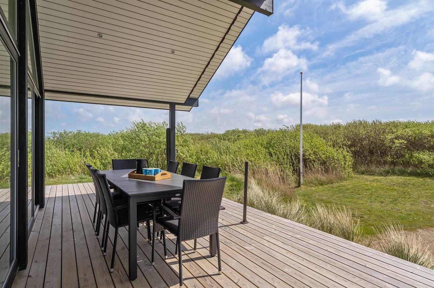 Flot sommerhus ved Lakolk strand med spa, sauna og stor terrasse på en rolig naturgrund.