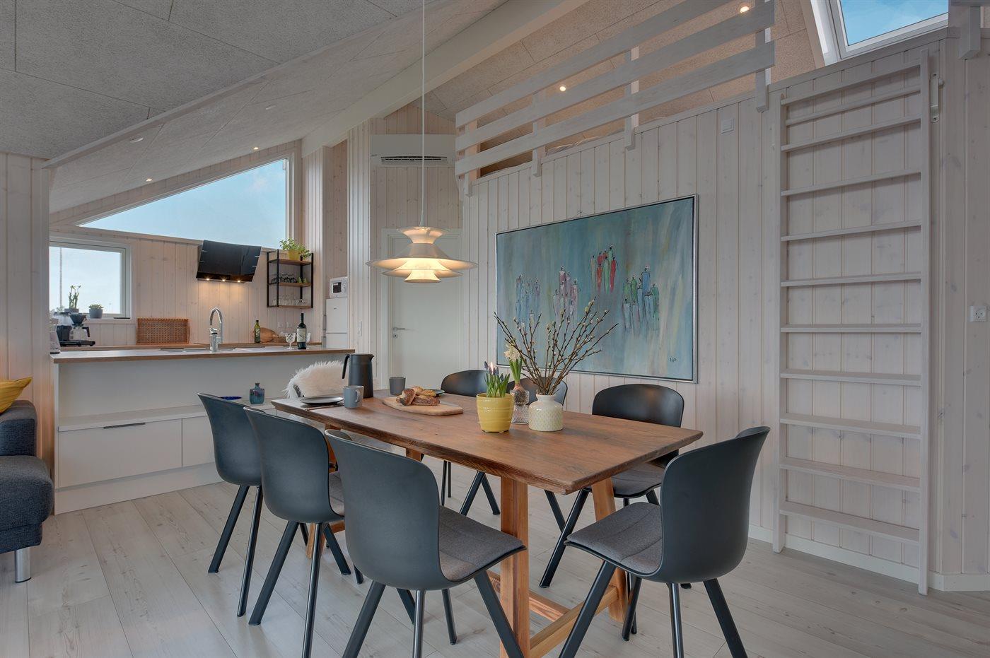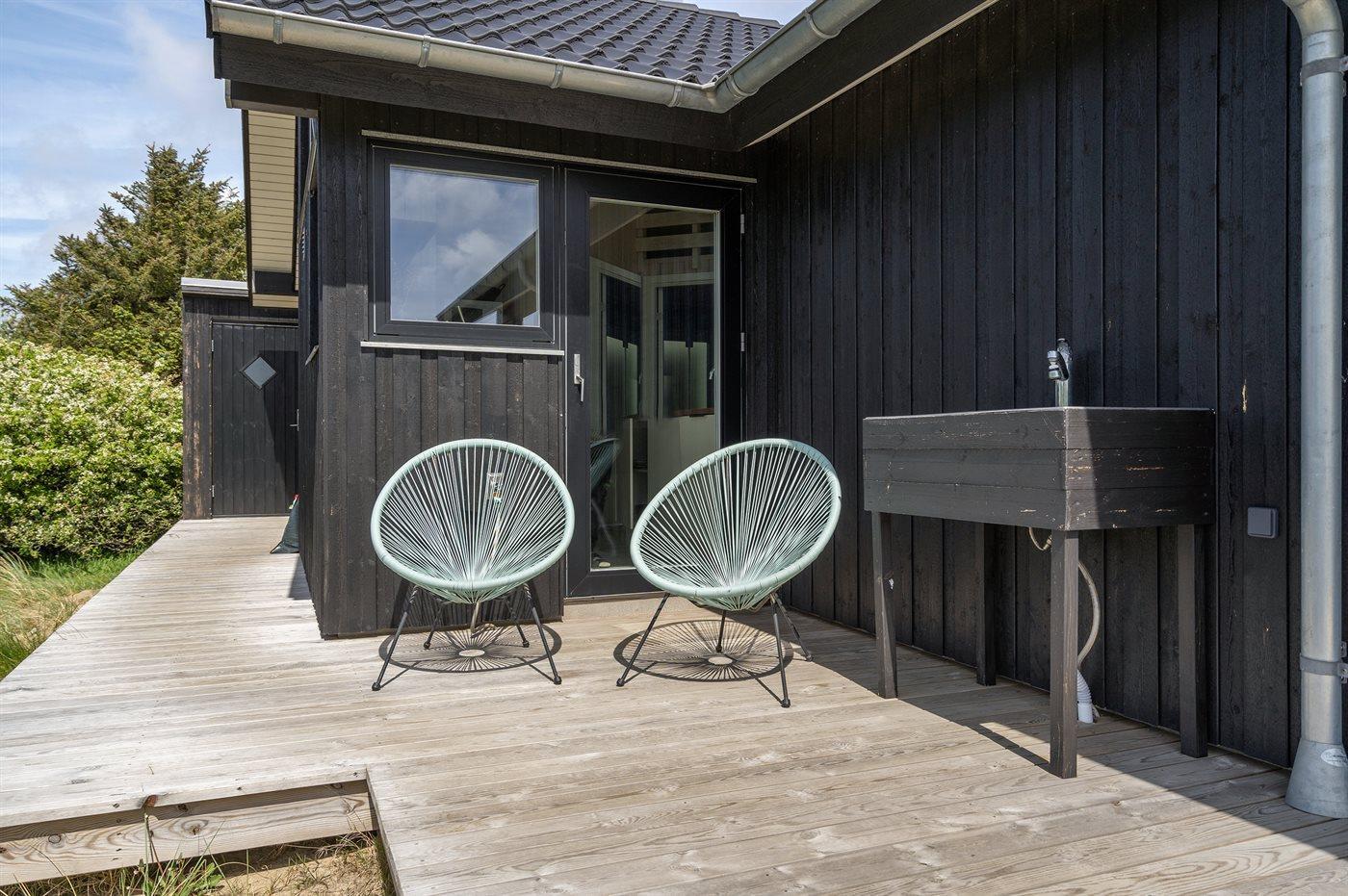 Dette flotte nye sommerhus ligger på en naturgrund i nærheden af stranden i Lakolk. Til huset hører såvel åben som overdækket terrasse med havemøbler. Sommerhuset egner sig til 6 personer samt 1 barn op til 3 år. Ferieboligen er på 75 m² og er bygget i 2019/2020. Der er gulvvarme i entréen og på badeværelset. Ferieboligen har kombineret vaskemaskine/tørretumbler. Ferieboligen er beliggende på en 1210 m² stor naturgrund med dejlig udsigt ud over Heden. Der er 500 m til havet. Nærmeste forretning er beliggende i en afstand af 200 m. Til ferieboligen hører 100 m² åbent terrasseareal med lille udekøkken med koldt vand. Desuden findes der 17 m² overdækket terrasse med grill. Der er redskabsrum. Til de mindste feriegæster findes der sandkasse samt en gynge i et af træerne. Der findes udendørs bruser og dejlig udendørs spa til 5 personer (standvand). Der er i alt 3 soveværelser, alle med hver én dobbeltseng. Desuden findes der 2 sovepladser på madrasser på husets store hems med lys og 220 V stikkontakt. Derudover er der 1 stk. barneseng til rådighed. Det dejlige køkken med køkken-ø er bl.a. udstyret med 1 køle-/fryseskab, 4 keramiske kogeplader, varmluftovn, mikrobølgeovn, opvaskemaskine, kaffemaskine samt emhætte. Der er 1 badeværelse med bruser, 1 toilet og lille sauna. Der er installeret luft til luft varmepumpe. I stuen findes der Smart TV, mindst 3 danske kanaler og mindst 3 tyske kanaler desuden findes der internet, (fra 30.04.2020 er der Stofa Tv og fiber internet). Det er tilladt at medbringe 1 husdyr. Parkering ved ferieboligen.
