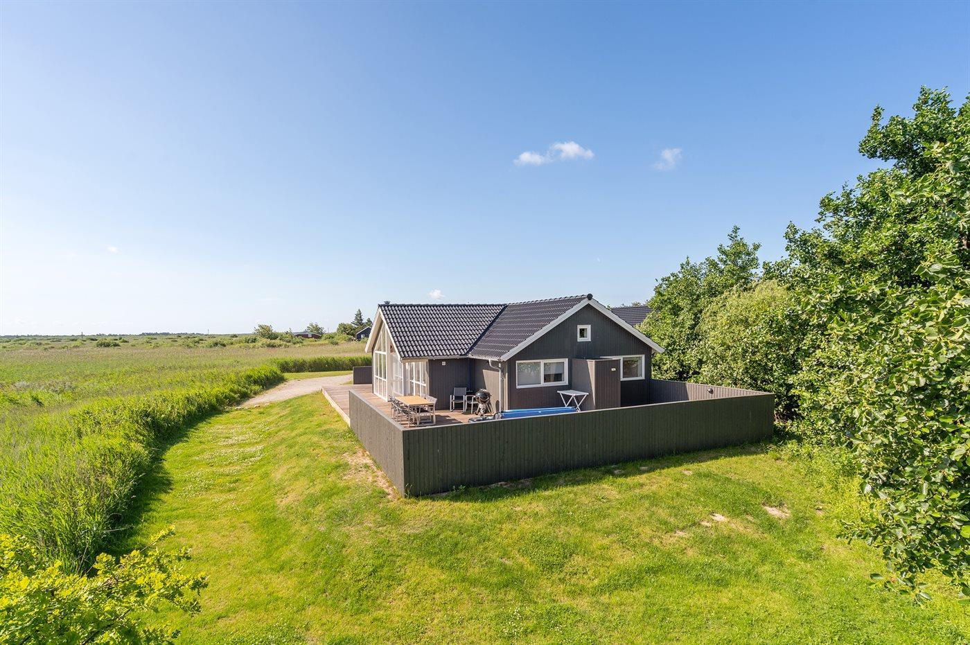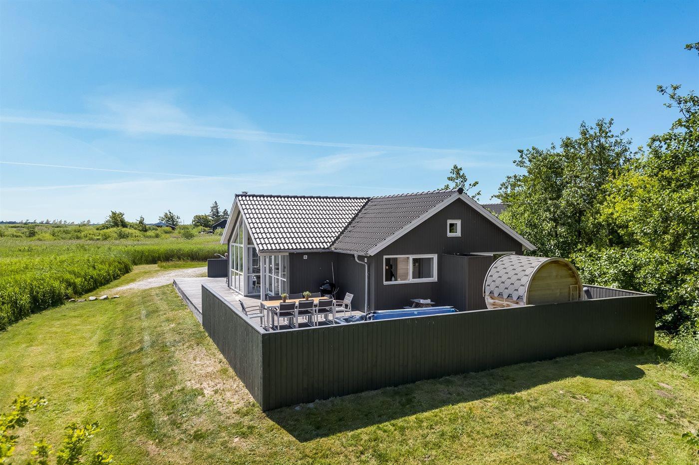 Nybygget sommerhus på Rømø med stor grund, spa, sauna og plads til afslapning nær havet.