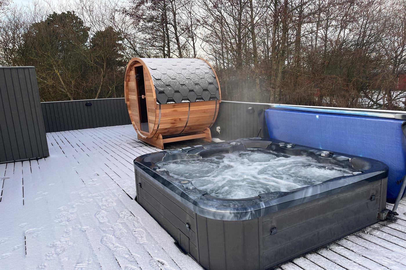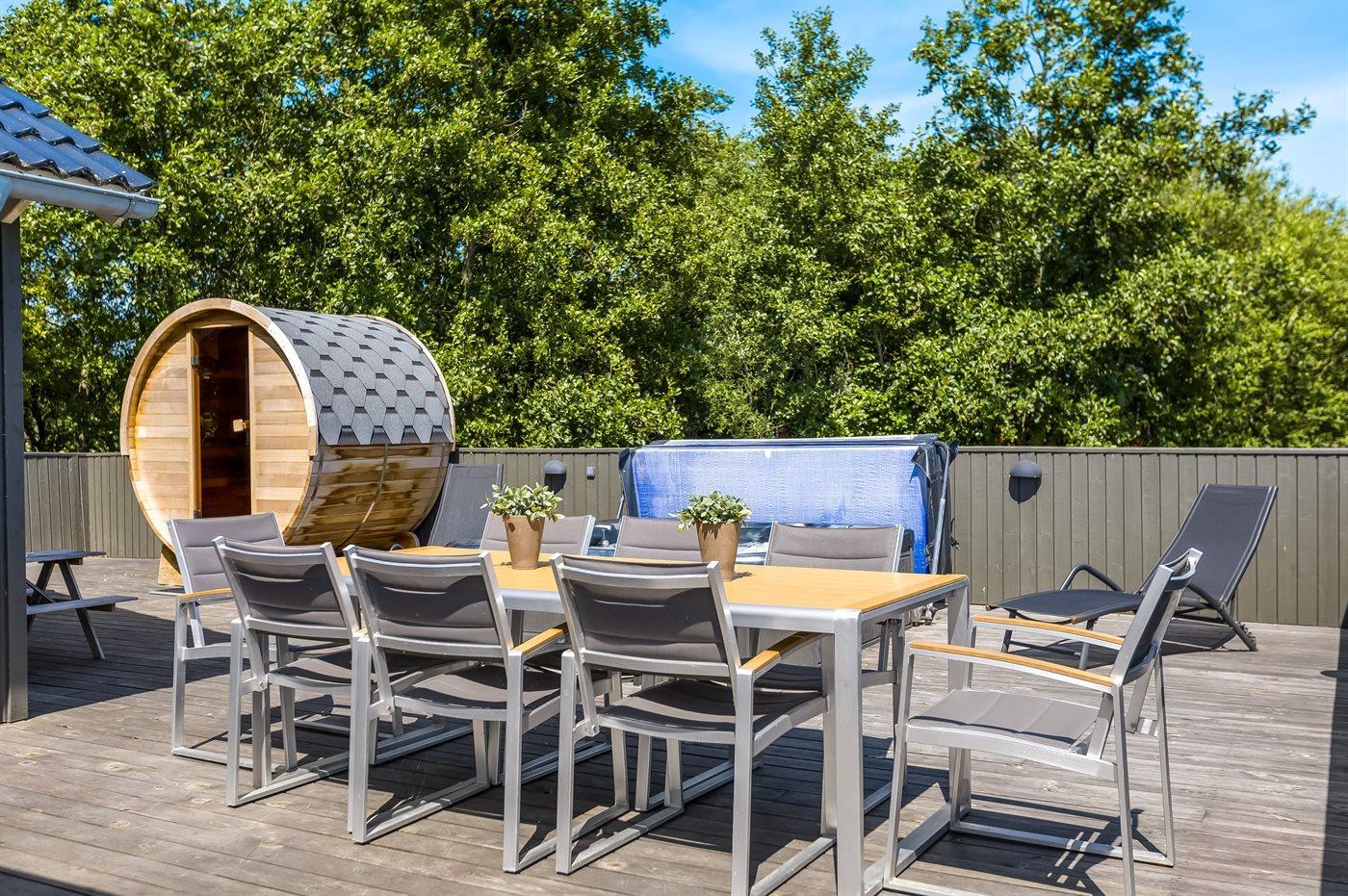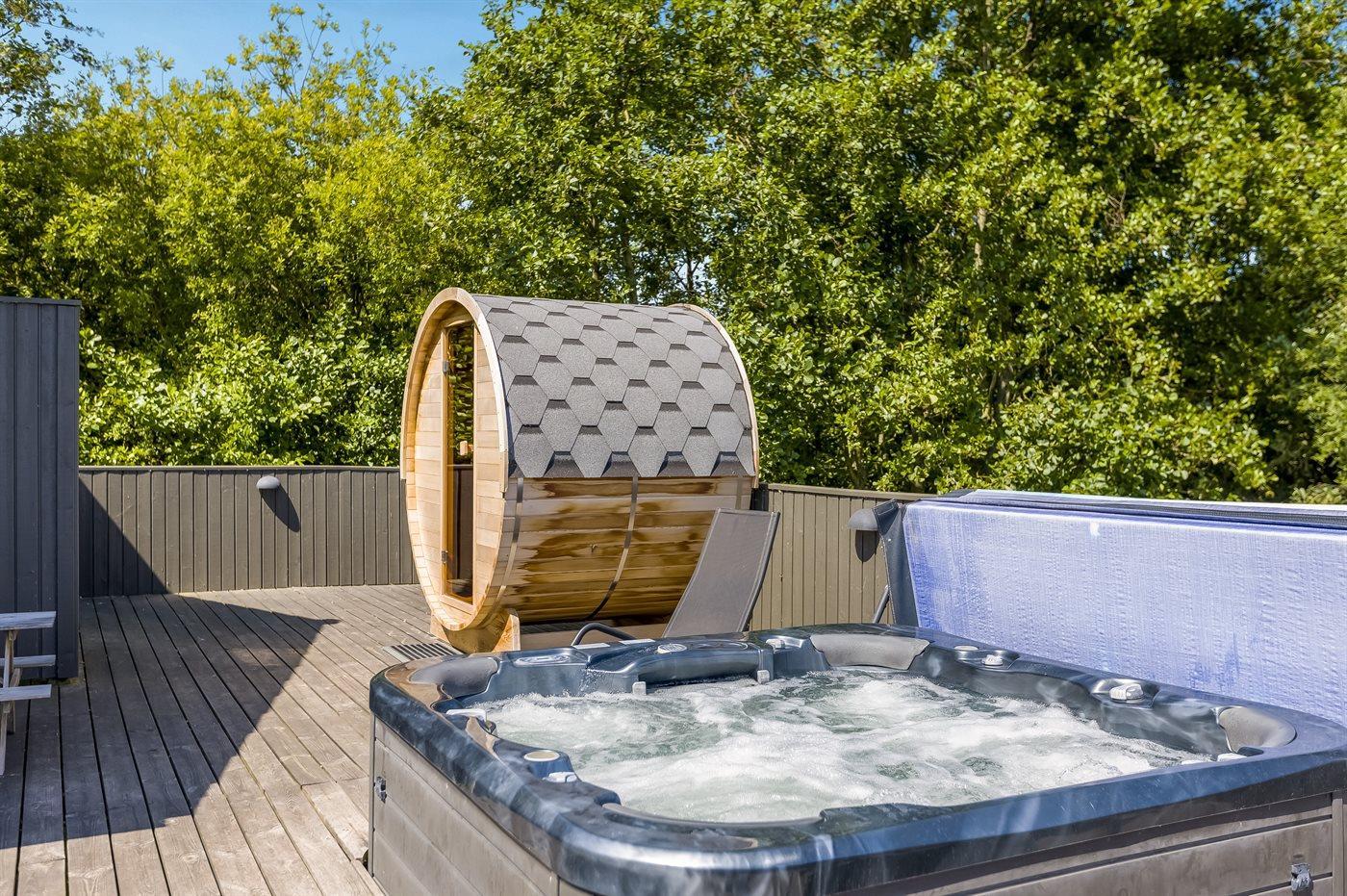 Der er mulighed for afslapning i udendørs standvandsspa til 7 personer.