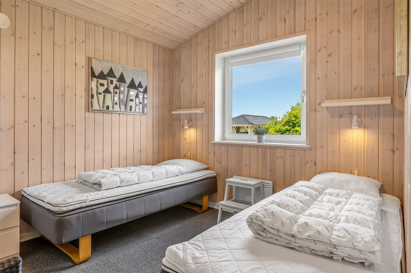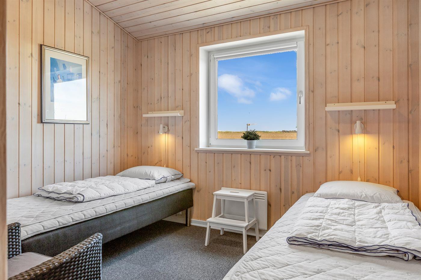 Der er i alt 3 soveværelser. Sovepladserne fordeler sig på: 4 sovepladser i enkeltsenge. 2 sovepladser i køjeseng.- 2 af disse sovepladser befinder sig i et anneks.