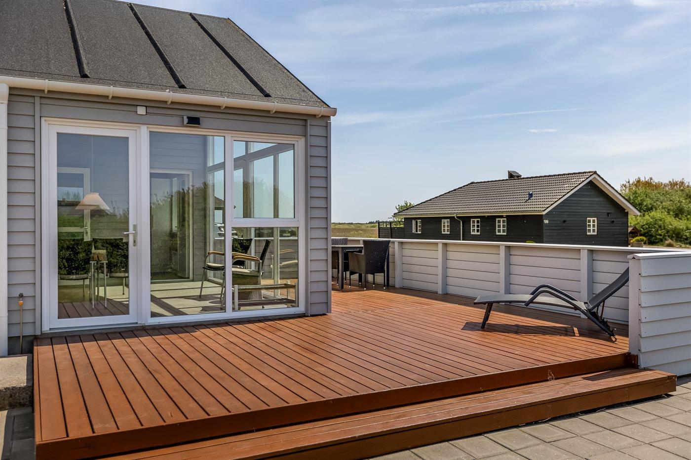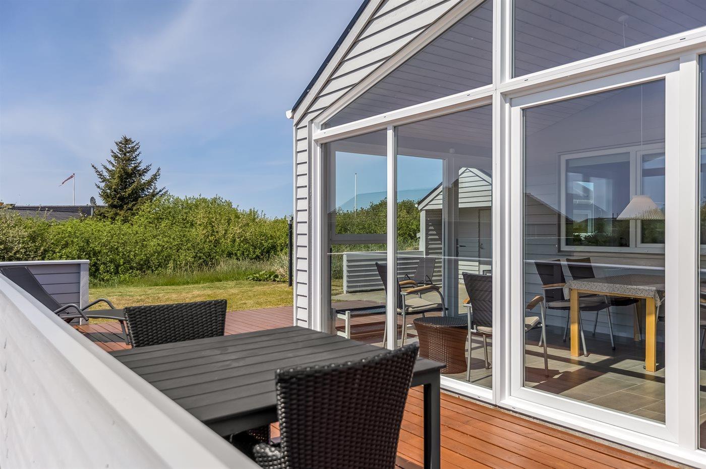 Ferieboligen er beliggende på en 1200 m² stor naturgrund. Der er 1400 m til havet. Der er 4000 m til Vadehavet. Nærmeste forretning er beliggende i en afstand af 400 m. Til ferieboligen hører 25 m² terrasseareal. Desuden er der 17 m² overdækket terrasse. Der findes volleyball-bane, som er fælles med nabohuset. Gynge. Beachvolley. Grill til rådighed. Parkering ved ferieboligen.