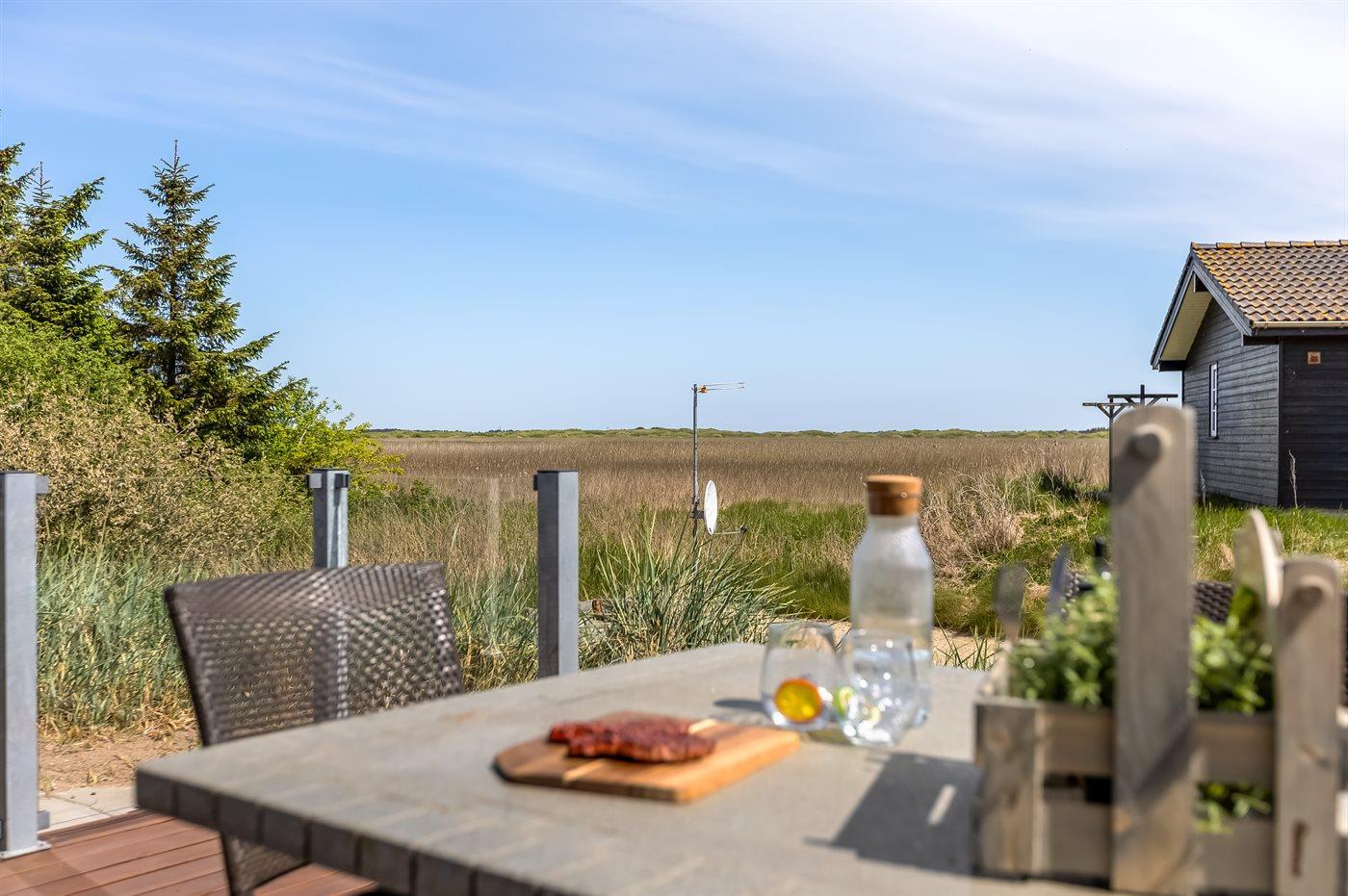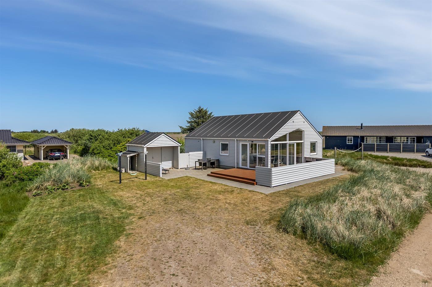 Hyggeligt sommerhus nær sø og Vesterhavets strand med anneks og overdækket terrasse.