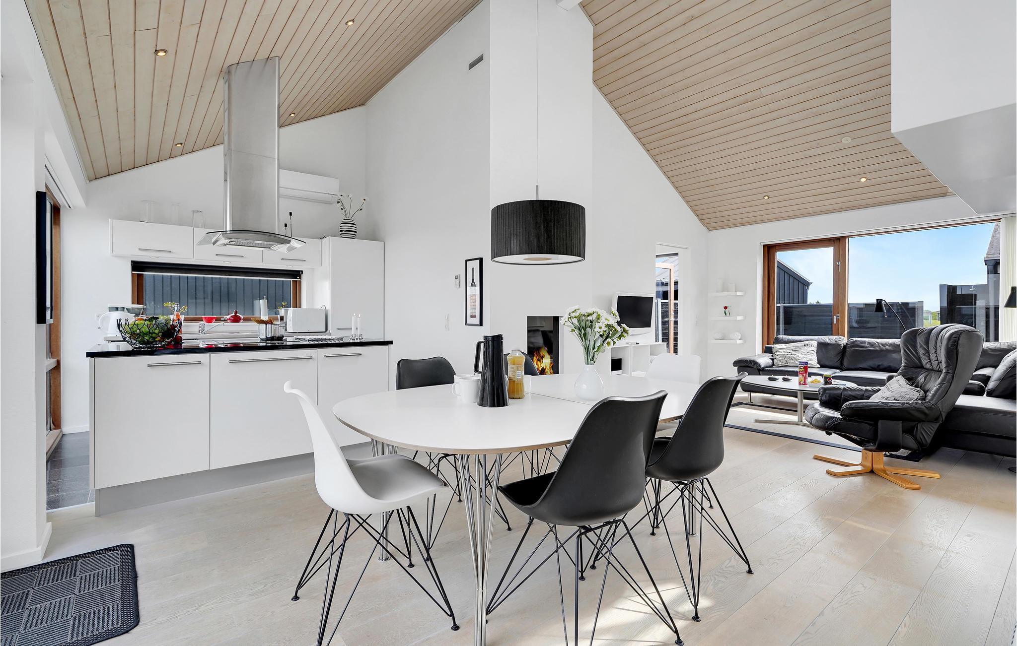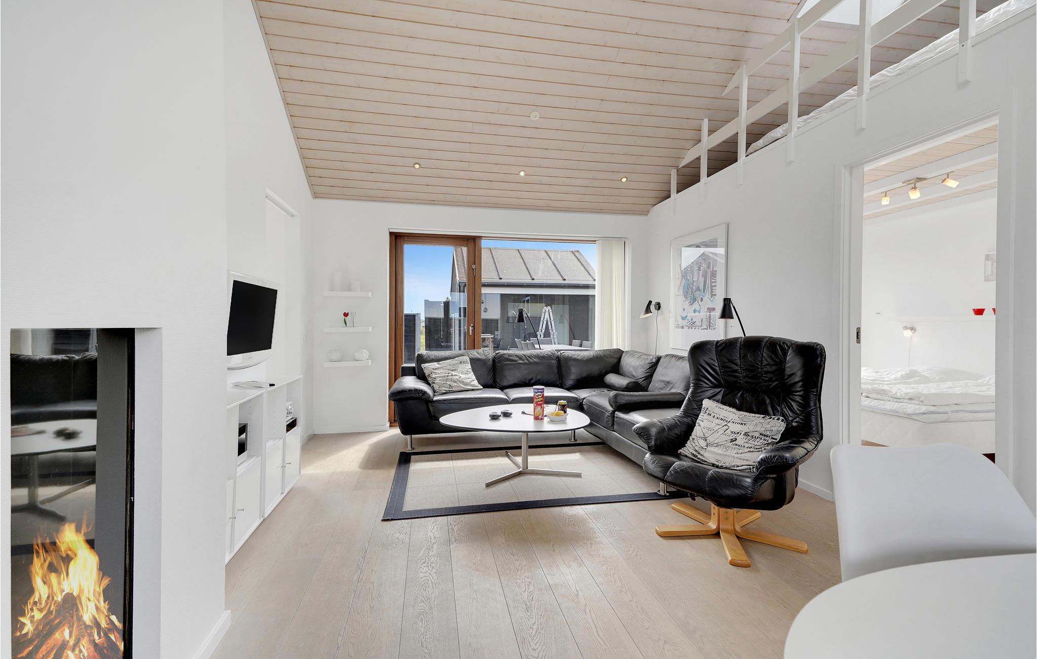 Luksustræhus på Rømø med hyggelig gaspejs, udendørs køkken og nær den brede sandstrand.