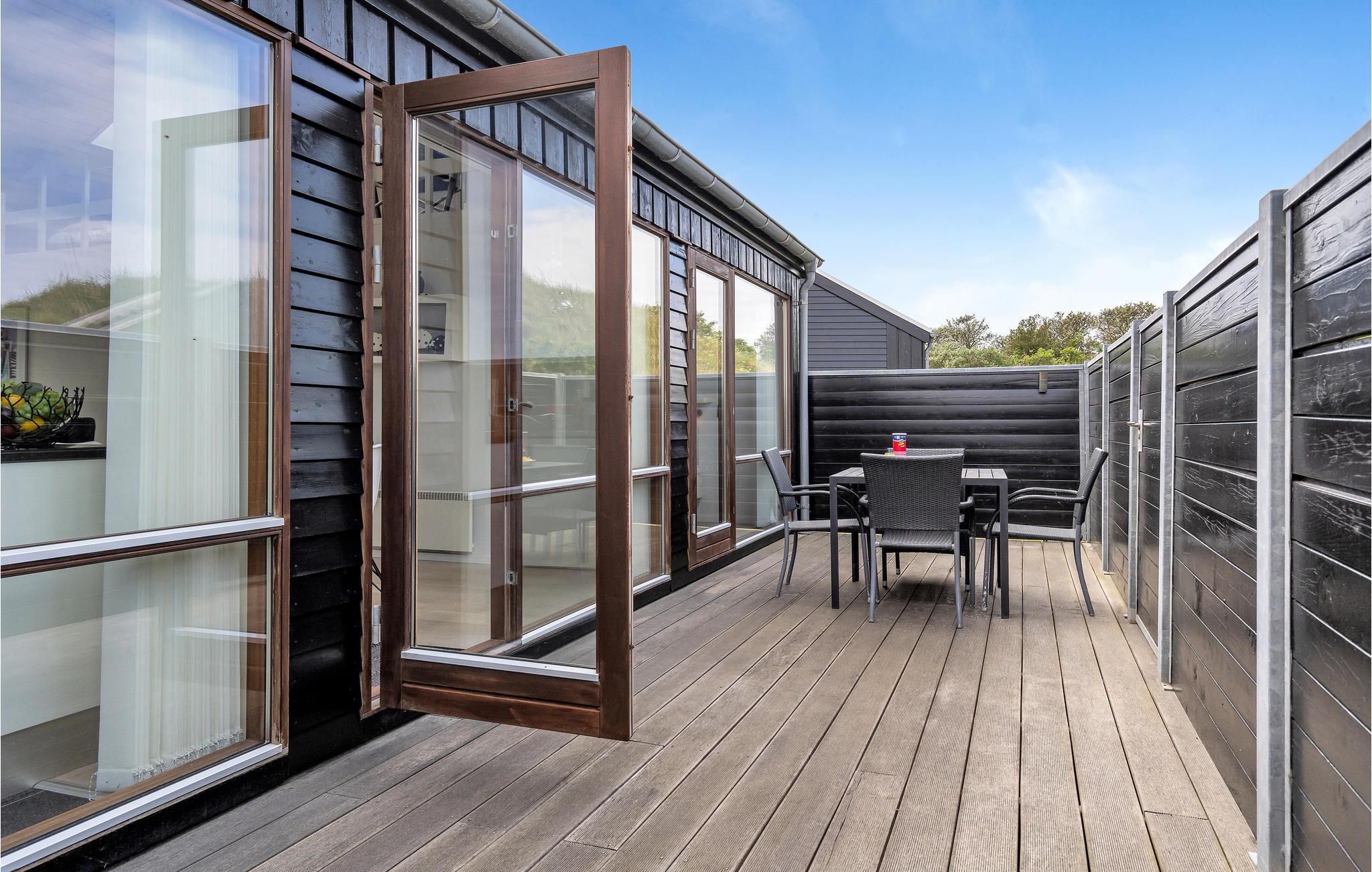 På Lakolk, Rømø nær indkøb, restauranter og den brede sandstrand ligger dette pragtfulde luksustræhus, der er bygget af kvalitetsmaterialer. Det er velindrettet med pæne, smagfulde møbler overalt. I stuen, der er kombineret med det veludstyrede køkken, står gaspejsen (gas mod betaling). Den er med til at skabe en hyggelig stemning om aftenen, når alle er samlet til en god snak om dagens begivenheder. To af de seks sovepladser er på gode madrasser på den rummelige hems. Den største af de to indhegnede terrasser er lavet som en dejlig gårdhave med bl.a. et mobilt udekøkken og integreret grill. Efter en tur på stranden eller bare en varm dag på terrassen, er det skønt med en douche under husets udendørs bruser.
