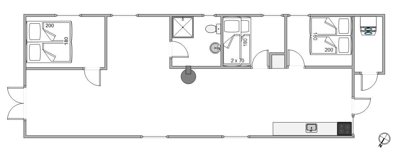 Udefra ligner Lakolk 159 et klassisk sommerhus med sin sorte træbeklædning. I 2024 totalrenoveres feriehuset indvendigt, så det fremstår nyt og lyst for de kommende feriegæster. Feriehuset er velegnet til seks feriegæster – perfekt til familieferien eller venneferie. De 76 m2 fordeler sig på ét badeværelse, stort køkkenalrum, hvor køkken og stue smelter sammen samt tre soveværelser. To værelser har dobbeltsenge, mens det sidste er et perfekt børneværelse med køjesengen, 70x190. Her er plads til at være barn, og det vil uden tvivl falde i god jord hos de små!