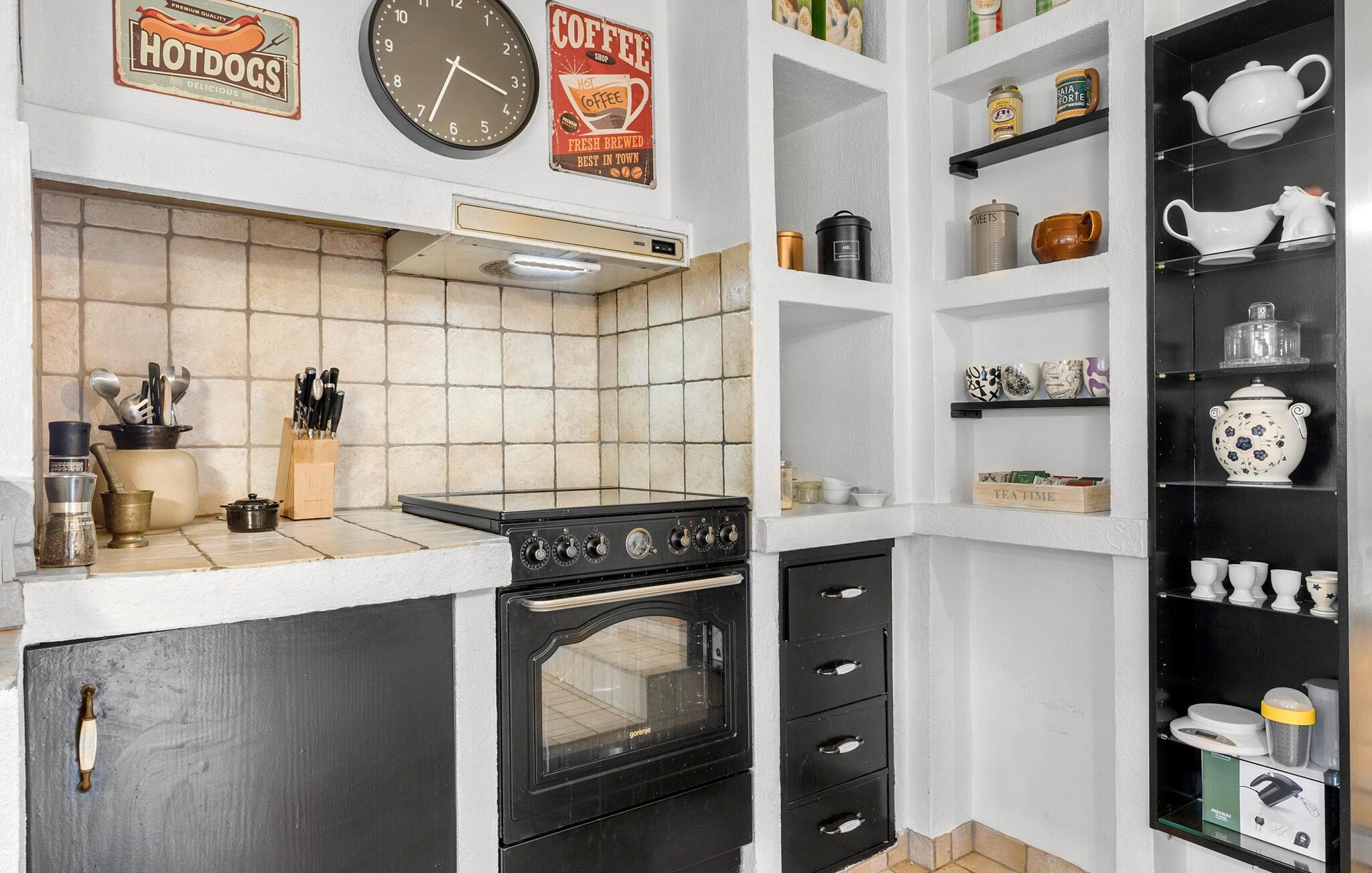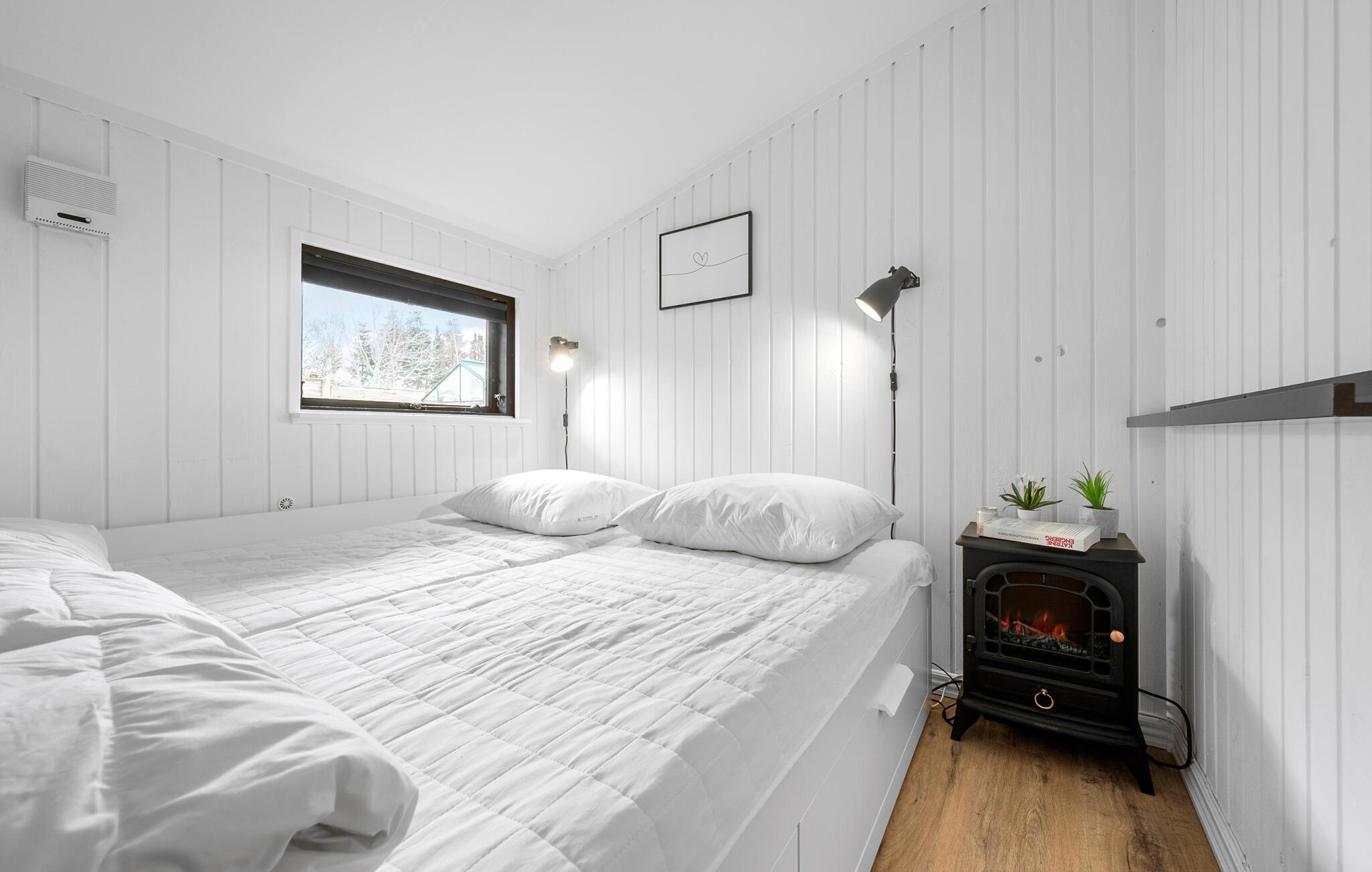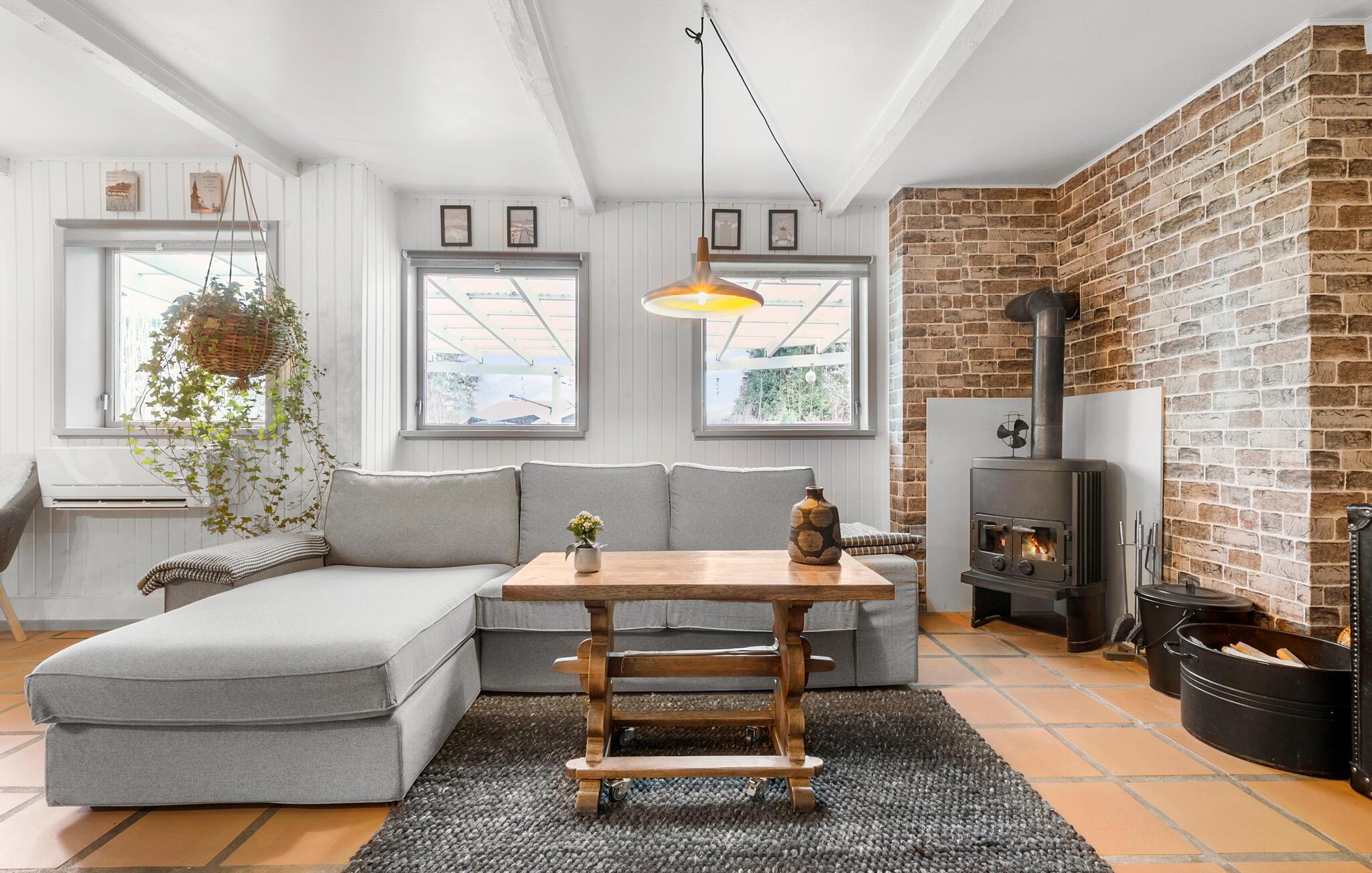 Dette sommerhus har en lys og komfortabel opholdsstue, hvor I straks vil føle jer hjemme. Begynd dagene med en solid morgenmad ved spisebordet i det rummelige køkken. Efter at have spist kan I læne jer tilbage i sofaen i stuen ved brændeovnen. Sæt jer til rette her og nyd en afslappende filmaften med familien.