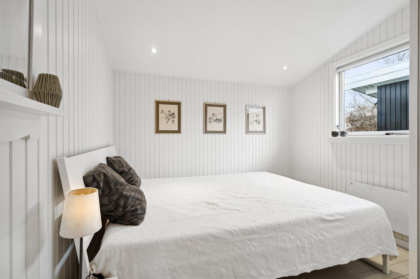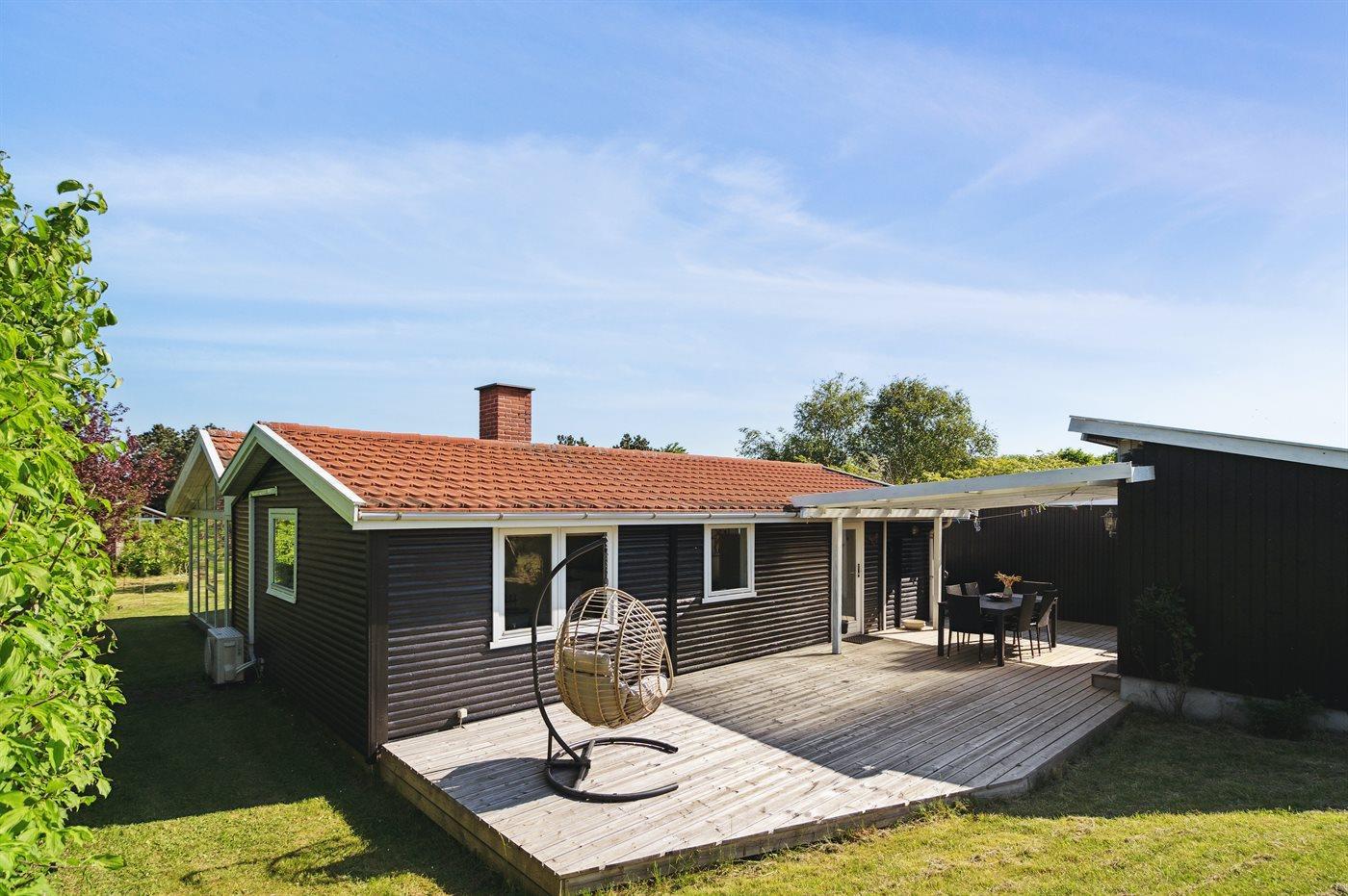 Flot, lyst og moderniseret sommerhus kun 75 m fra dejlig badestrand. Huset er nydeligt indrettet og har bl.a. en skøn udestue, hvorfra der er udsigt over haven. Både foran og bagved huset er der anlagt træterrasse. Den sydvendte terrasse ligger bag huset i god læ bag skrænt og er delvist overdækket. Huset ligger på en stor grund, hvor der er god plads til udendørs aktiviteter.