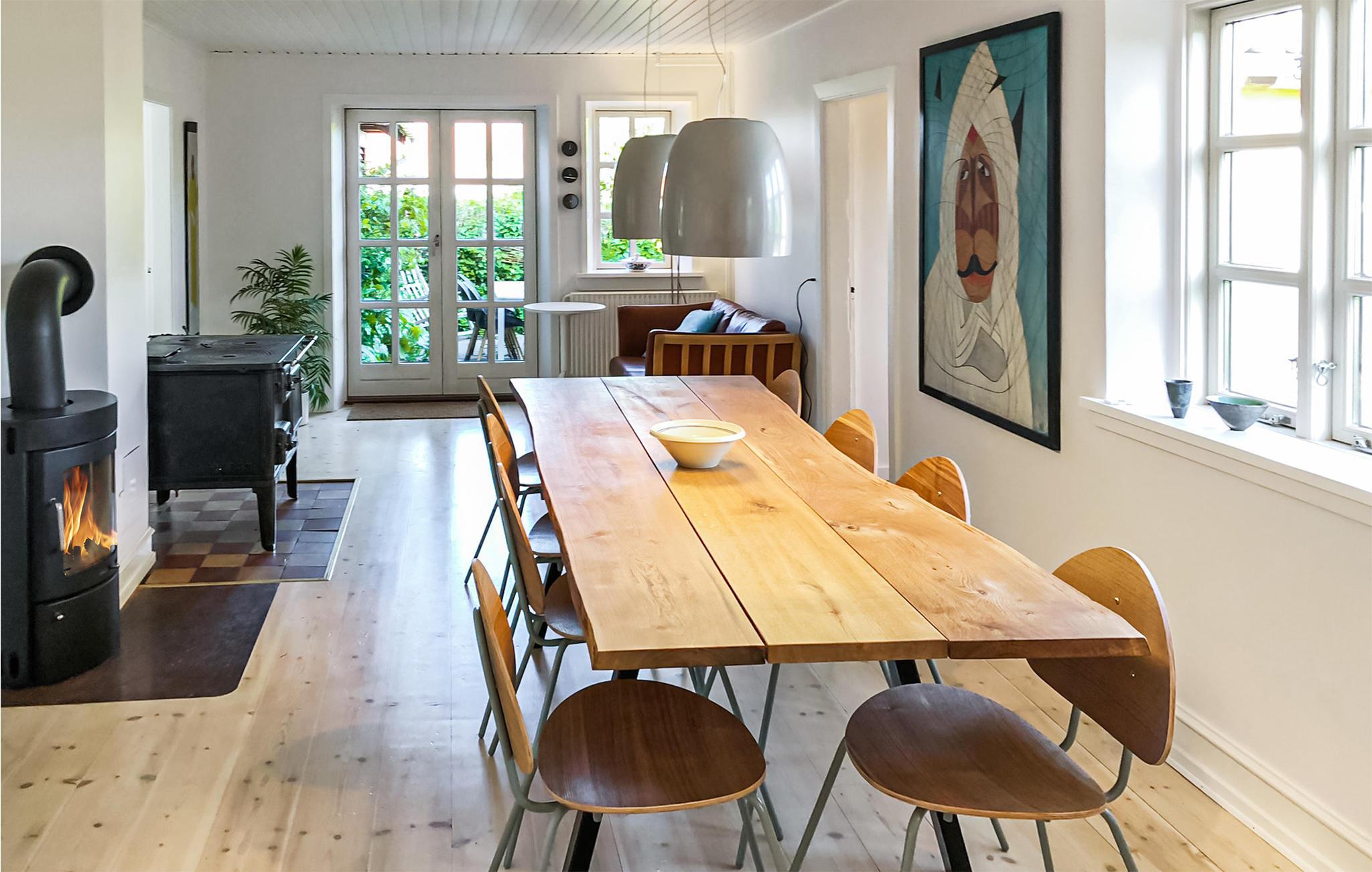 I vil føle jer hjemme fra dag ét i dette omhyggeligt moderniserede hus. Køkkenet indbyder til at tilberede lækre måltider sammen, som I kan spise ved det store spisebord. Bagefter kan I sidde længe sammen ved den hyggelige knitrende brændeovn og spille et brætspil eller nyde varme drikkevarer. Måske vil I også gå hen til klaveret i rummet ved siden af og glæde hele familien med en aften med sange. Nyd jeres eftermiddagskaffe i det afsidesliggende siddeområde i haven.