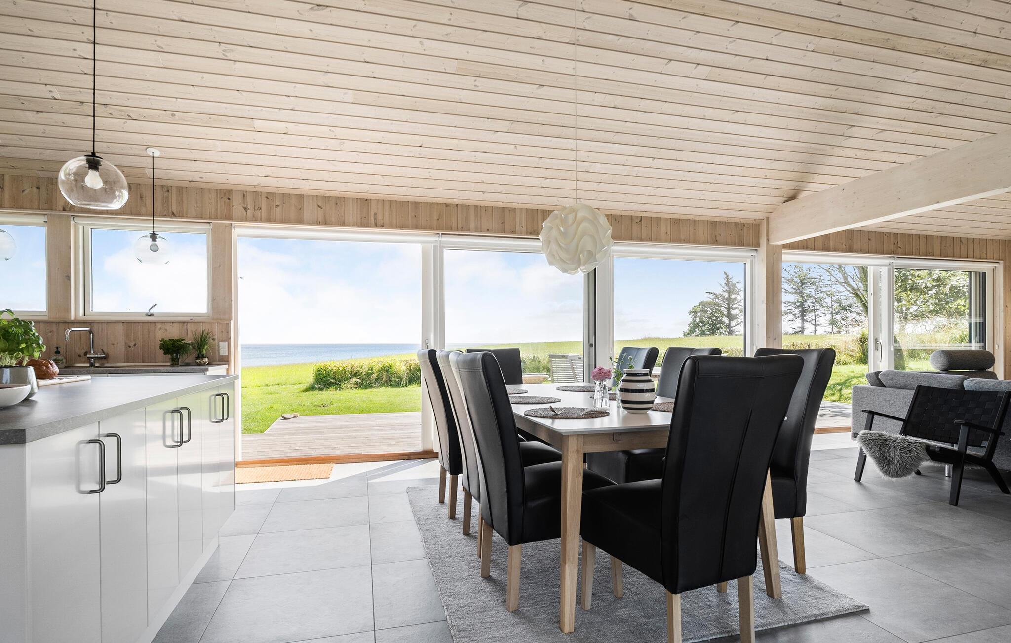 Slap af i en elegant atmosfære, og lad hverdagens travlhed ligge bag jer. Den store vinduesfront viser den fantastiske havudsigt fra sin bedste side, og I kan nyde denne vidunderlige udsigt fra den komfortable sofa eller mens I sidder sammen ved spisebordet. Træd fra soveværelset direkte ud i det fri og nyd havluften og den storslåede udsigt, mens I drikker dagens første kop kaffe. Senere kan I spise udendørs i en fantastisk kulisse, nyde et solbad eller følge den lille sti, der fører fra ejendommen til stranden og forfriske jer i det kølige vand.