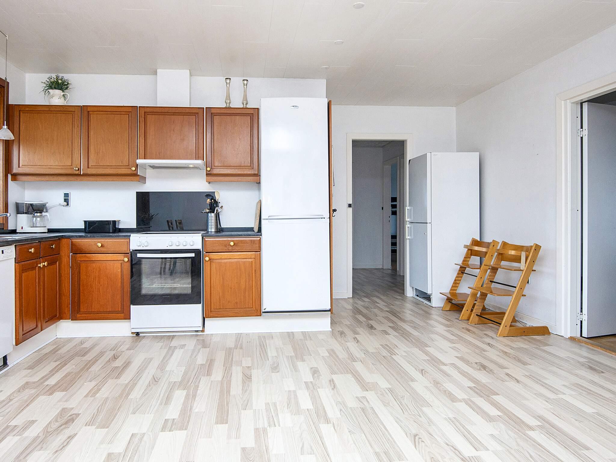 Køkken: Høj stol, el-komfur, køleskab, køle-frys, fryser 200 - 249 l, mikroovn, kaffemaskine, opvaskemask.