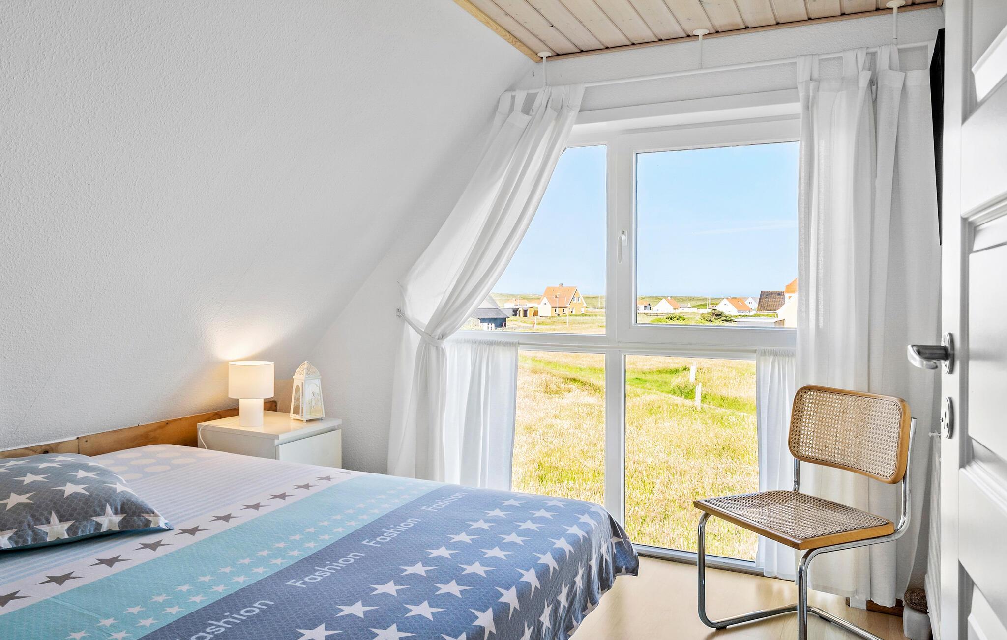 Hold en dejlig ferie i dette charmerende sommerhus, som er lyst og rummeligt - helt oplagt til den store familie. Kom væk fra hverdagens trummerum og nyd freden og den skønne natur på vestkysten. Huset er hyggeligt indrettet og har et skønt og rummeligt udendørsområde. Terrassen er det ideelle sted at begynde dagene med morgenmad i den friske havluft eller afslutte jeres aften med en lækker middag. I kan også bruge altanen til at nyde panoramaudsigten over landskabet.