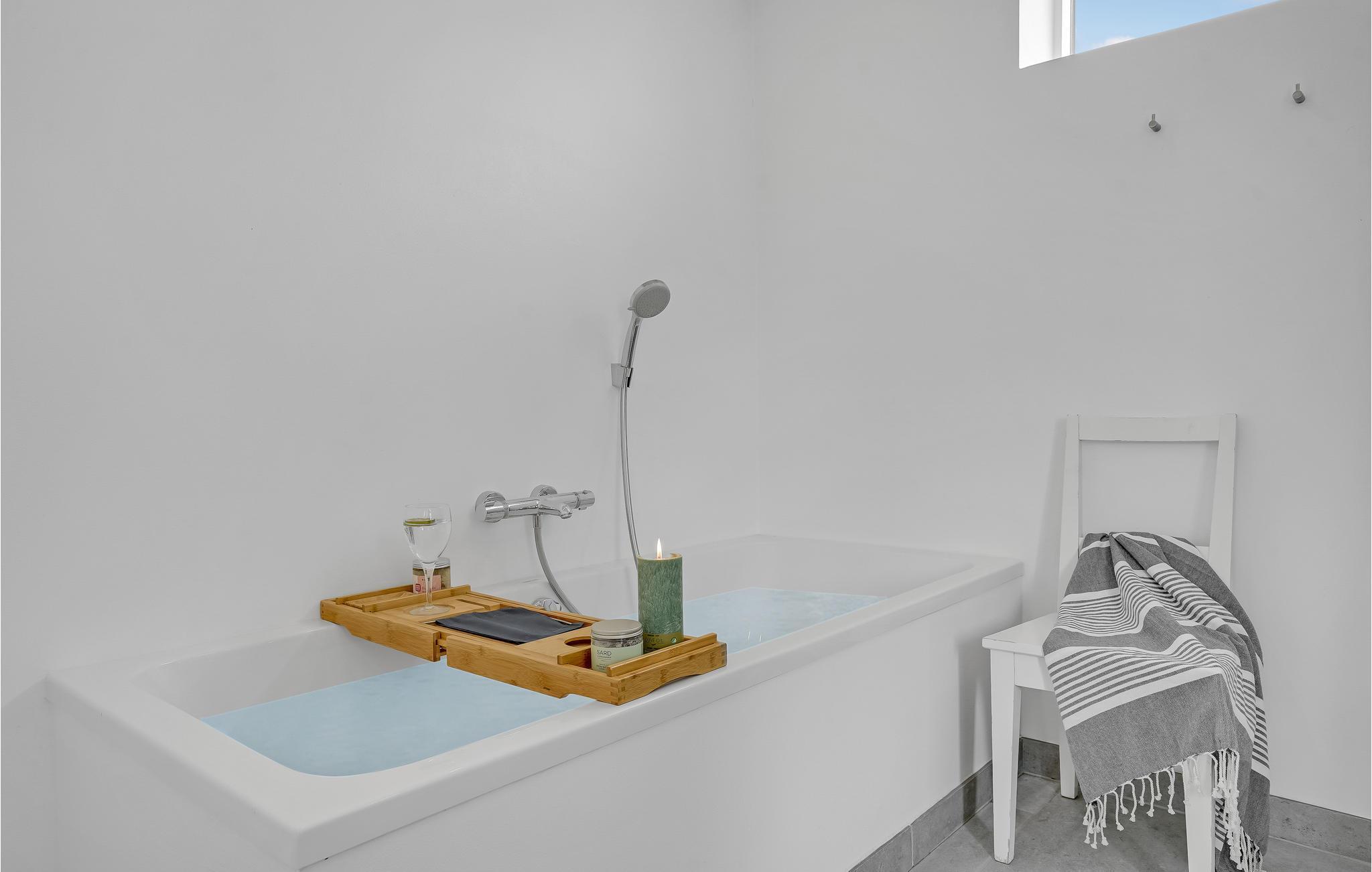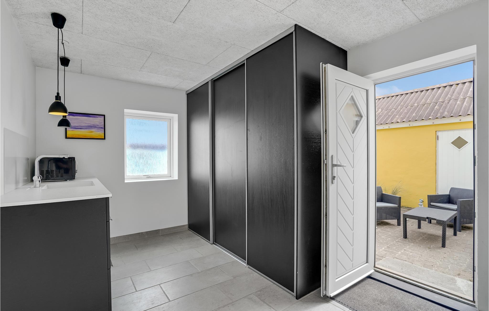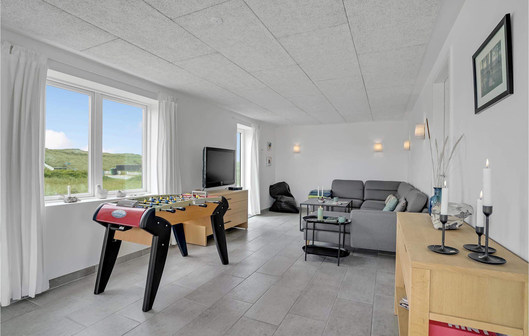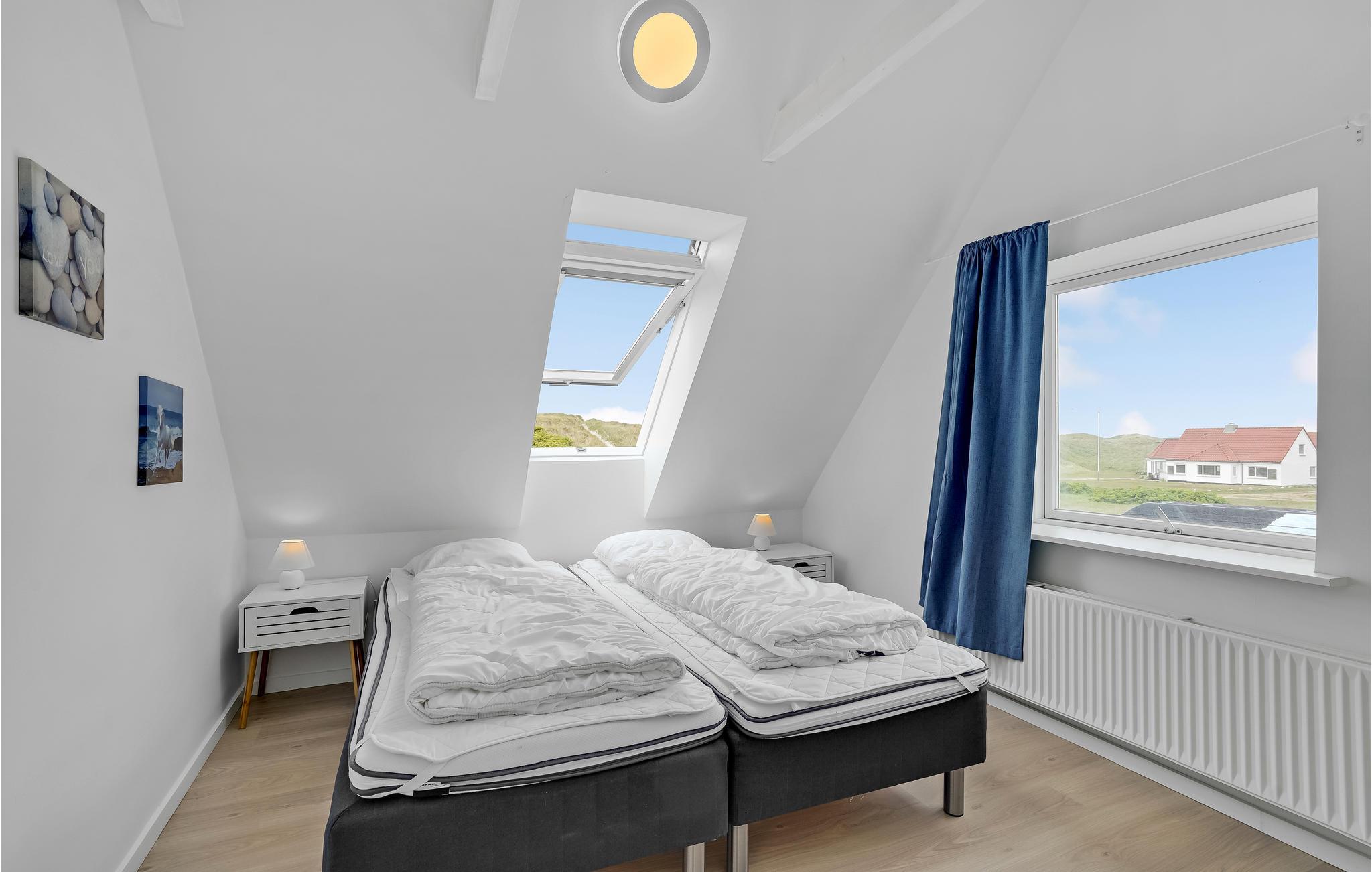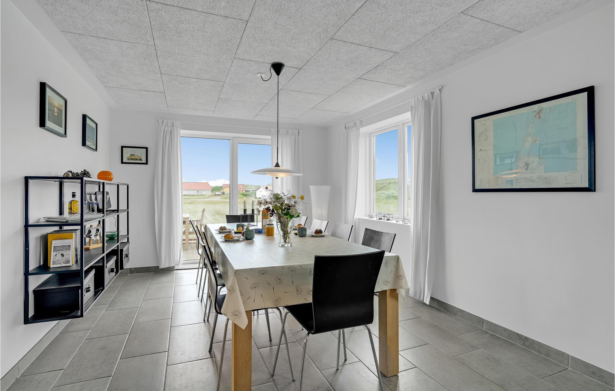Blot 75 meter fra Vesterhavets brusende vand ligger dette flotte feriehus, hvor der er plads til den store familie. Stå på høfderne lige nede for huset, og fisk efter både makrel og fladfisk, eller spring på surfbrættet og sus afsted ud på bølgerne. Huset ligger med en af vestkystens mest attraktive placeringer, med havet som nærmeste nabo, og strande med store vidder hvor der er plads til alle. Huset har desuden den store fordel at det ligger for enden af en blind vej, så biltrafik vil være minimalt. I huset, gennemrenoveret i 2015 ligger den store spisestue og tv-afdeling med udgang til sydvendt terrasse, et flot køkken med de bedste hårde hvidevarer, et stort indbydende badeværelse med badekar, samt stort soveværelse med to sovepladser og baggang med fiskerenseplads i stueplan. I hele stueetagen er der gulvarme, som gør temperaturen yderst behageligt. På første sal ligger der hele tre soveværelser med i alt otte sovepladser, samt et fint lille badeværelse med brus. Vrist og Langerhuse ligger 10 km fra fiskerbyen Thyborøn, med forskellige aktivitetsmuligheder. Besøg for eksempel det store Sea War Museum, og lad børnene se og røre ved fisk og krabber i Jyllandsakvariet. Nyd et fiskemåltid på et af havnens restauranter, og slut dagen af med is i hånden, mens I går tur lang havnekajen. Spil golf i Lemvig golfklub, dens smukt anlagte baner ligger 15 km øst for huset. Golfklubben ligger 2 km fra den hyggelige by Lemvig, med gågade med mange butikker.