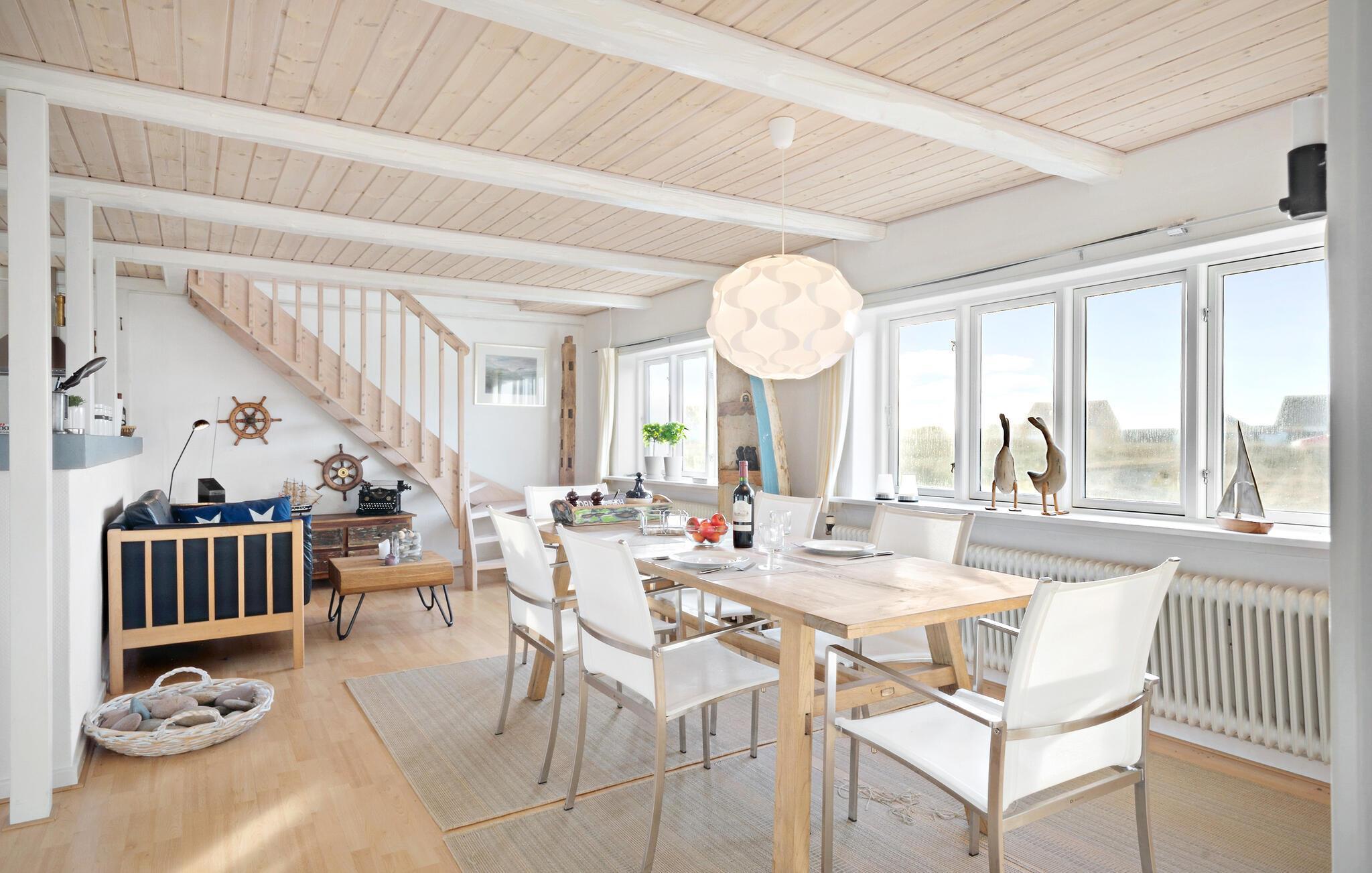 Velkommen til dette charmerende feriehus i idylliske Langerhuse kun få meter fra stranden ved Vesterhavet. På sine to etager byder huset på en varm og behagelig indretning, hvor I kan se frem til en dejlig udsigt over området og et luftigt loft-til-kip på første sal. Huset emmer af varme og atmosfære, og I kan glæde jer til mange hyggelige fælles måltider og brætspilsaftener akkompagneret af en dejlig udsigt over klitterne.
