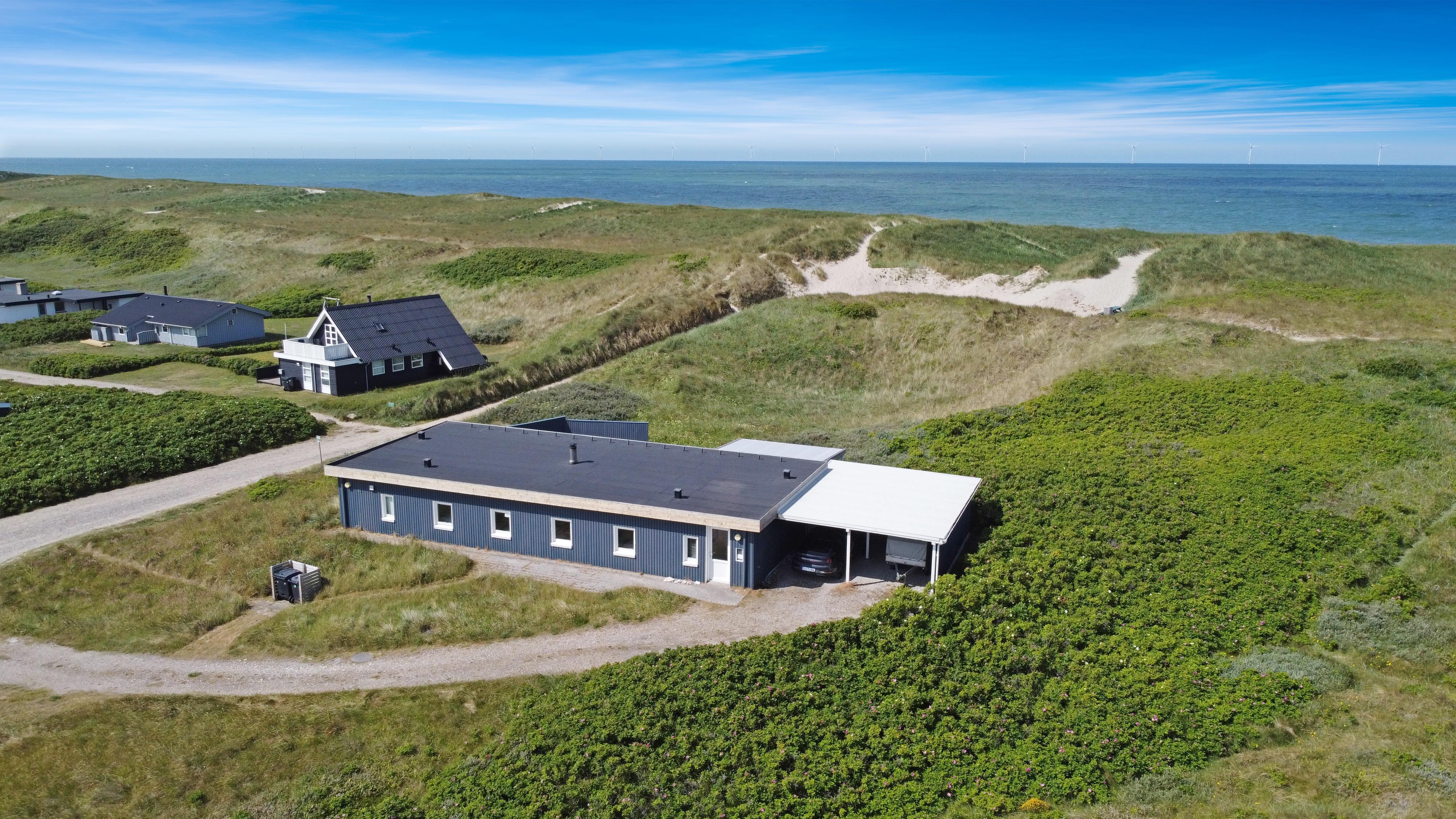 Her bydes på rigtig gode terrasseforhold med delvis overdækning og med udsigt til klitterne. Her er havemøbler, 2 solvogne og grill til de gode lange sommerdage. Der forefindes også en carport til bilen. Huset ligger ideelt til at benytte Vesterhavet og stranden. Et stenkast væk kan man flyve med drage og man kan gå lige ned til stranden at lystfiske. Om sommeren kan man bade, spille bold eller lave sandslotte, så kun fantasien sætter grænser. Rent praktisk ligger indkøbsmuligheder som Aldi og Brugsen kun godt 1 kilometer væk i Harboøre. Havnebyerne Lemvig og Thyborøn nås begge på cirka 15-20 minutter i bil.