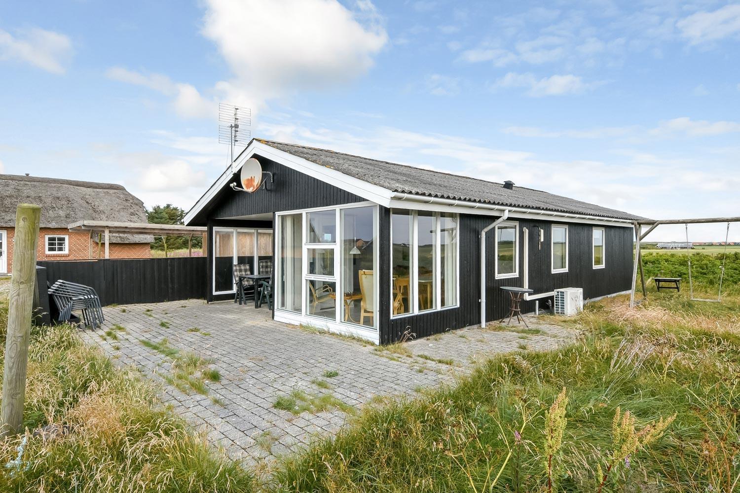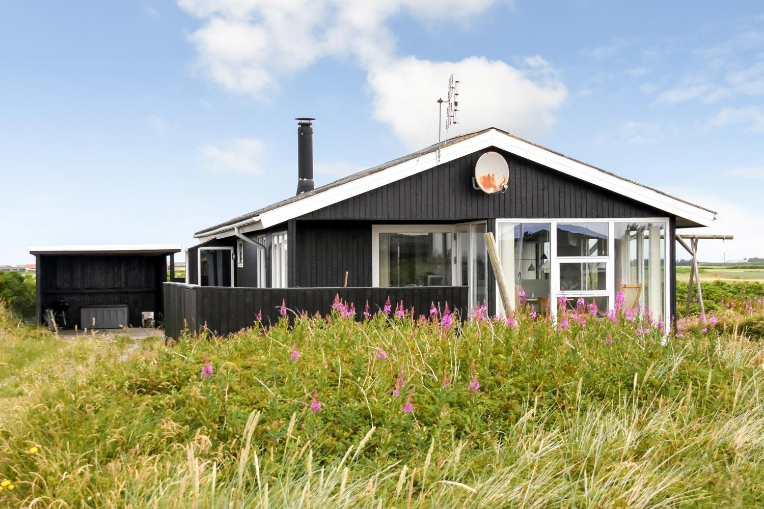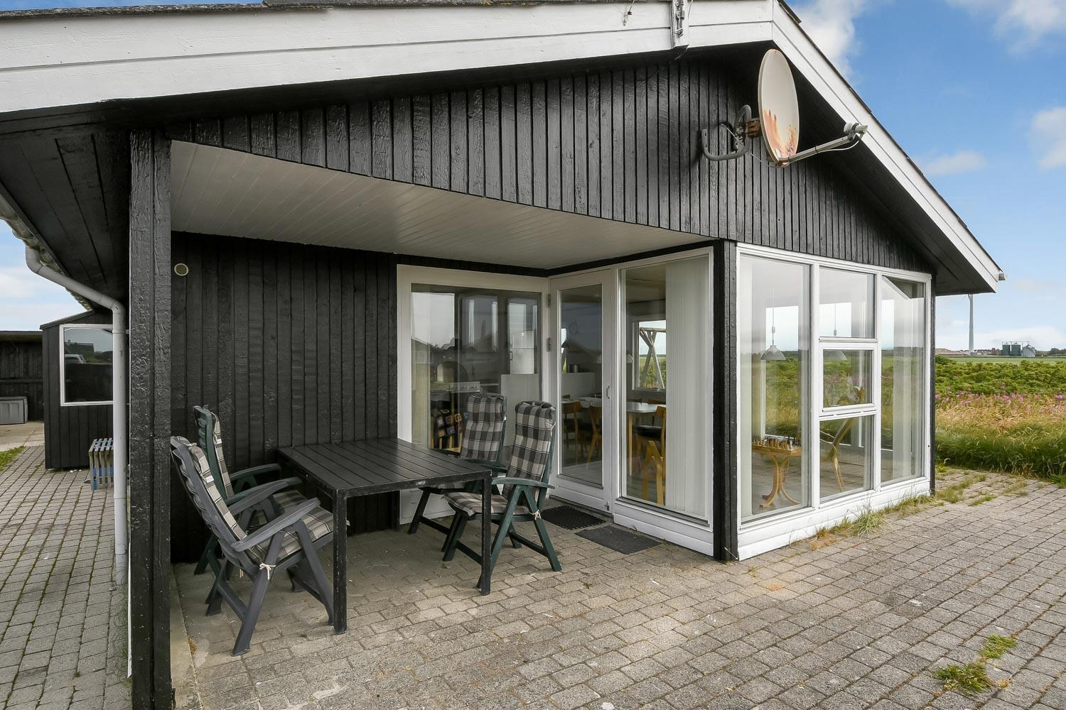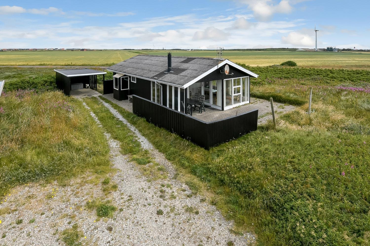 Fra opholdsstuen er der udgang til en dejlig delvis overdækket terrasse med havemøbler, liggestole og grill. Der er også en dejlig morgenterrasse langs med huset. Carport. Et rigtig godt sommerhus med den perfekte beliggenhed på en dejlig naturgrund tæt på det unikke Vesterhav som er et dagligt besøg værd både på solrige- som på blæsende dage. Hop ind i bilen eller tag cyklen og hent morgenbrød til familien i hos de nærved liggende supermarkeder. Så hvad enten du er til aktiv ferie eller total afslapning, danner dette feriehus en dejlig ramme både hvad angår hus, beliggenhed og omgivelser.
