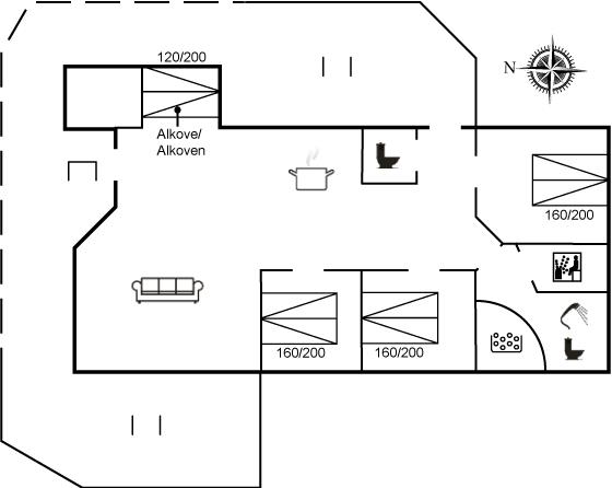 Der er i alt 3 soveværelser. Sovepladserne fordeler sig på: 6 sovepladser i dobbeltsenge. 2 sovepladser i alkove.