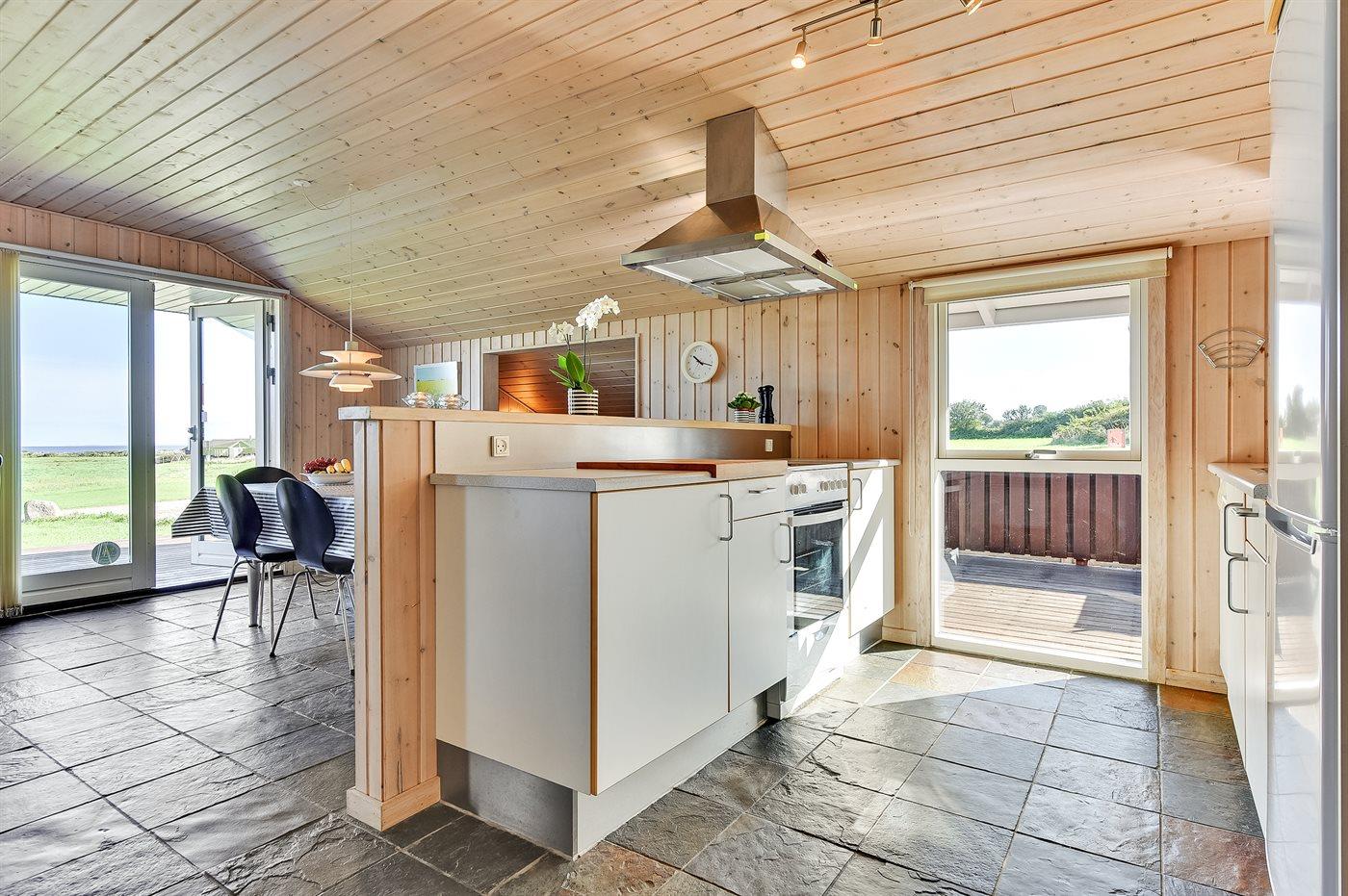 Køkkenet er udstyret med 1 køleskab. Der er 4 keramiske kogeplader, varmluftovn, mikrobølgeovn samt opvaskemaskine.