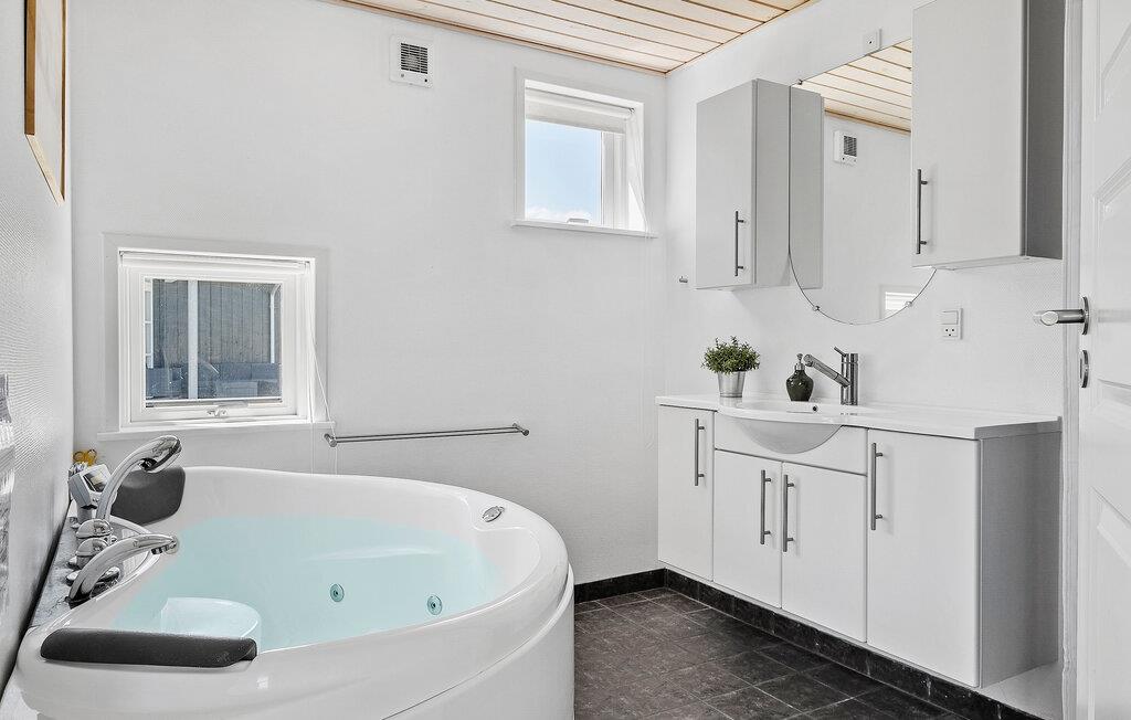 Huset fremtræder virkelig flot med kreative indretningsløsninger, åbent boligkoncept og mange finurlige detaljer, der skaber en rar atmosfære, man virkelig kan slappe af i. Det åbne opholdsrum får et flot lysindfald gennem de store vinduer, og her kan I lade hyggen udfolde sig med god tid til madlavningen, inden I dækker op til den store middag ved spisebordet. Senere kan I hive brætspillene frem og duellere til langt ud på aftenen. I kan også gøre noget ekstra godt for kroppen og slappe af i spabadet.
