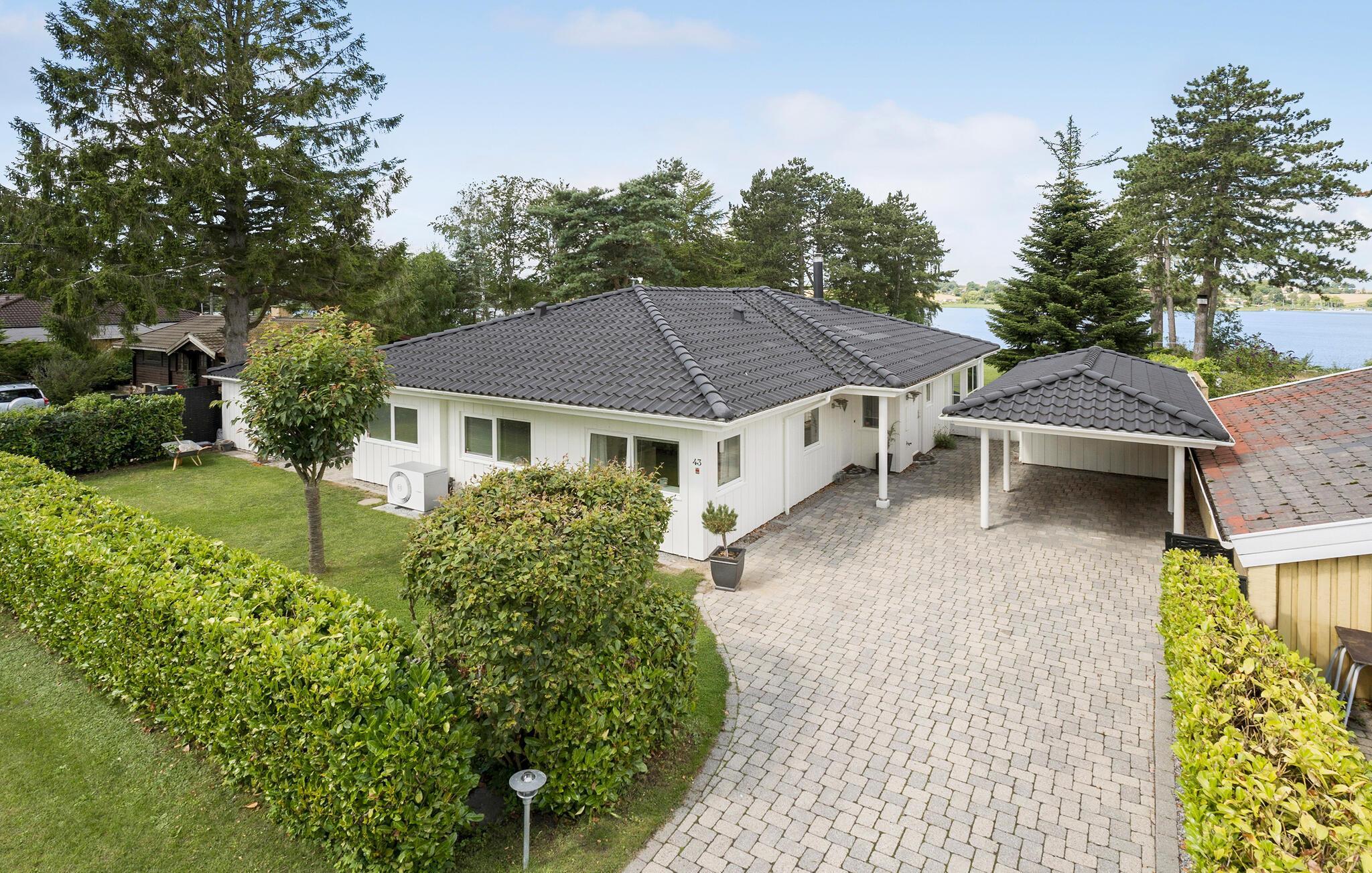 Nyd en afslappende ferie i et stilfuldt hus med fjordudsigt, terrasse og trampolin i naturskønne omgivelser ved Lejre Vig.
