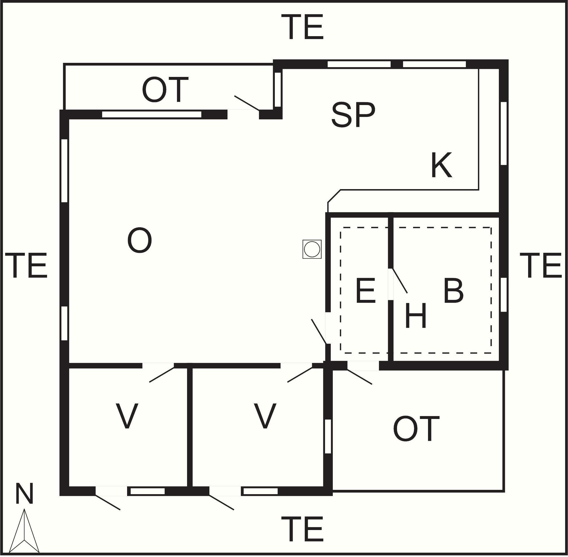 2 Soveværelser: (1DS)+(1S+2K)