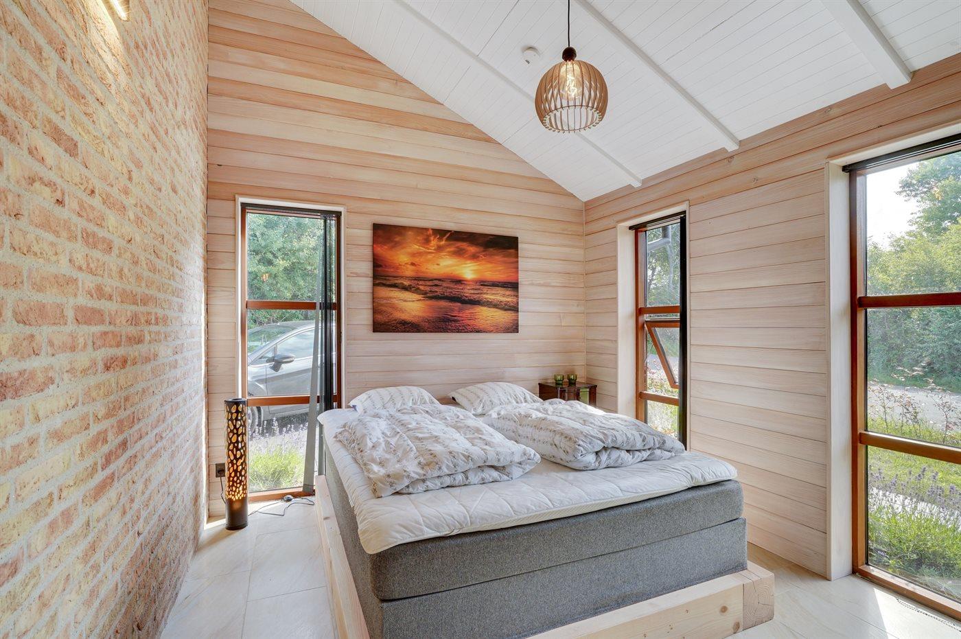 Der er i alt 5 soveværelser. Sovepladserne fordeler sig på: 8 sovepladser i dobbeltsenge. 3 sovepladser i køjesenge. Derudover er der 1 stk. barneseng.