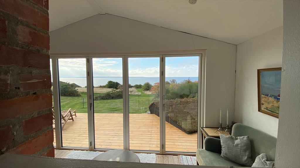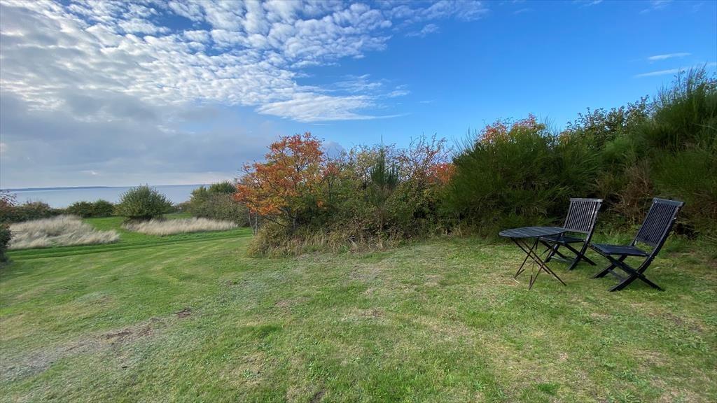 Sommerhuset og annekset er beliggende på dejlig naturgrund højt oppe på skrænten ved Hundested. Herfra er der fuld panoramaudsigt ud over havet i retningen mod Odsherred og i godt vejr kan man se helt til Hesselø.