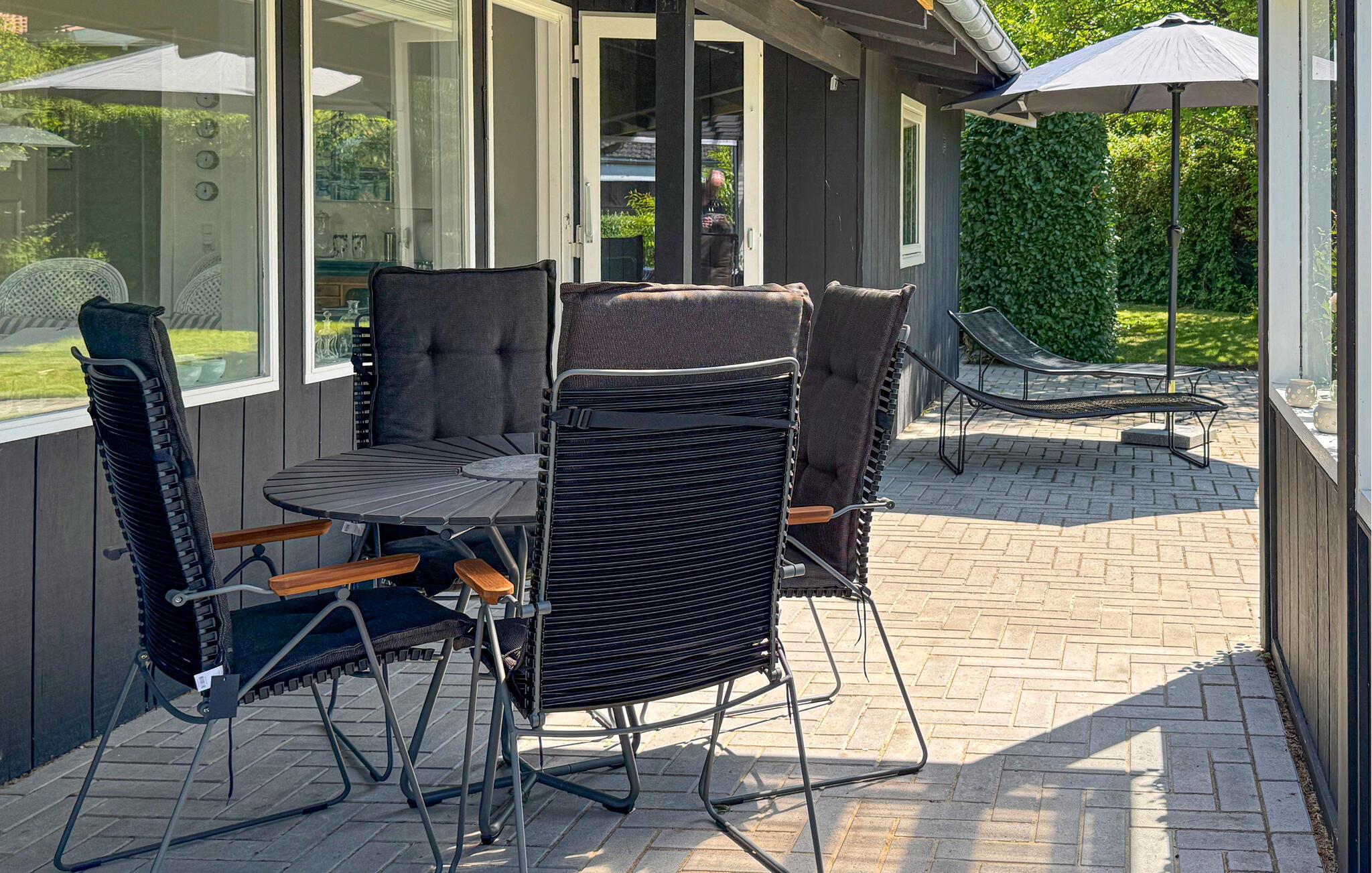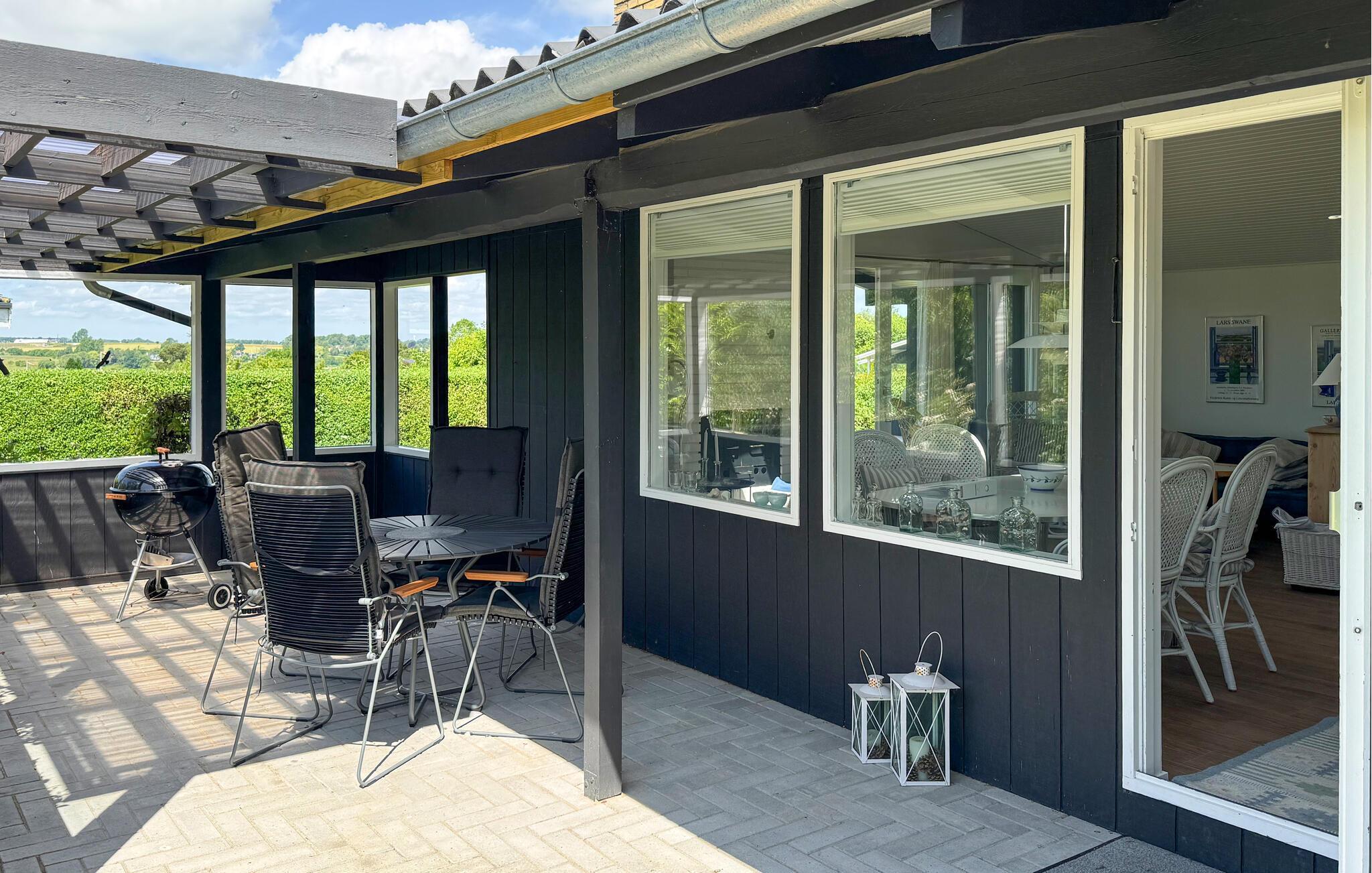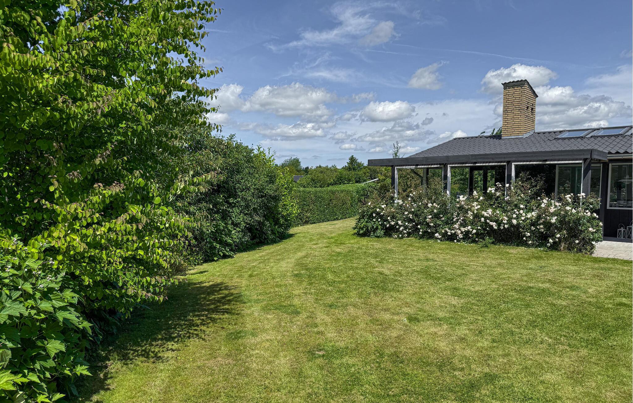 I får også stor glæde af haven. Når vejret er godt, kan I dække op til morgenmaden på en af de overdækkede terrasser. Find jer godt til rette på liggestolene i haven og tilbered aftensmaden på grillen. Udsigten over det omkringliggende landskab og den nærliggende fjord skaber en idyllisk kulisse.