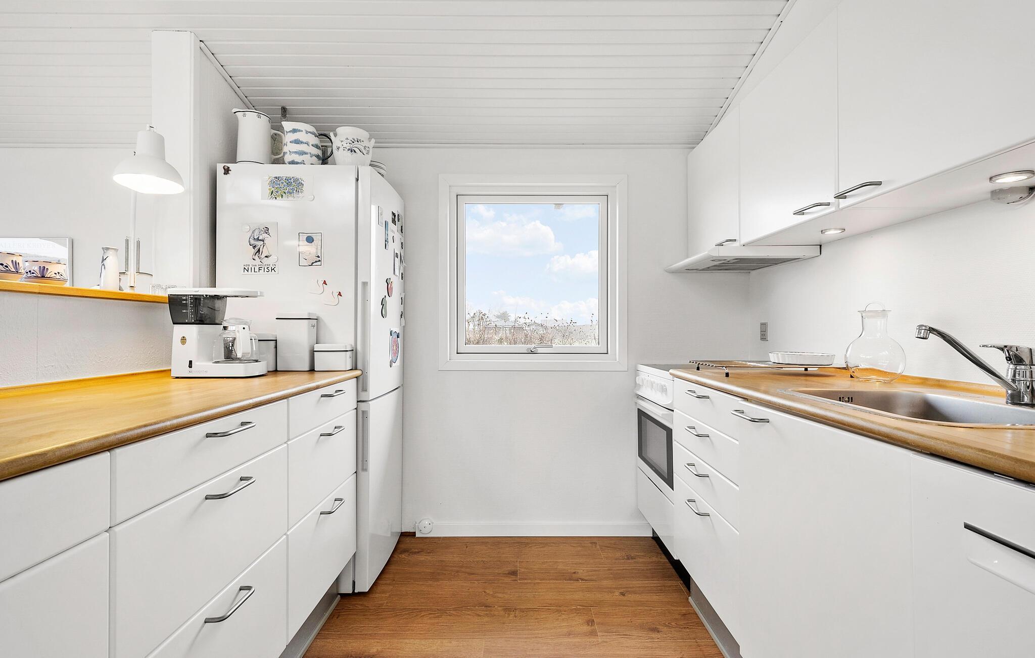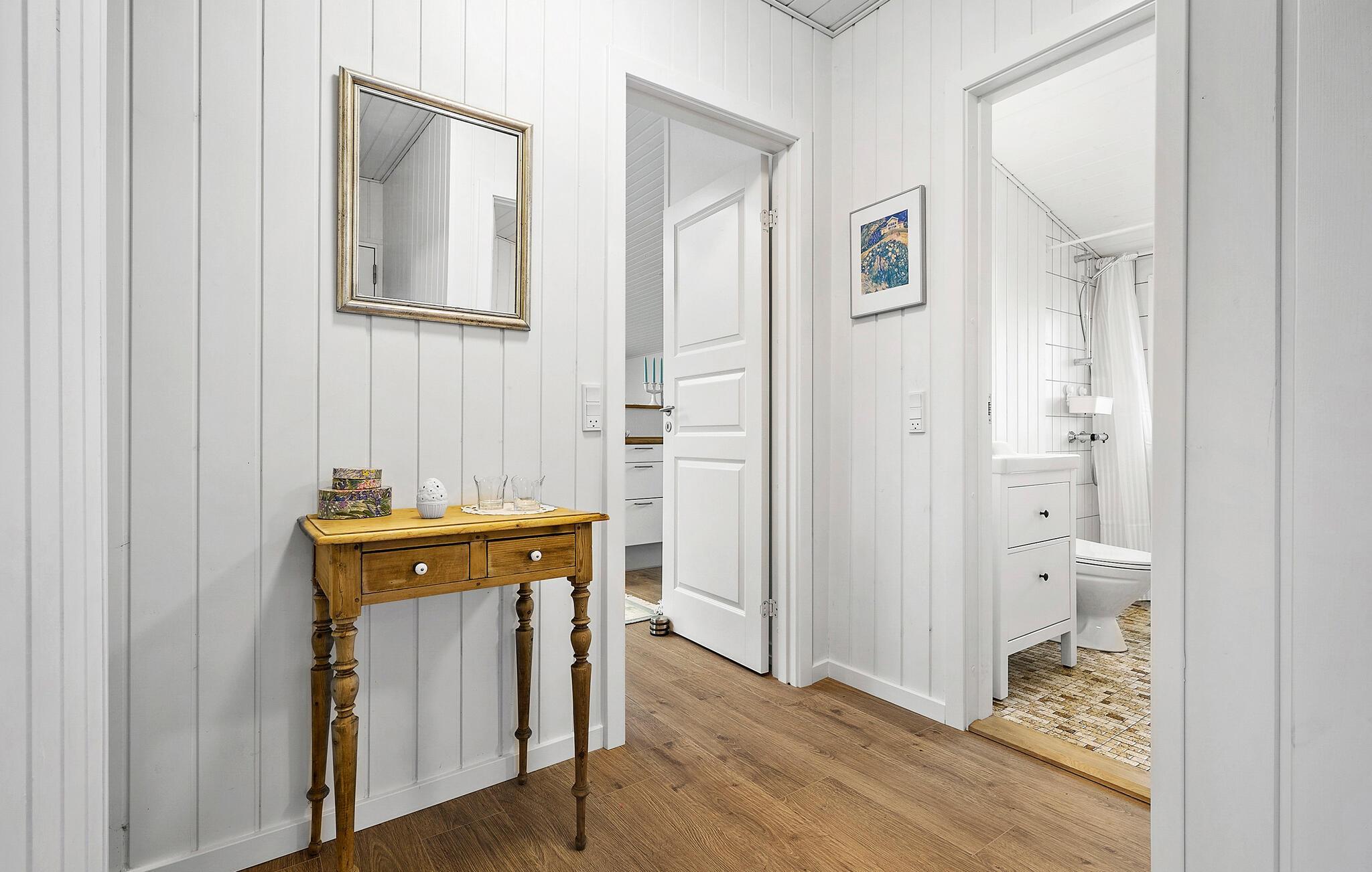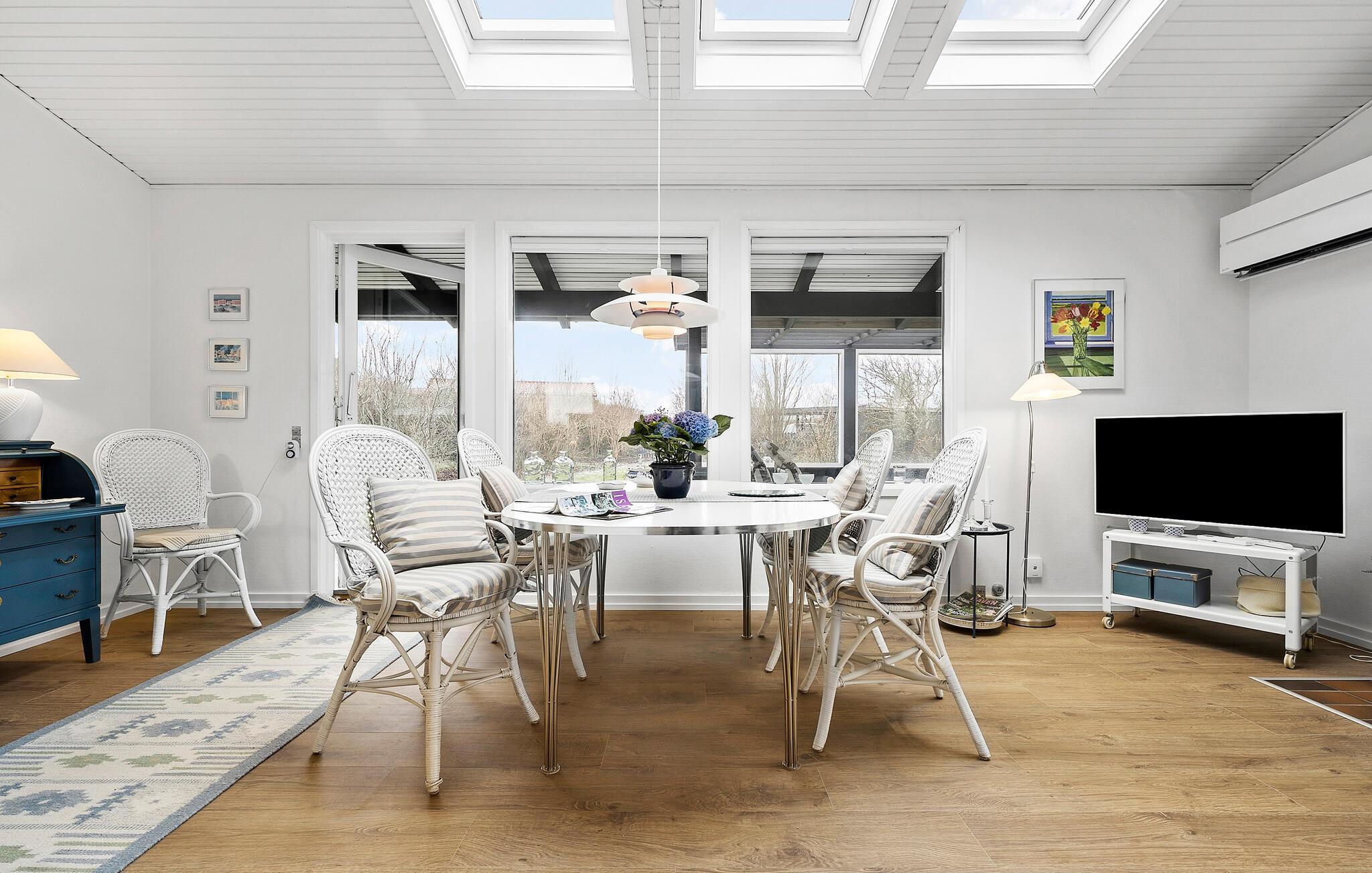 Den rolige beliggenhed nær Roskilde Fjord, flotte indretningsløsninger og nærheden til naturen giver jer den perfekte base til jeres feriedage. Huset er lyst og venligt med store vinduespartier, som får havens grønne rammer til at smelte sammen med livet indendørs. Læn jer tilbage i den komfortable sofa og sæt jer med en god bog efter dagens spændende oplevelser. Spiseområdet har direkte udgang til den overdækkede terrasse, så her kan I nemt rykke udendørs til en kop kaffe i sommersæsonen.