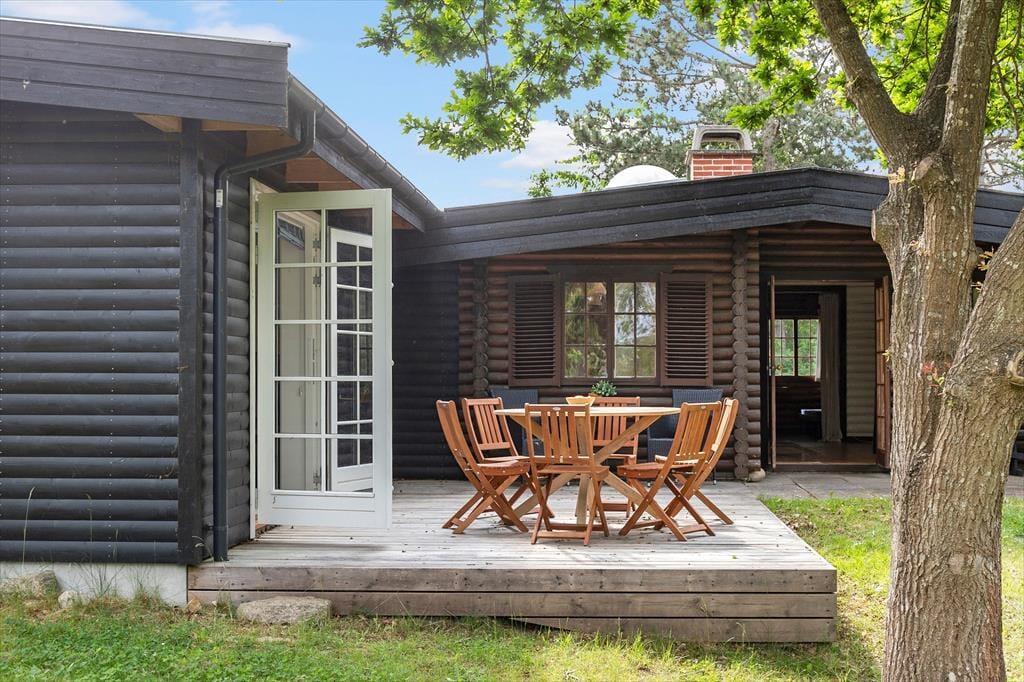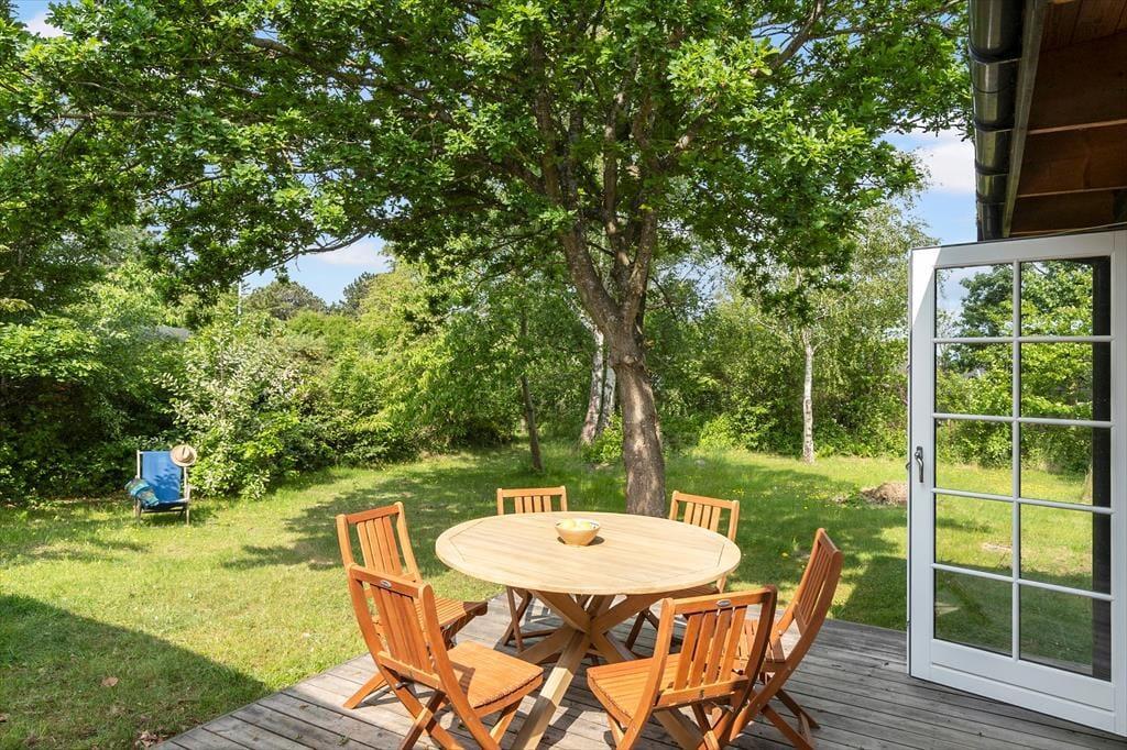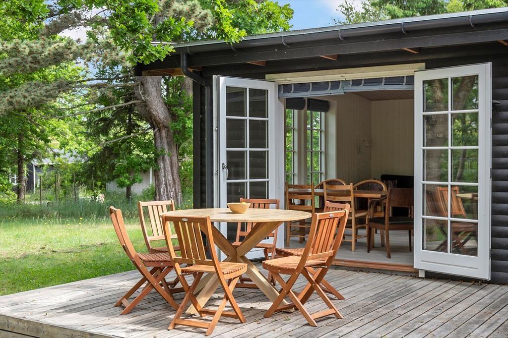 Terrassen er sommerhusets samlingspunkt og fungerer som det naturlige hjerte i hverdagen her. Her kan man sidde uforstyrret og nyde en stille morgen med kaffe eller en lang sommeraften med middag under åben himmel. Det er et sted, hvor man kommer helt ned i gear og bare være.