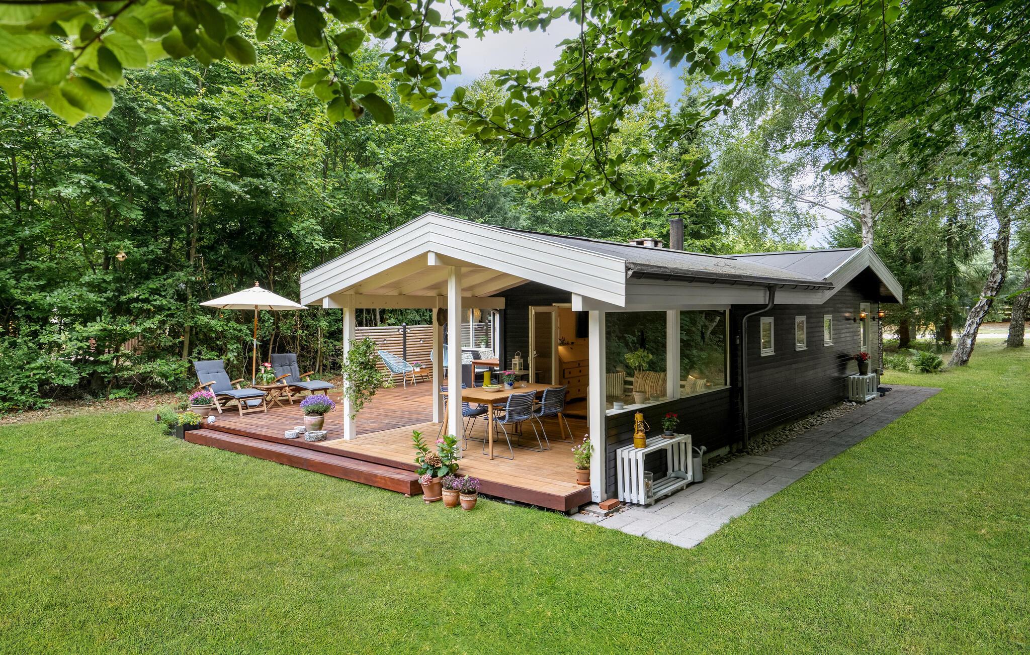 Stilfuldt feriehus i Liseleje med brændeovn, stor terrasse og naturskøn beliggenhed tæt på skov og strand.