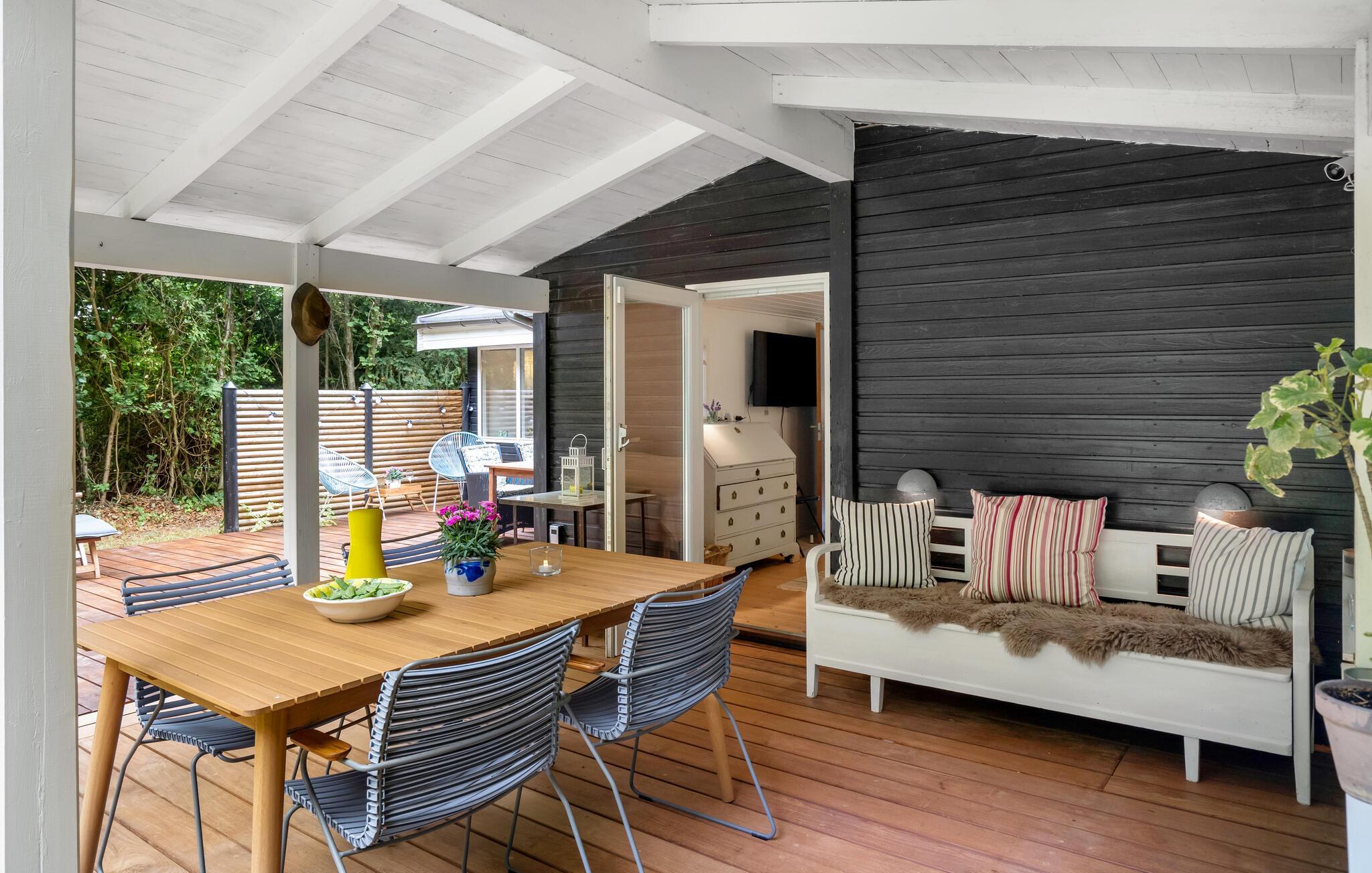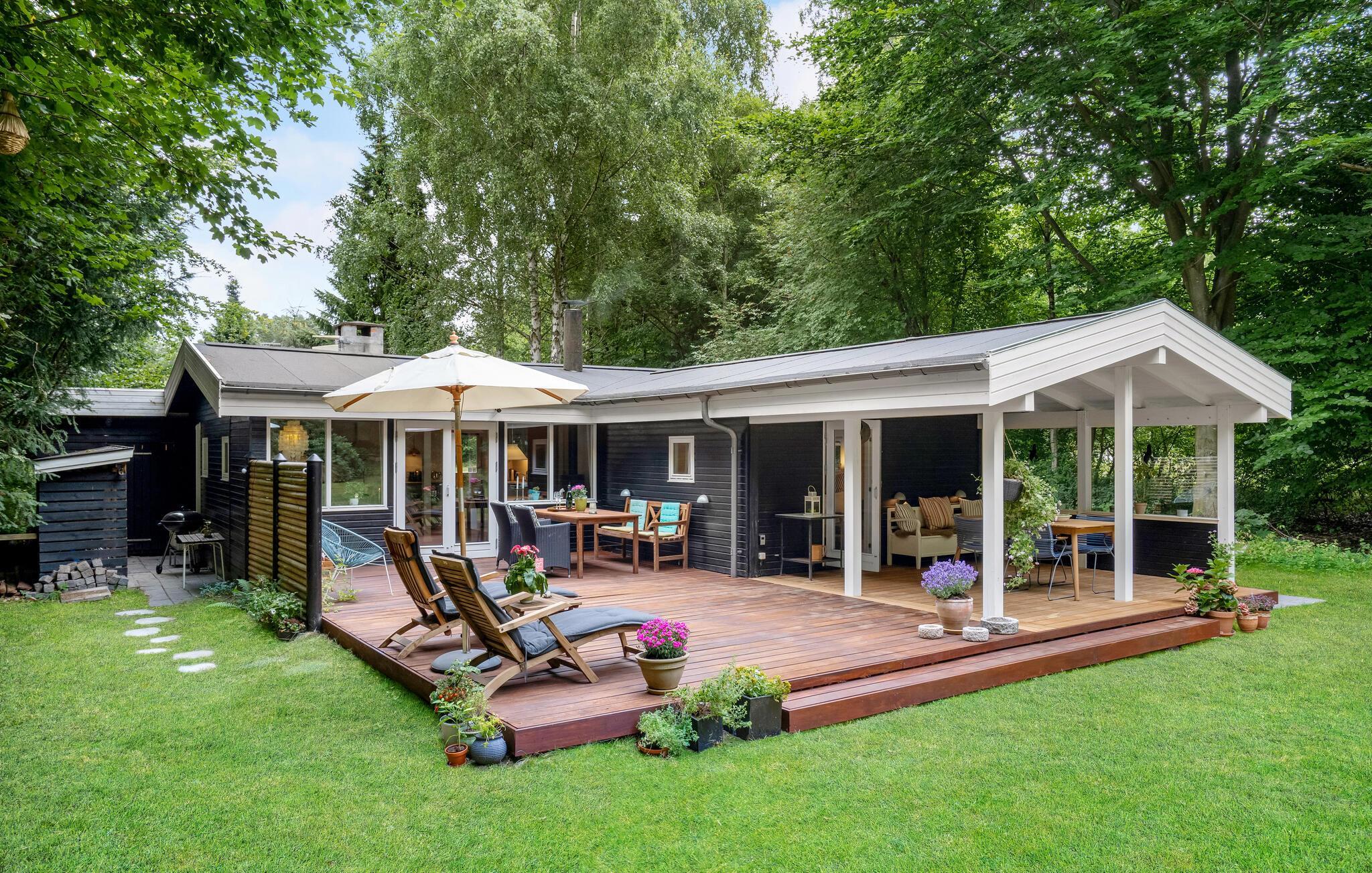 Den store træterrasse er en vidunderlig oase og indbyder til mange afslappende timer i det fri. Slå jer ned i de stilfulde havemøbler og nyd en kold forfriskning, mens I ser børnene lege.