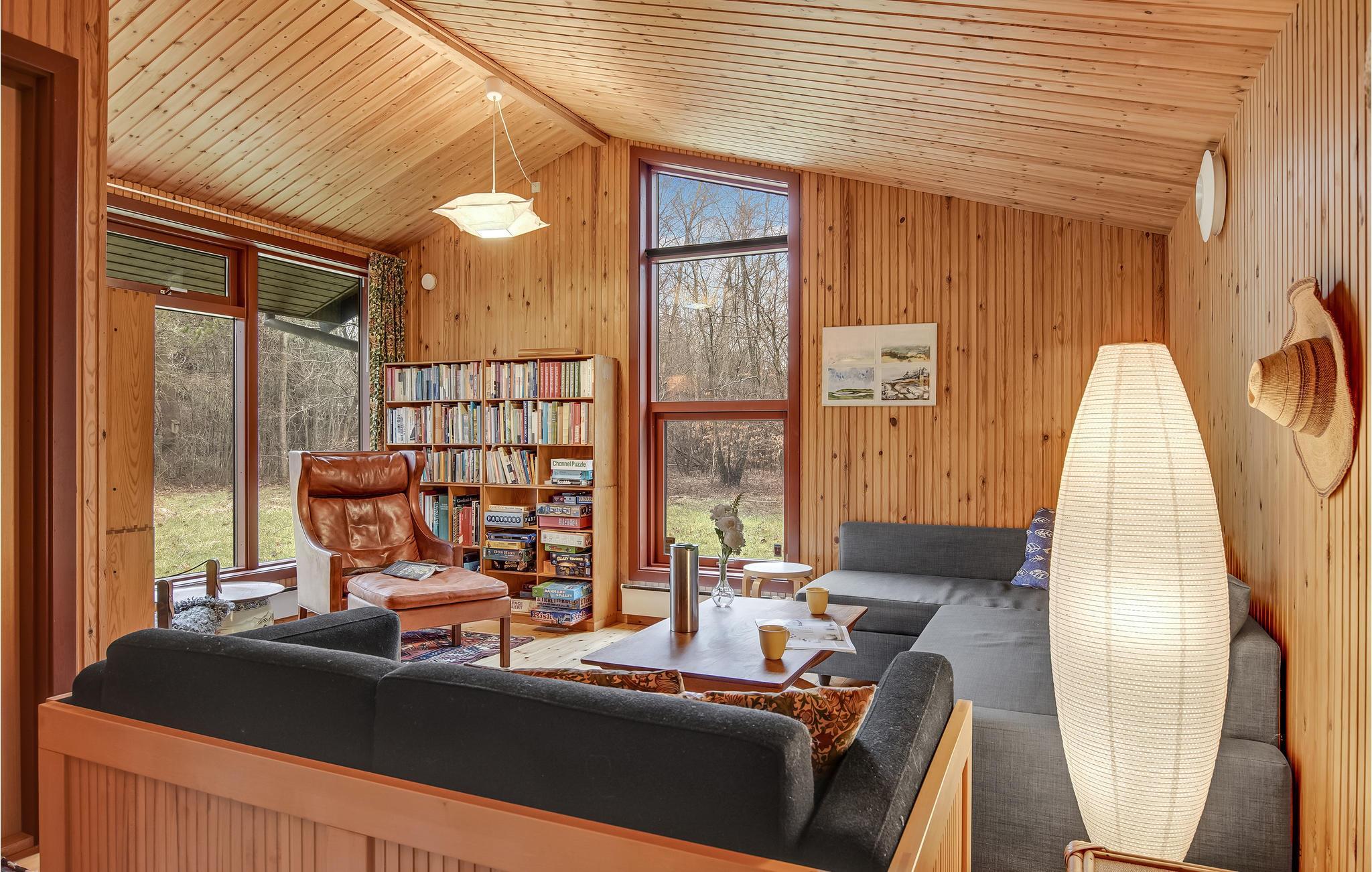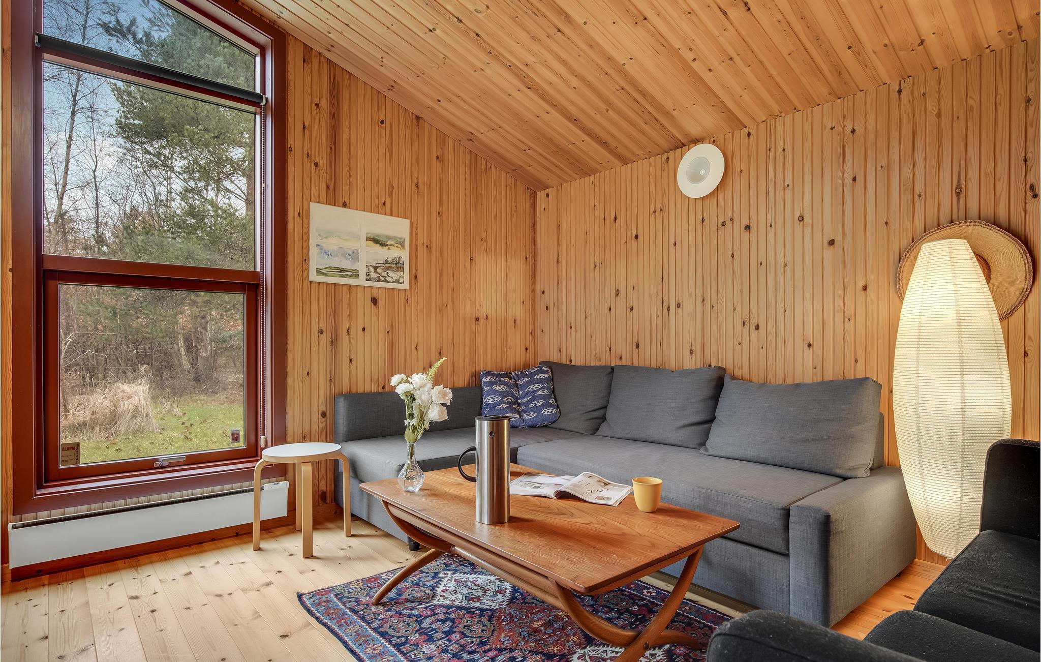 Charmerende træhus ved Liseleje Strand med ro, natur og moderne faciliteter til en afslappende ferie.