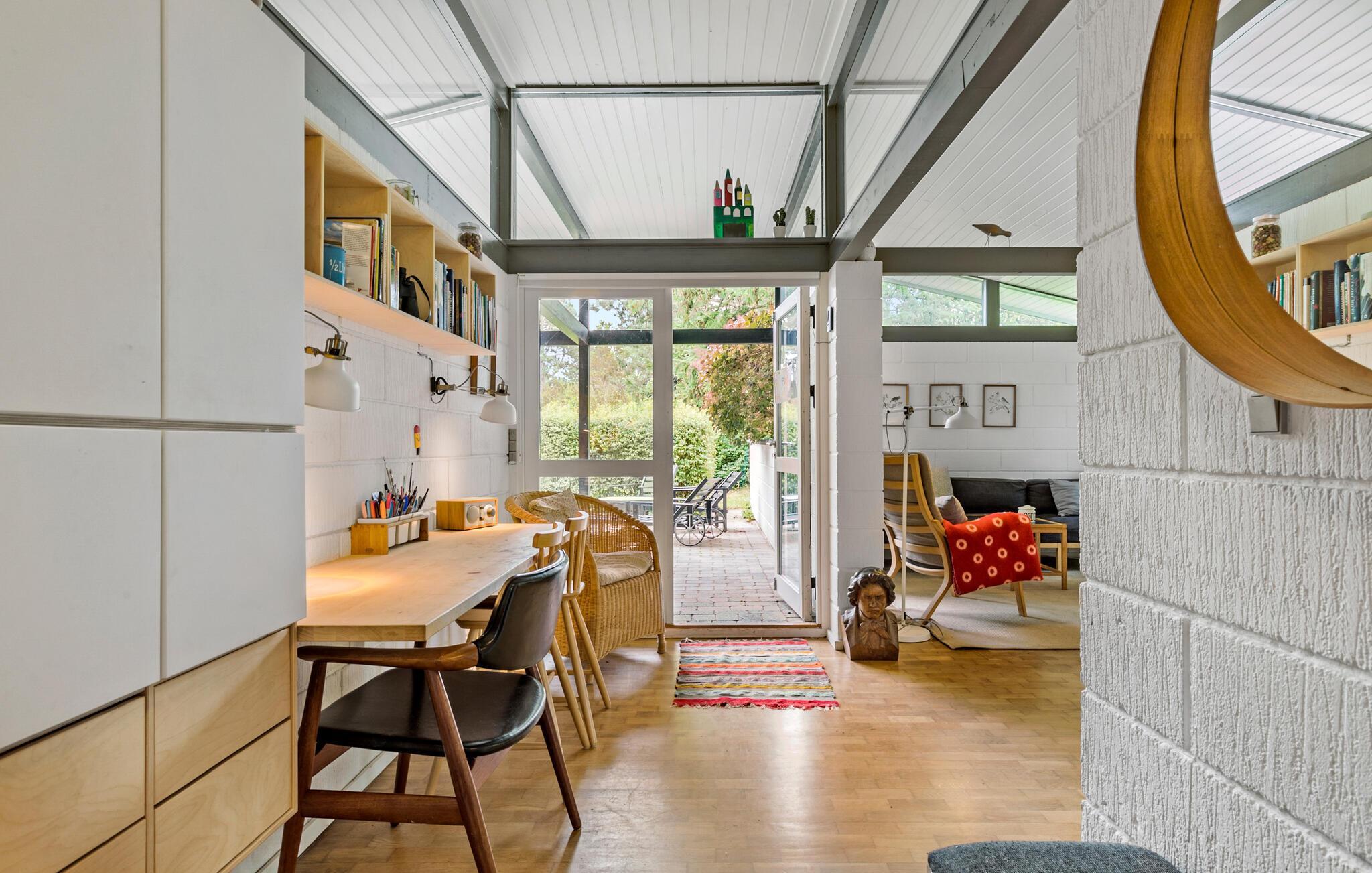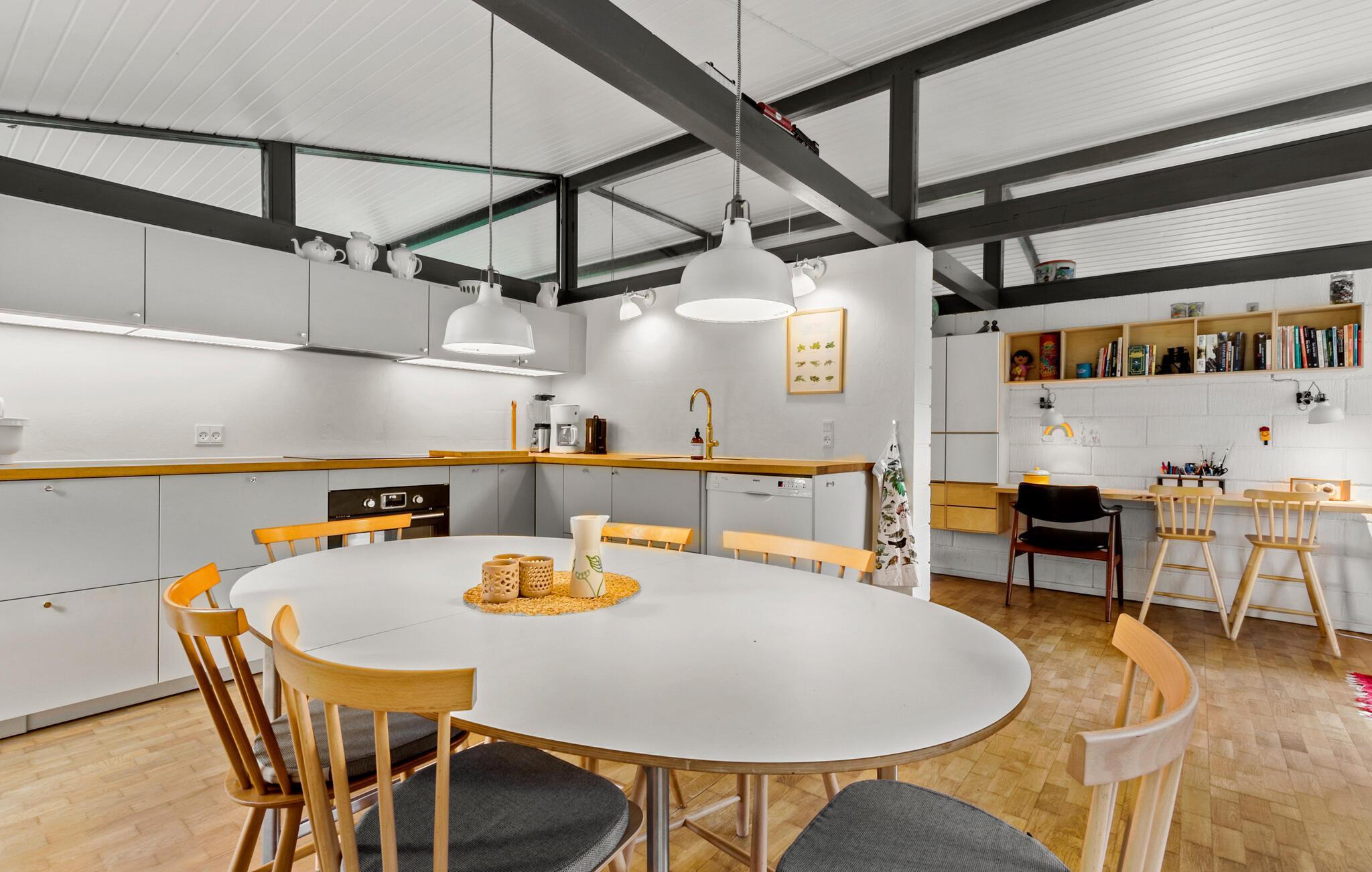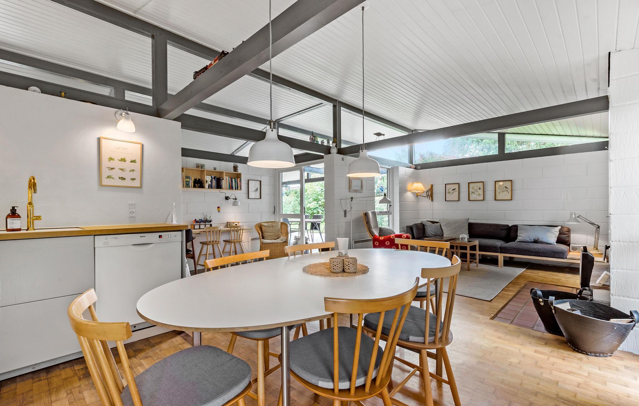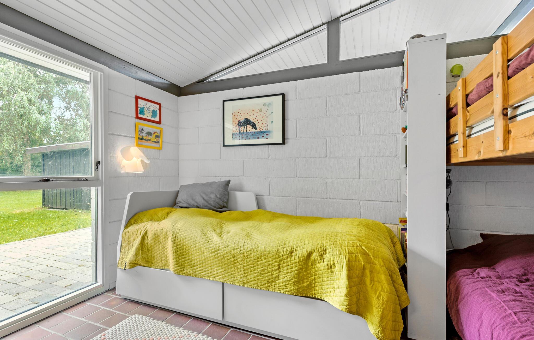 Tag familien med på ferie og slå jer ned i dette komfortable sommerhus. Kombinationen af de hvidmalede paneler i loftet og stenværk på væggene, samt flotte vinduesdetaljer under loftet giver huset en lys og indbydende stemning. Bjælkerne, trægulvet og den hyggelige indretning med brændeovn bringer en hjemlig følelse til huset, og gør det til en oplagt oase for jeres ferie.