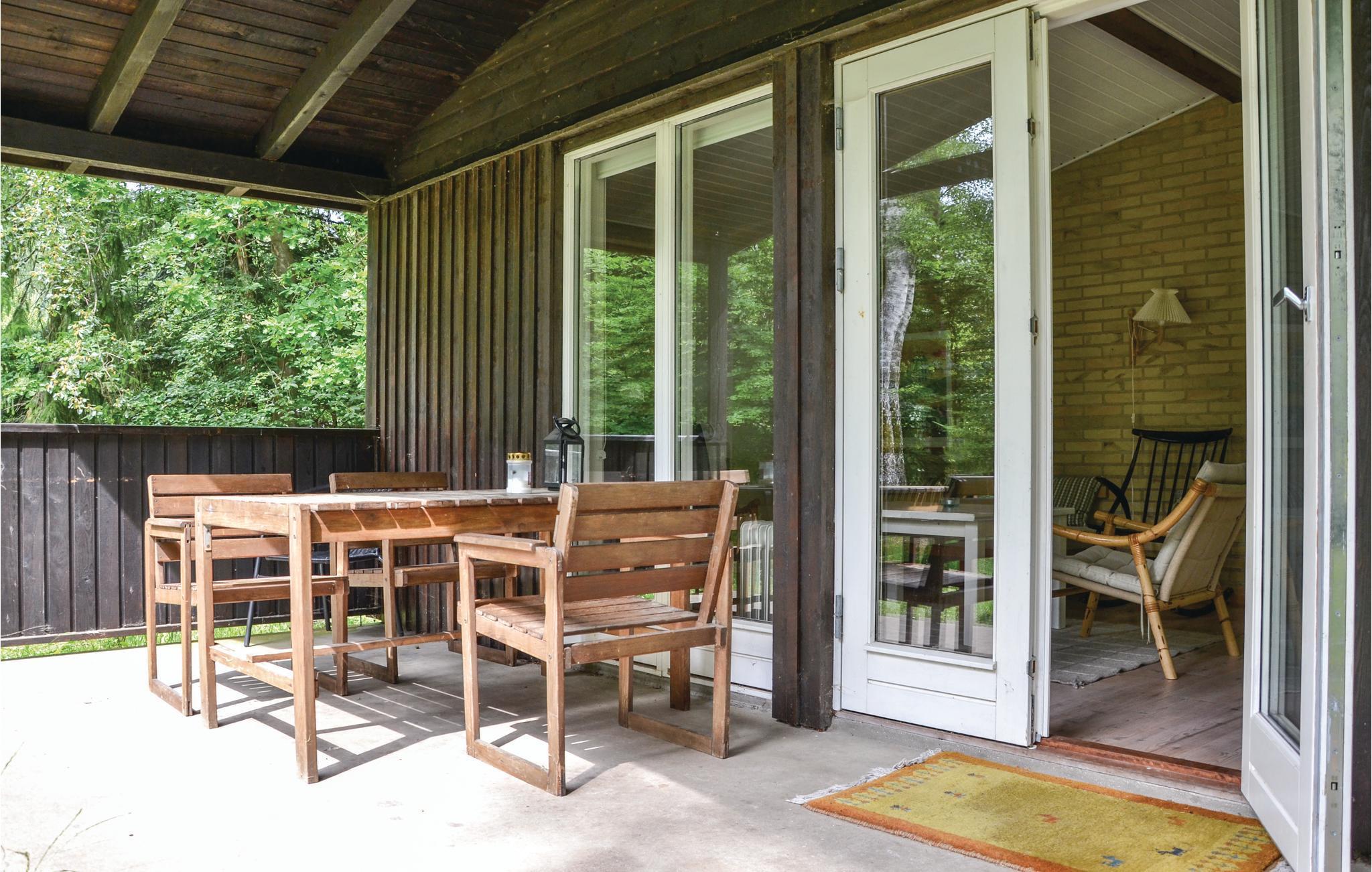 Dette lille, enkle feriehus tilbyder jer et hyggeligt tilflugtssted midt i naturen. Den åbne opholdsstue med udgang til den overdækkede terrasse lægger op til at blive hængende i al slags vejr. Her kan I nyde jeres måltider eller en god kaffe, omgivet af grønne områder. Den lukkede ejendom med diverse legeredskaber gør huset særligt familievenligt og giver jer plads til afslappende timer udendørs.