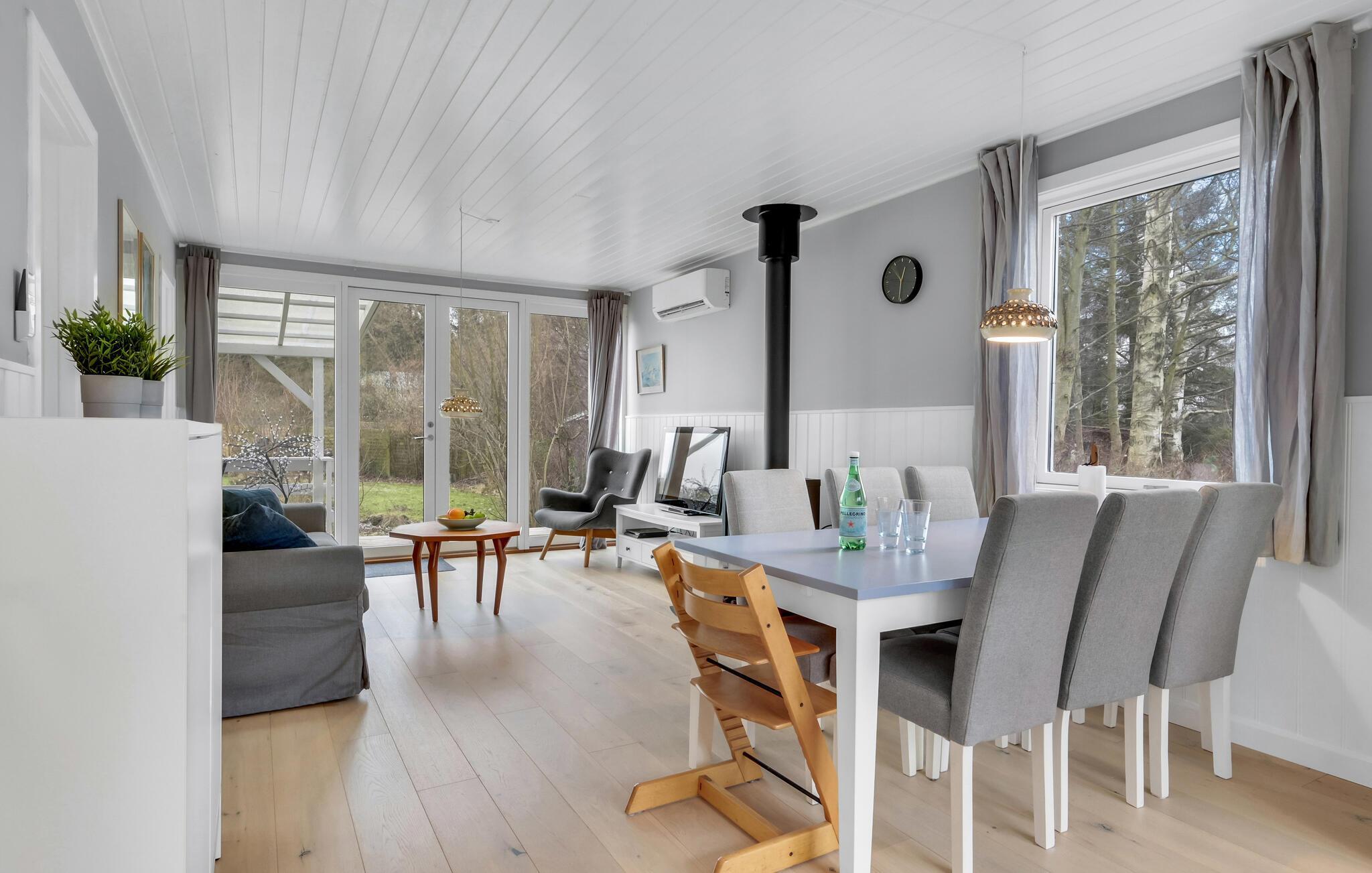 Velkommen til dette fine feriehus, hvor I kan forvente høj kvalitet i alle henseender. Huset er lyst, rummeligt og nydeligt indrettet. Her kan I virkelig gå ned i gear og tilbringe en masse kvalitetstid sammen, fx med at spille kort- og brætspil, se gode film og serier, tilberede lækre feriemåltider og naturligvis hyggesnakke en masse. Helårsisolation i kombination med brændeovn og gulvvarme på badeværelset gør også huset velegnet til ophold uden for sommersæsonen.