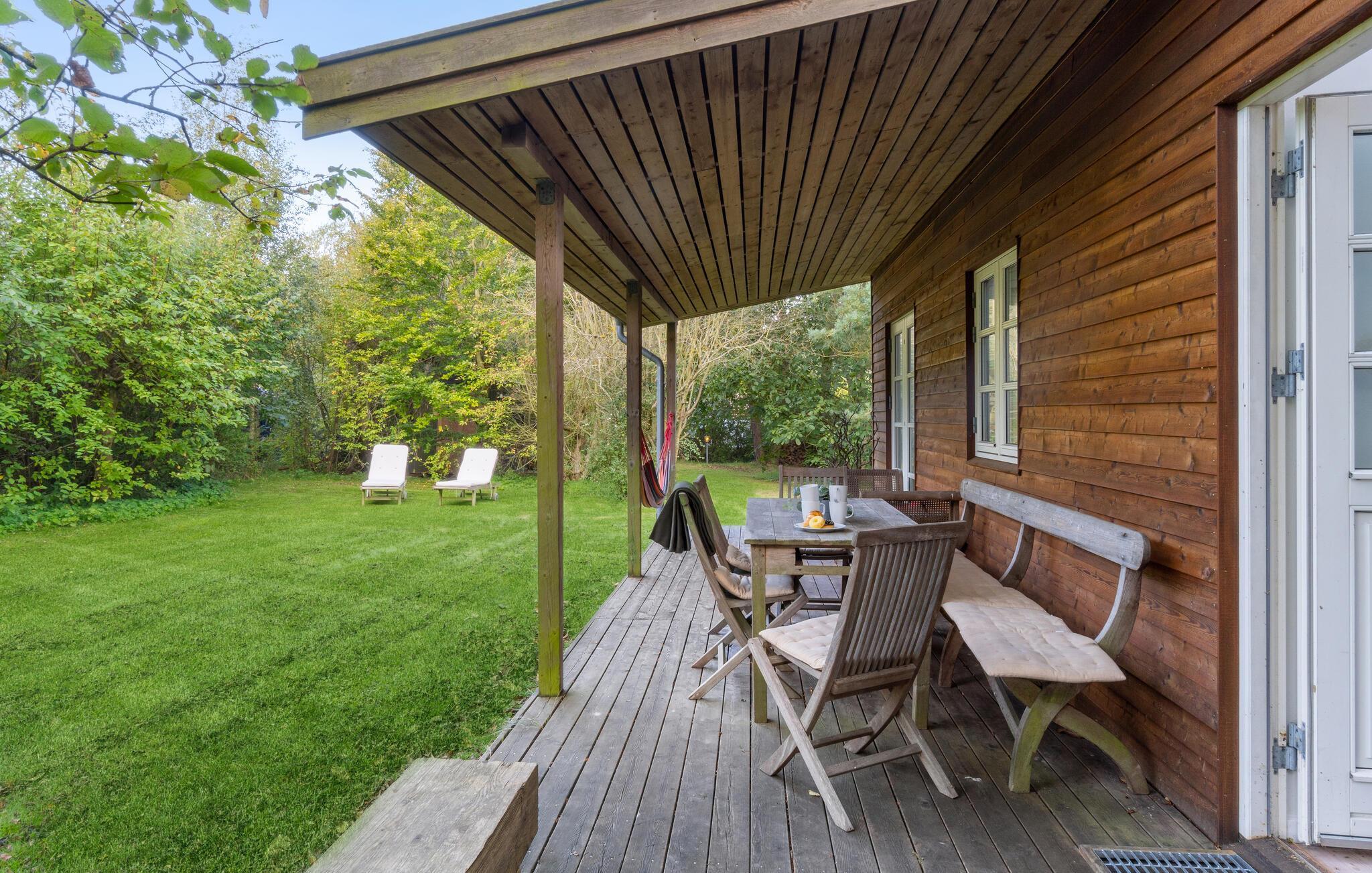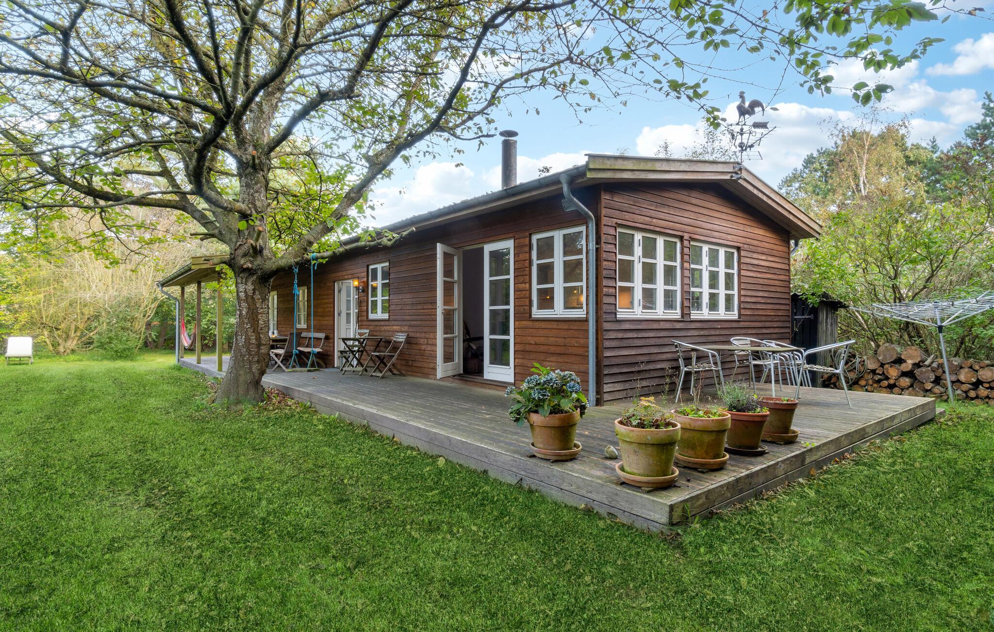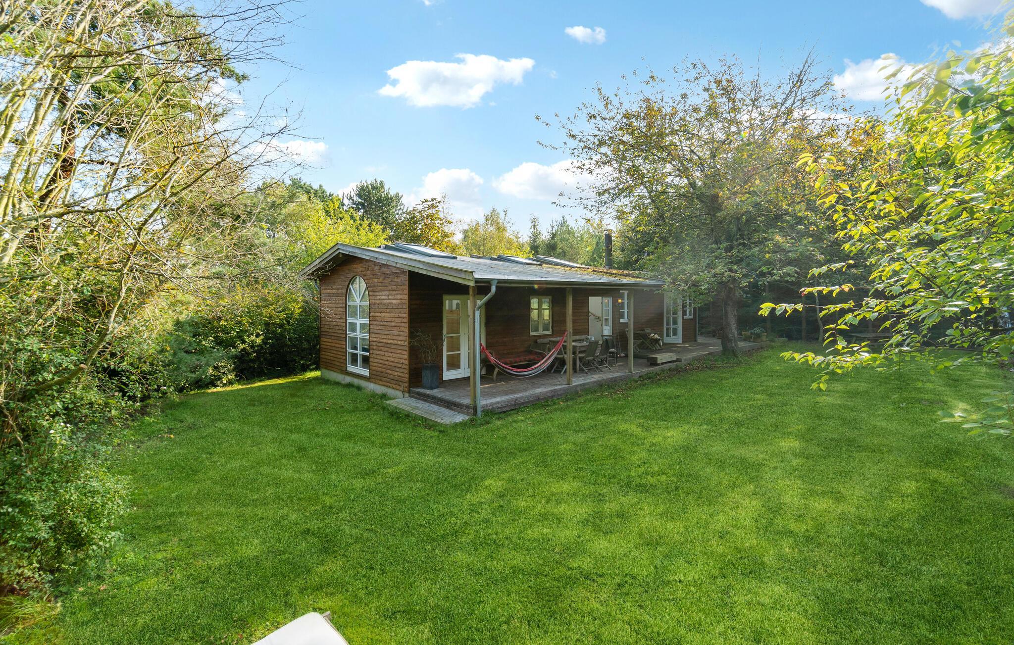 Se frem til en dejlig ferie nær havet i dette feriehus med en skøn have, omkranset af store træer.