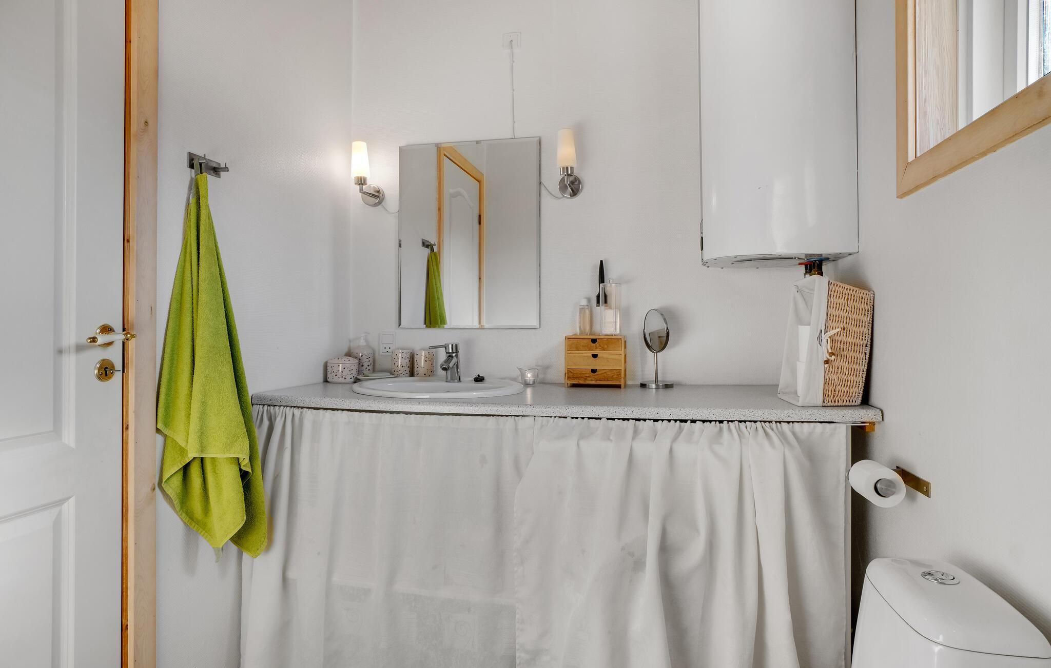 Det dejlige hus byder jer velkommen i skønne omgivelser og er det ideelle sted for en stor børnefamilie. Her kan I nyde tiden sammen i lyse værelser indrettet i klassisk sommerhusstil og med dejlige hyggekroge. Slap af i en behagelig atmosfære, nyd en smuk udsigt over naturen under jeres aktiviteter og glæd jer til skønne aftener med ren kvalitetstid på den indbydende sofa. Det bliver særligt hyggeligt, når I tænder op i pejsen om aftenen og nyder nærværet, mens flammerne knitrer.