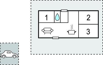 Badeværelse (nr. 1) - WC. Varmt og koldt vand. Bruser